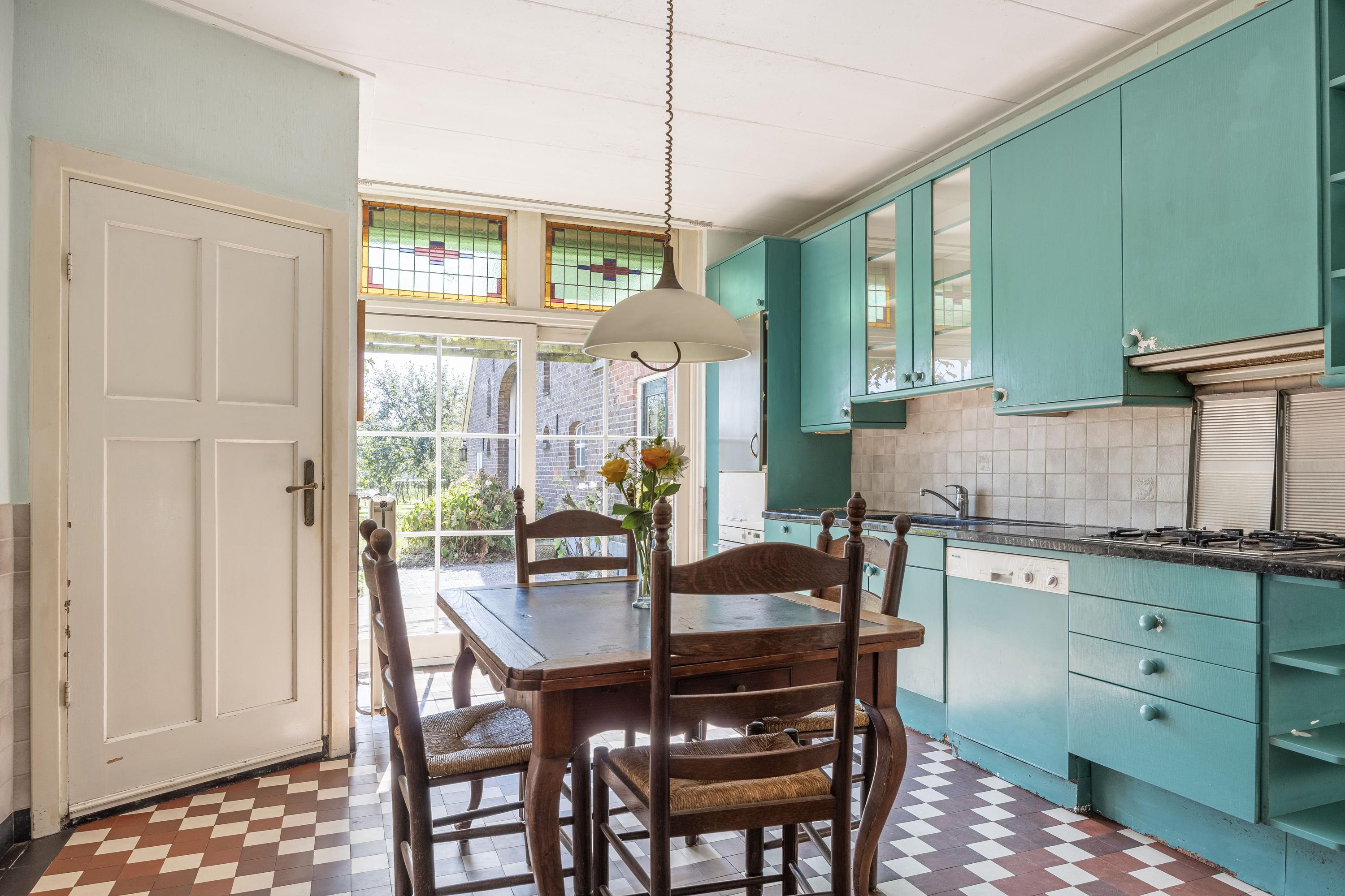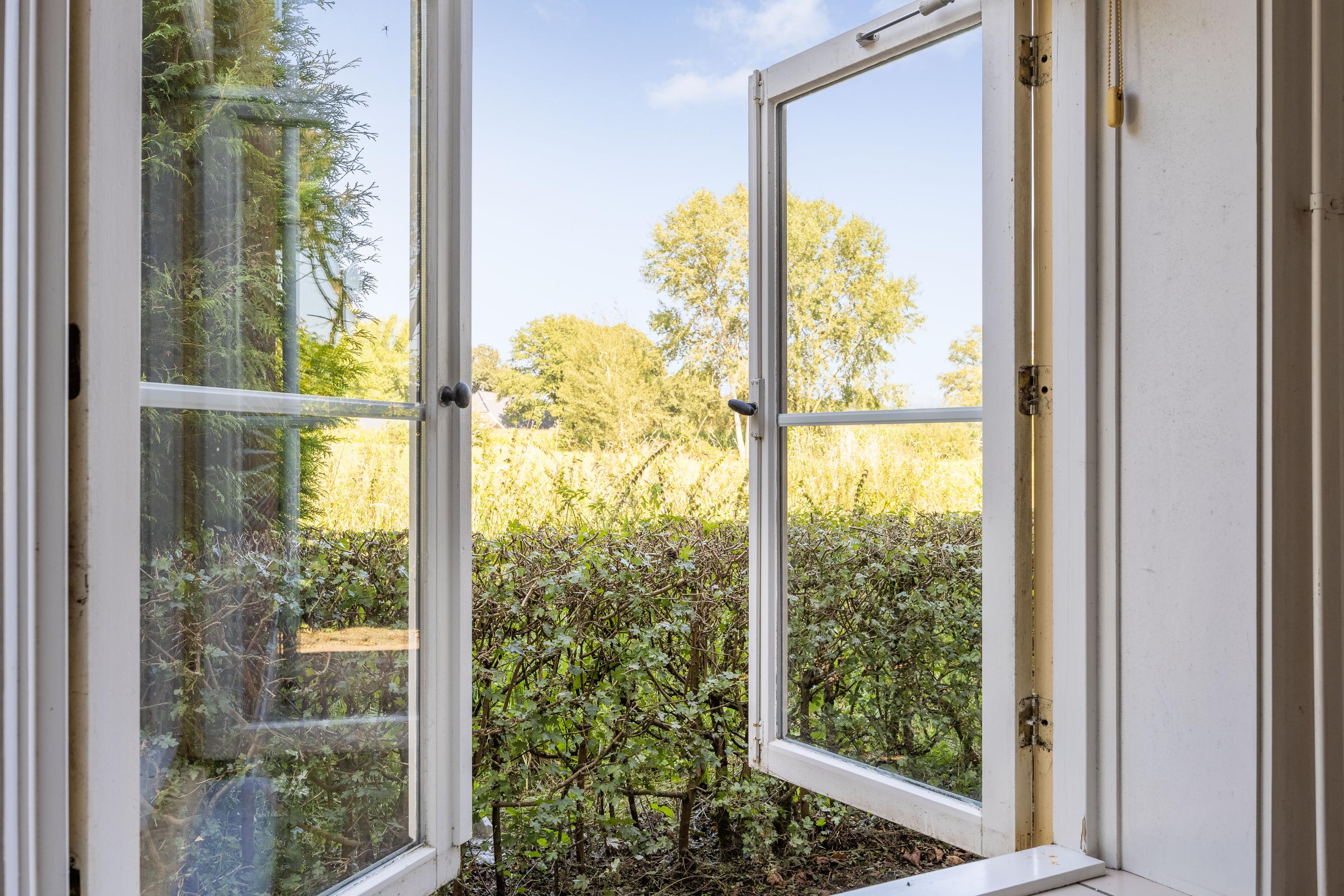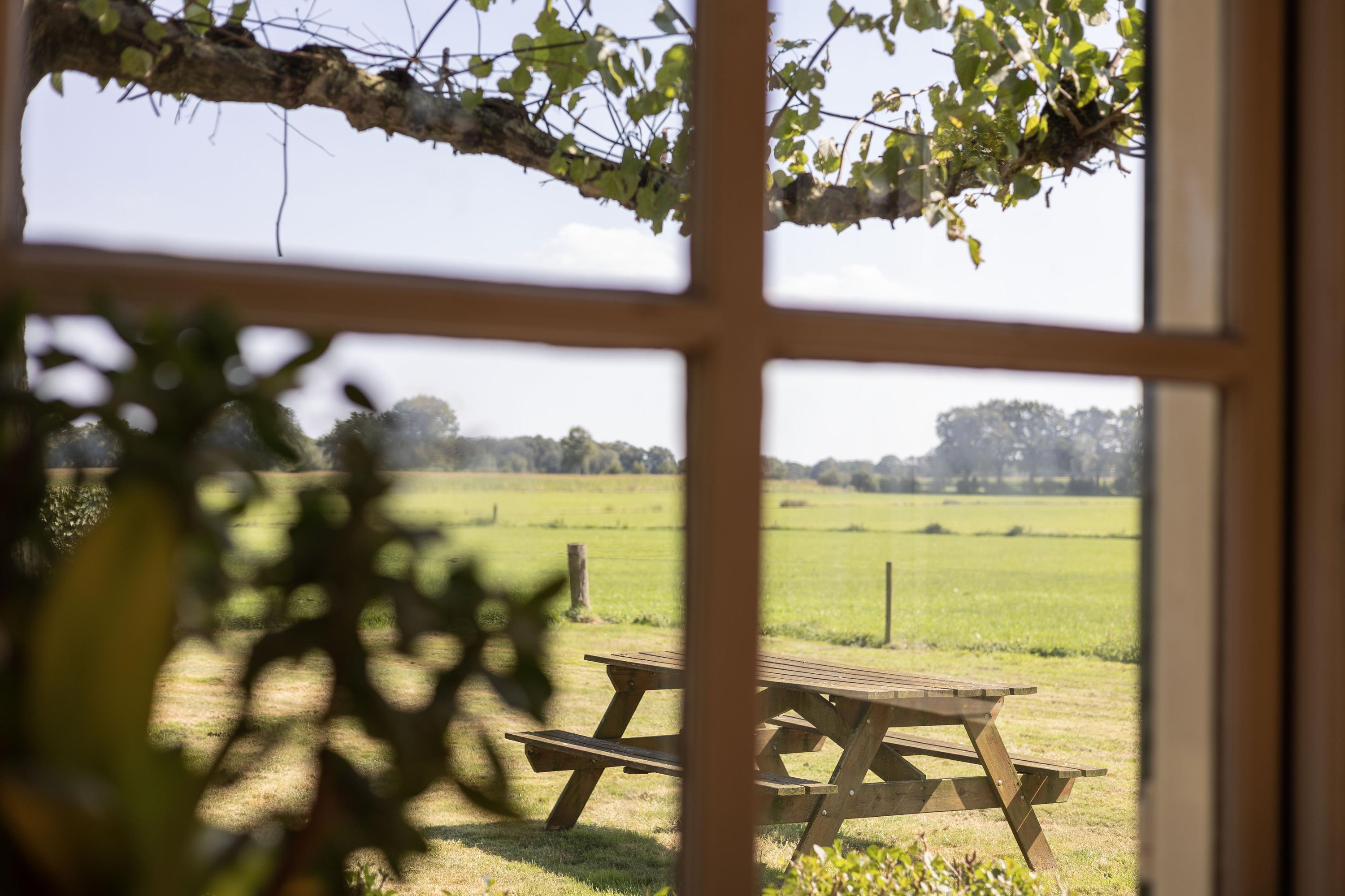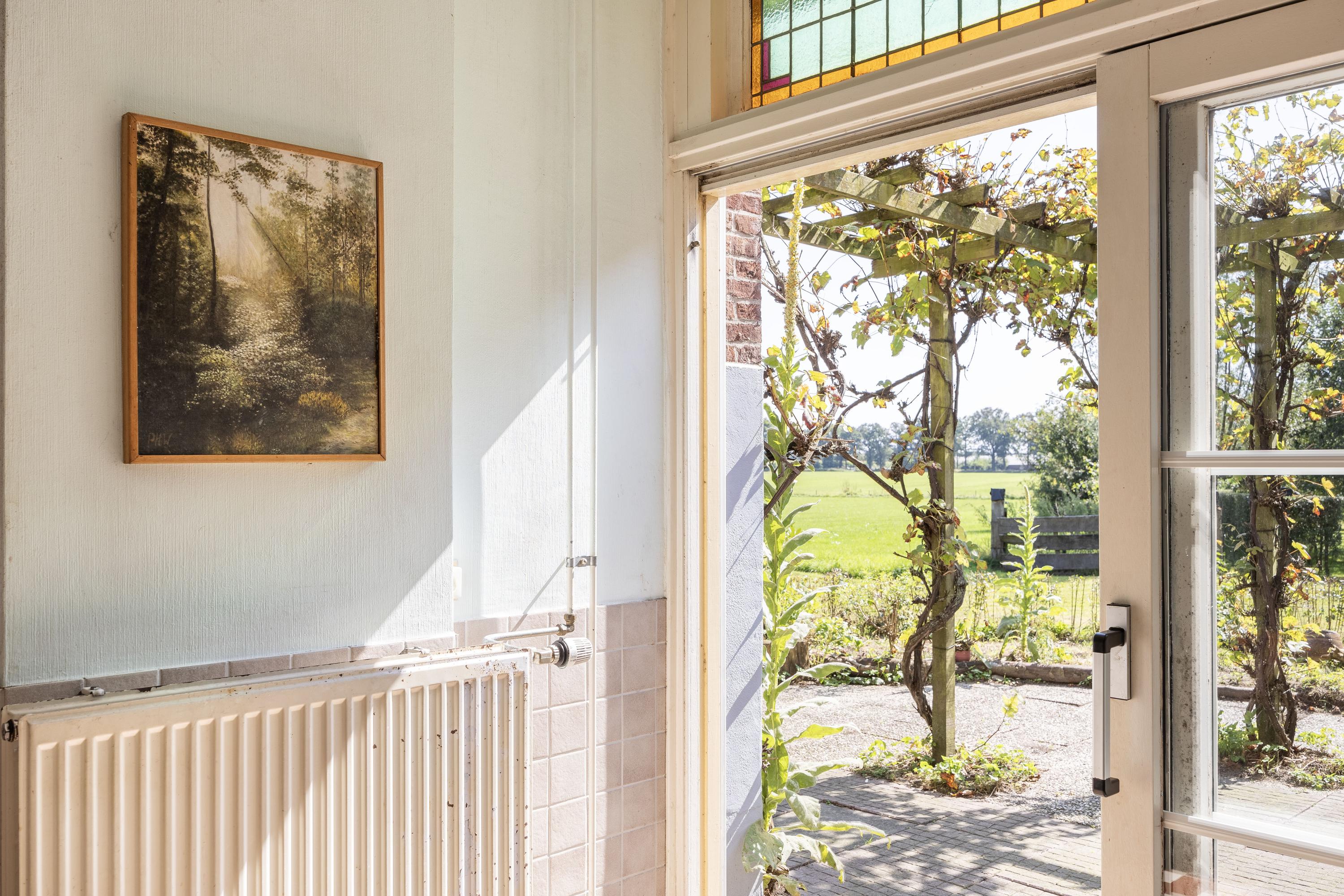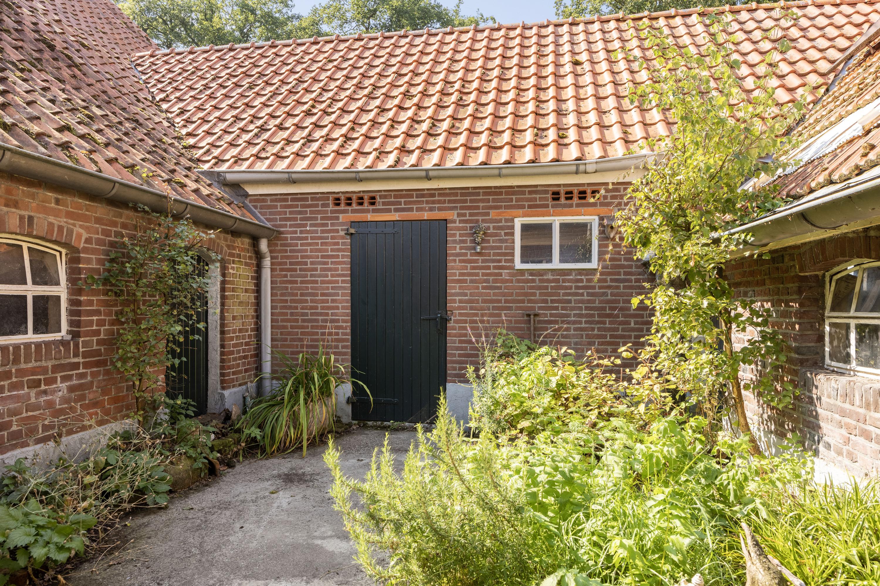 De woning is bereikbaar via een lommerrijke oprijlaan, met voor de woning diverse oude, karakteristieke eikenbomen en een gazon. Aan de andere zijde is een weelderige landelijke boerentuin aangelegd met een hoogstam fruitboomgaard, omzoomd door een meidoornhaag, een ‘ronde tuin’ met vruchtbomen, rododendrons, een natuurweide en zitjes op elk denkbaar plekje. Het is hier overal genieten van de tuin, de natuur en het met regelmaat langs struinende wild.