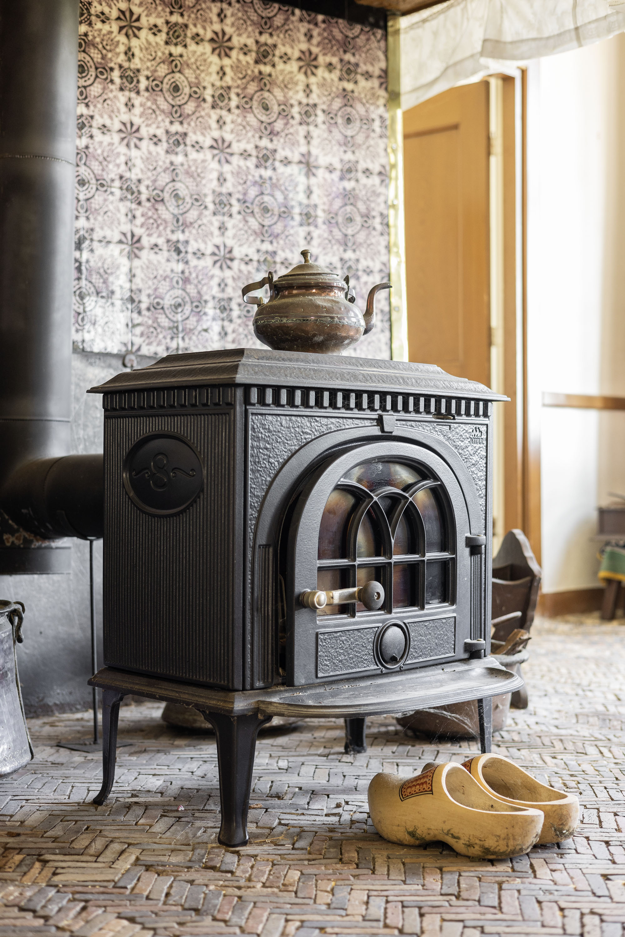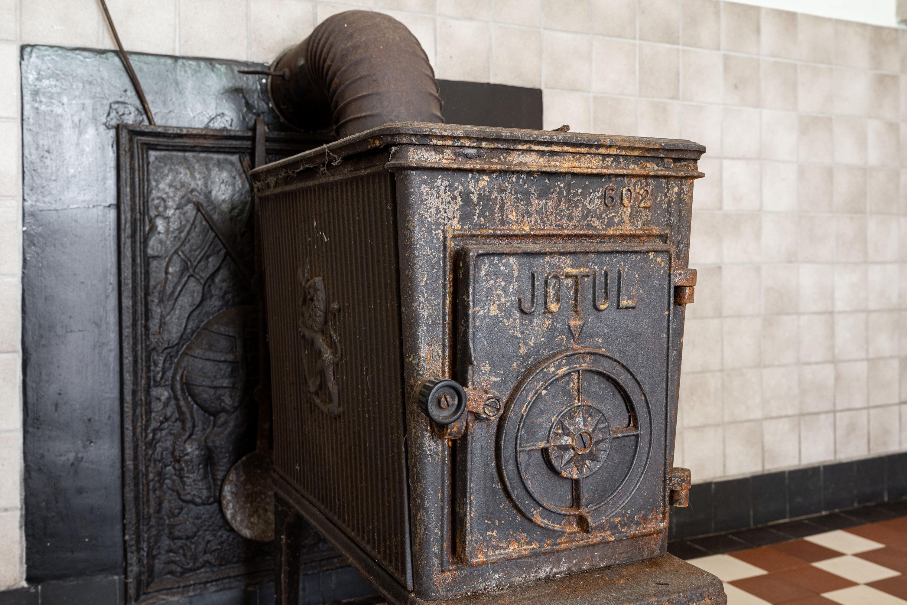 Op de begane grond vindt u een hal met trapopgang, een woonkeuken met toegang tot de kelder, en een prachtige monumentale woonkamer met originele haard, bijzondere kannenschrot vloer en hoge plafonds. Verder zijn er drie kamers, waarvan één in gebruik als tijdelijke badkamer en één als kantoor. Tussen de beide delen van de boerderij is er een extra douche, een berging met wasmachine- en drogeraansluiting, en toegang tot een knusse patio.