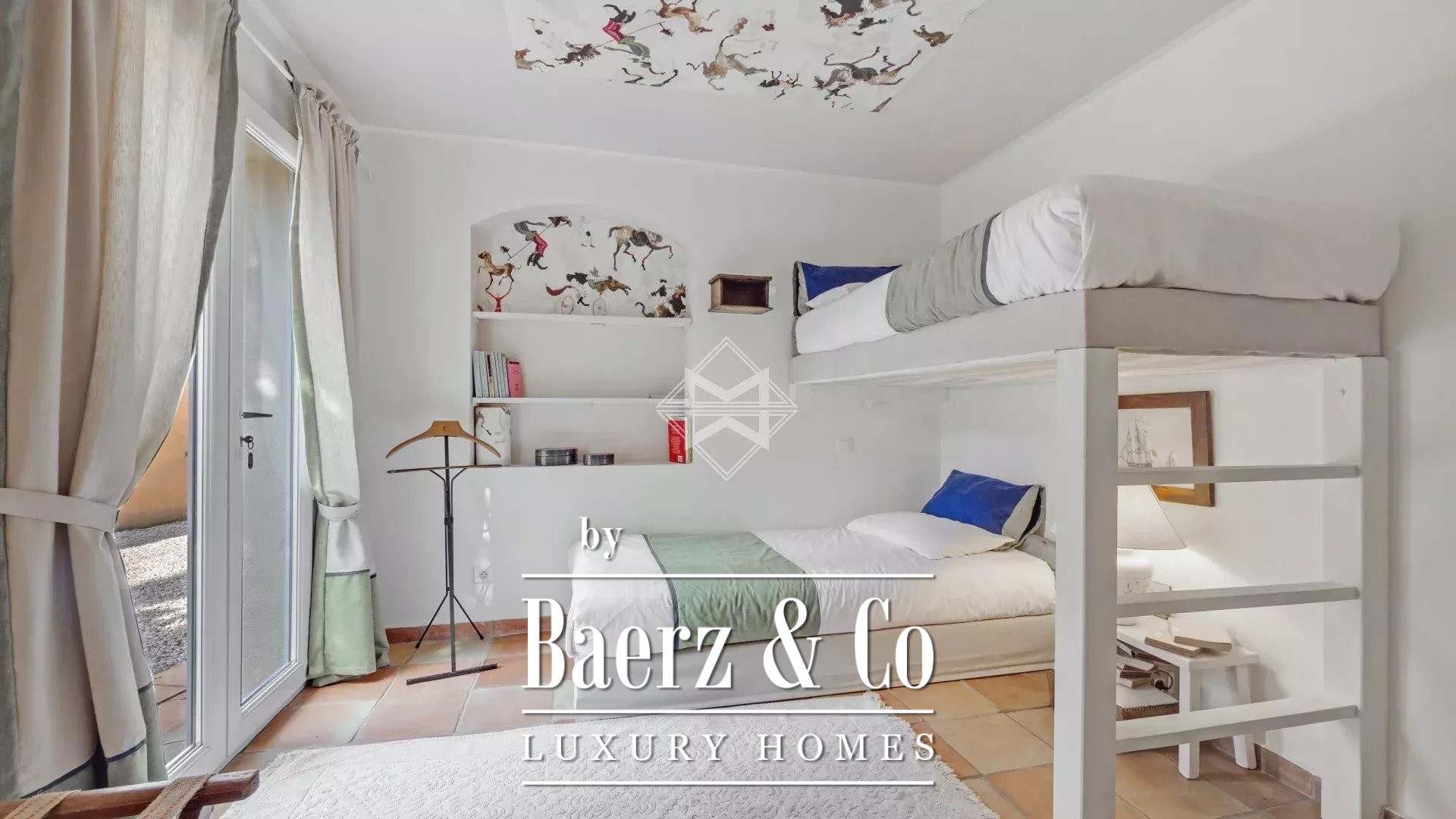 Nestled on a beautifully landscaped plot of over one hectare, adorned with olive and century-old oak trees, the property is completed by a heated swimming pool, perfect for year-round relaxation.