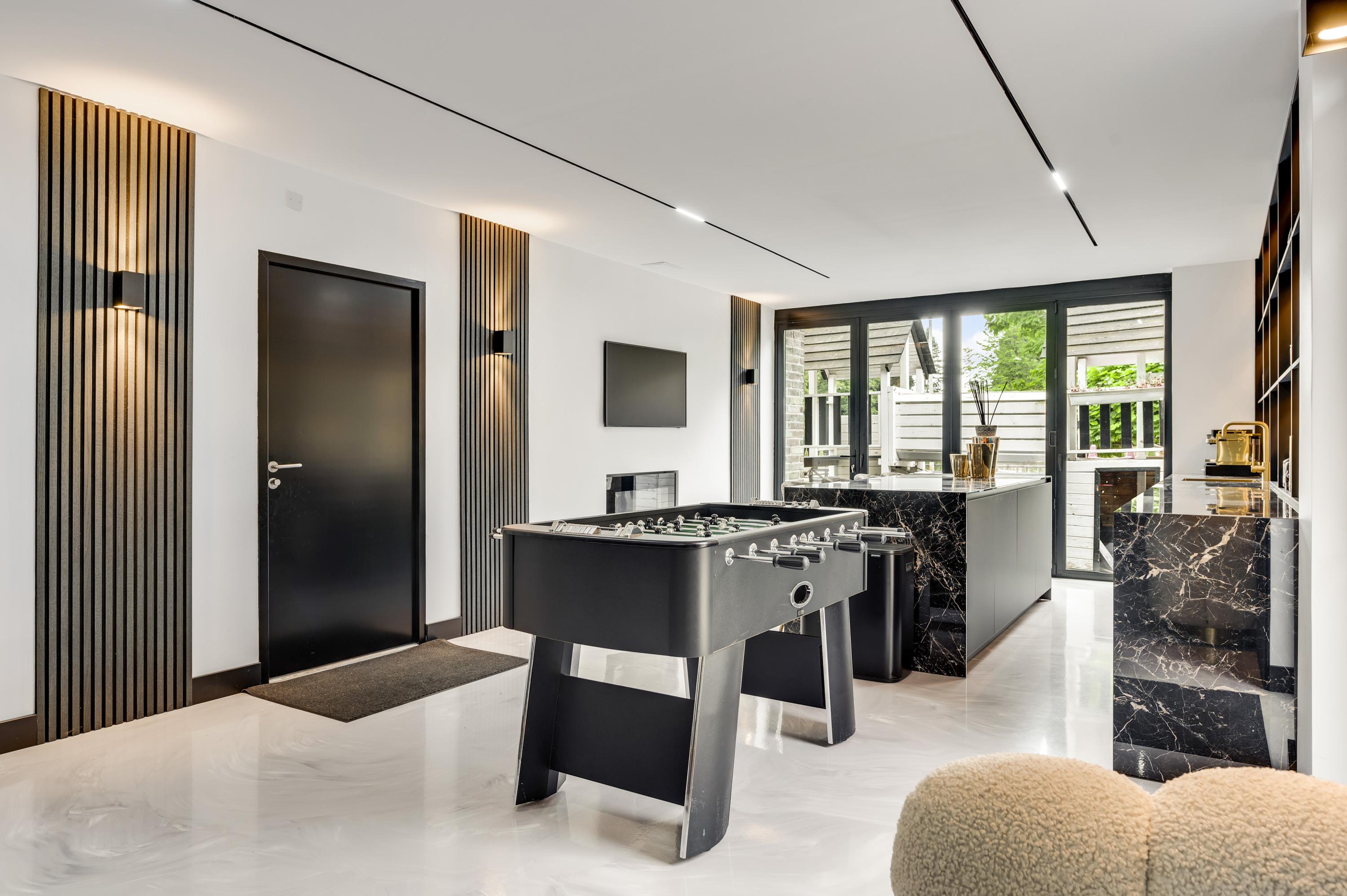 Uniek aan deze woning is de loungebar met sportruimte, die direct toegang heeft tot de tuin en tot de paardenstallen. Niet-ruiters kunnen deze ruimte eenvoudig transformeren tot wellnessruimte, binnenzwembad of atelier.