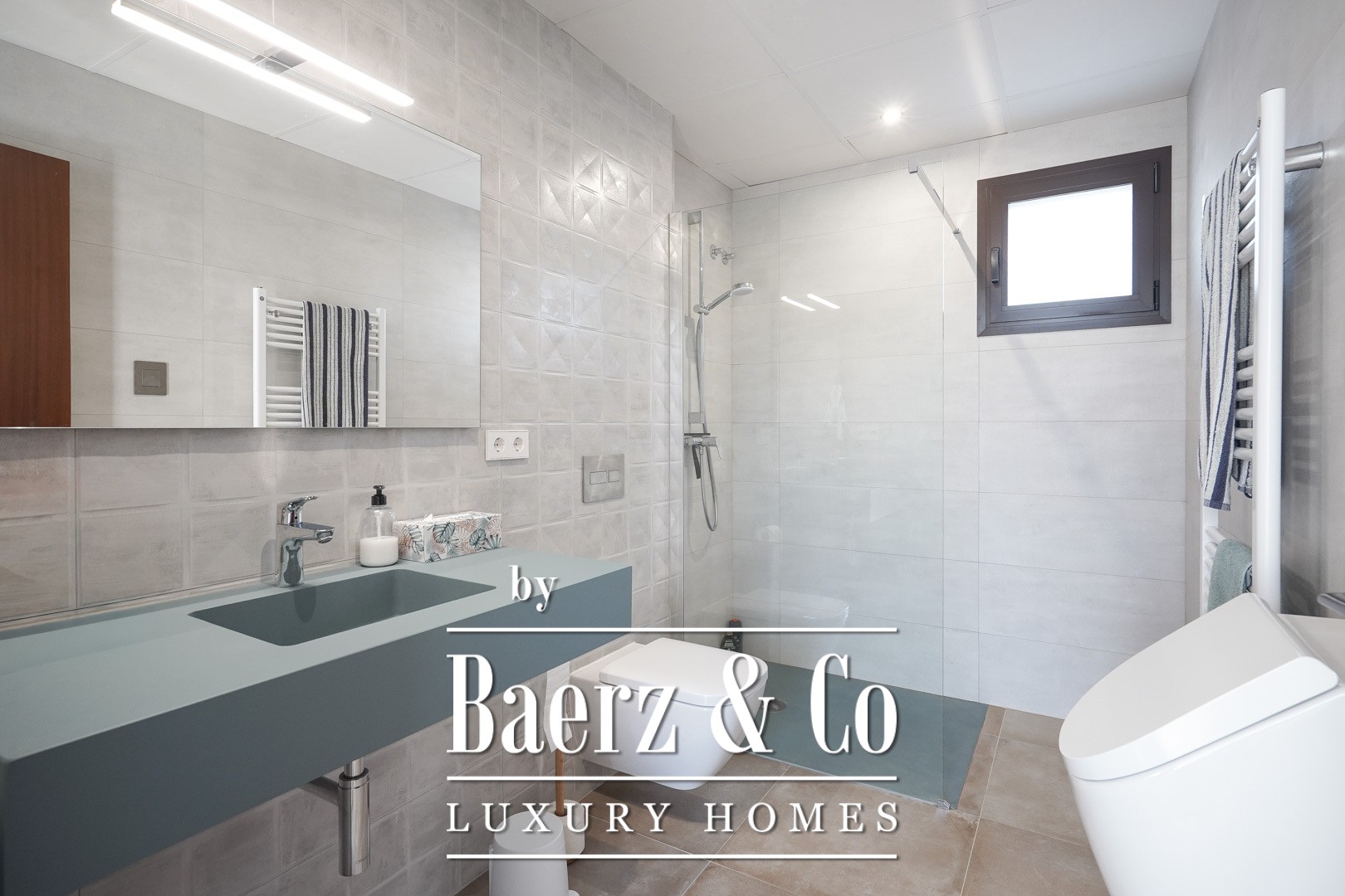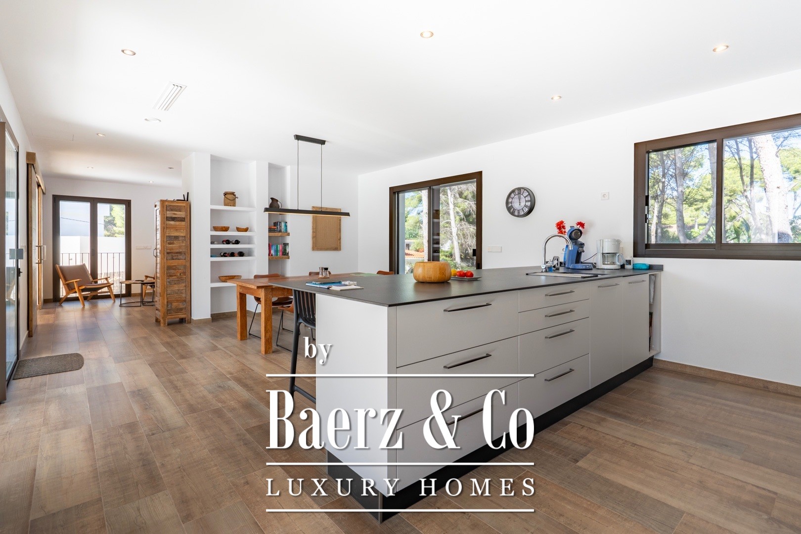 Deze moderne, recent gebouwde woning bevindt zich in een eigentijdse villawijk, direct achter het charmante rotsstrandje Cala Blanca.