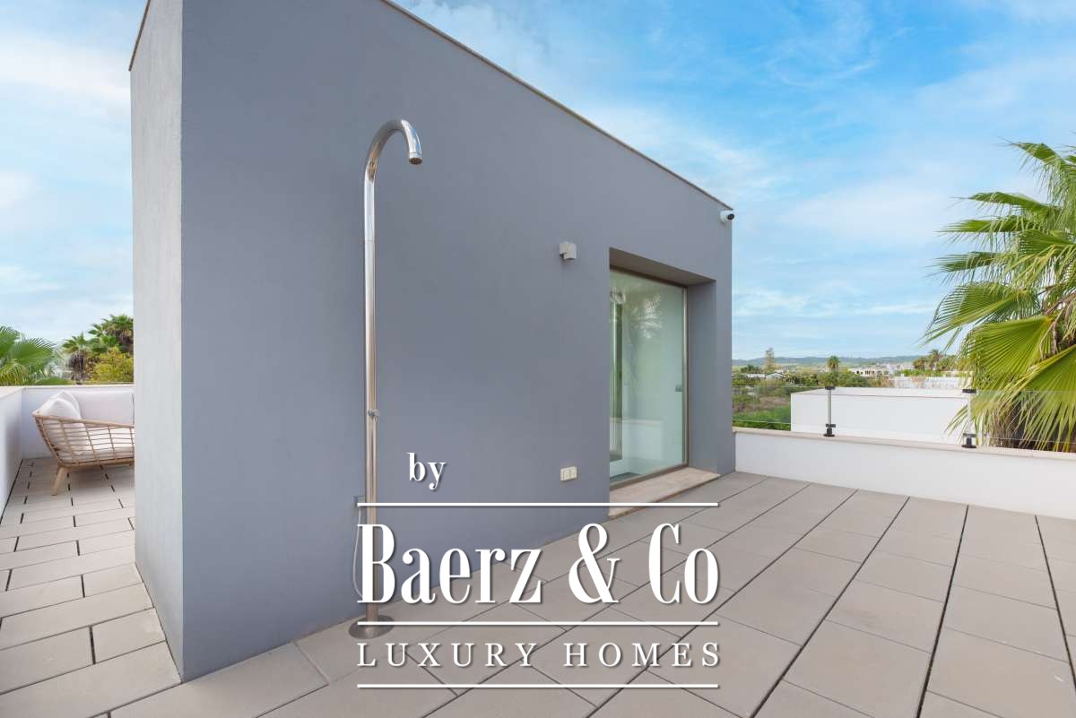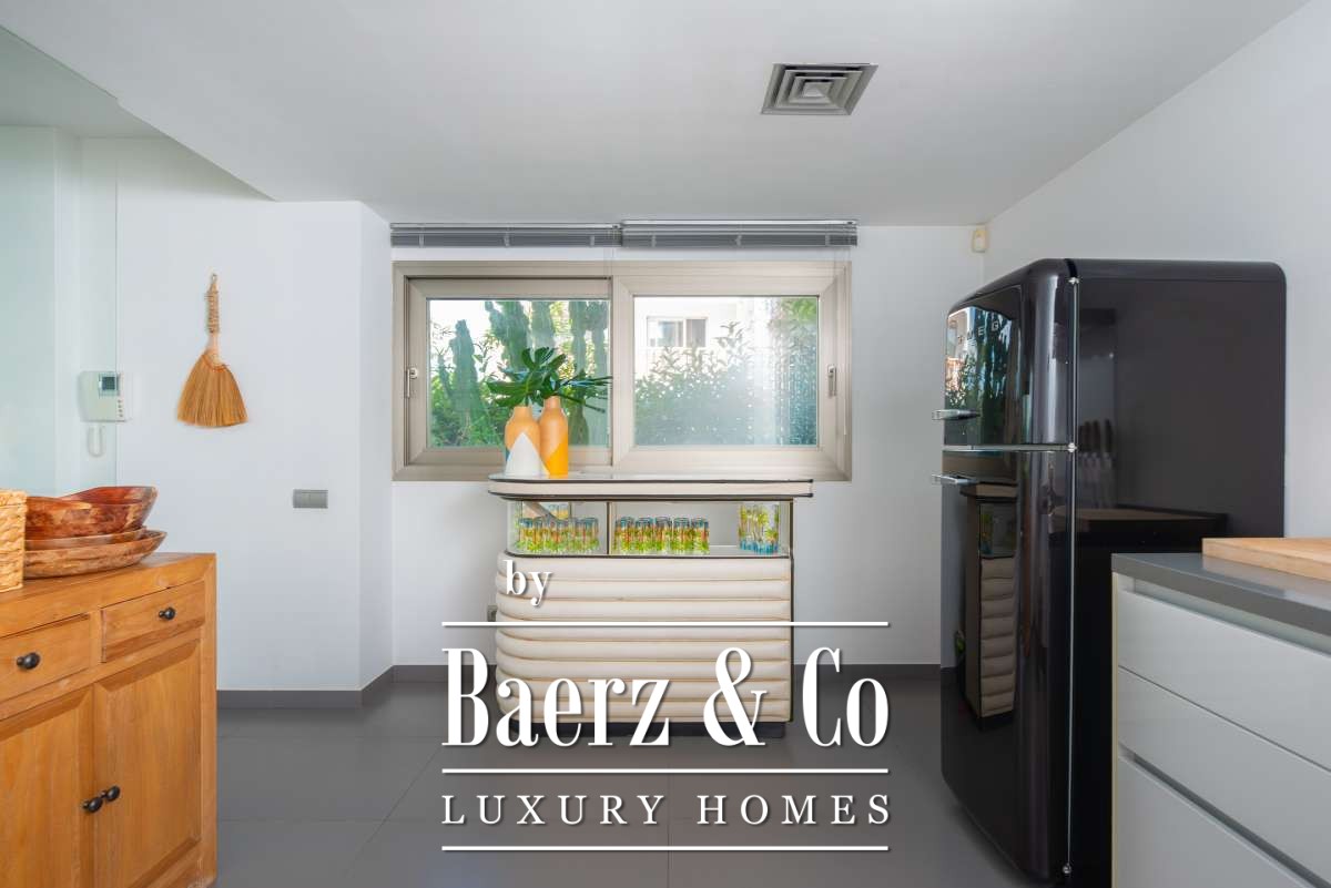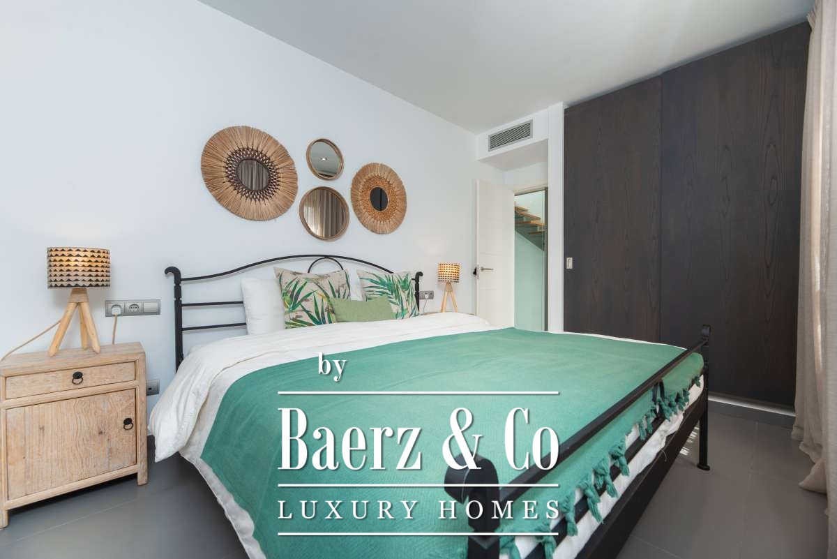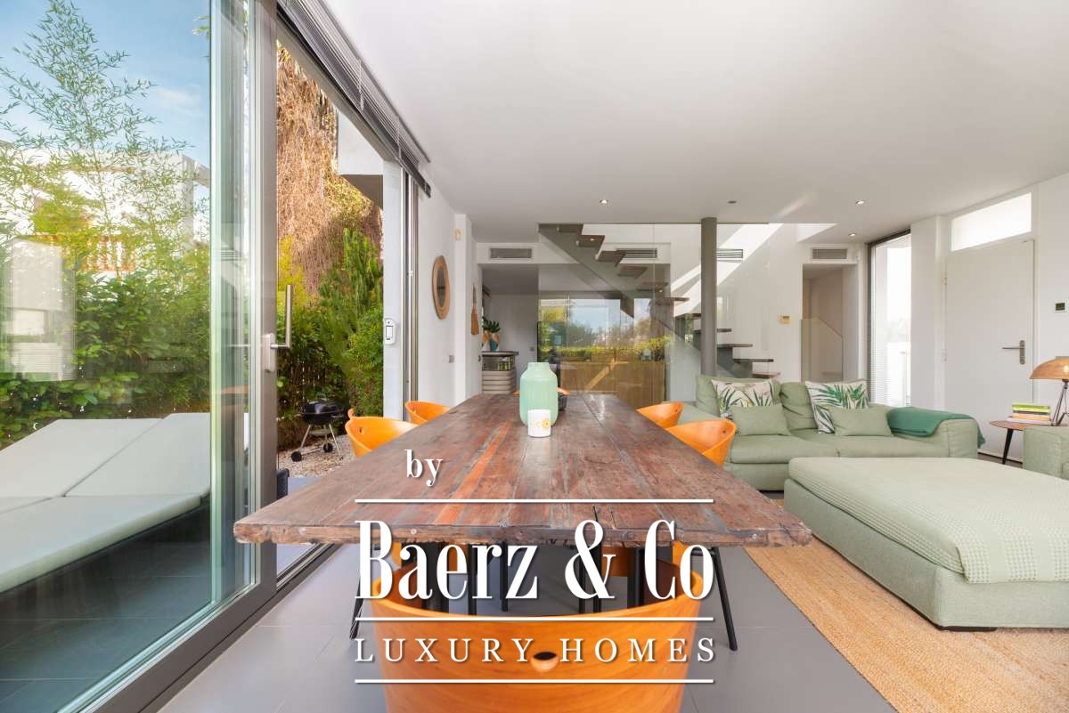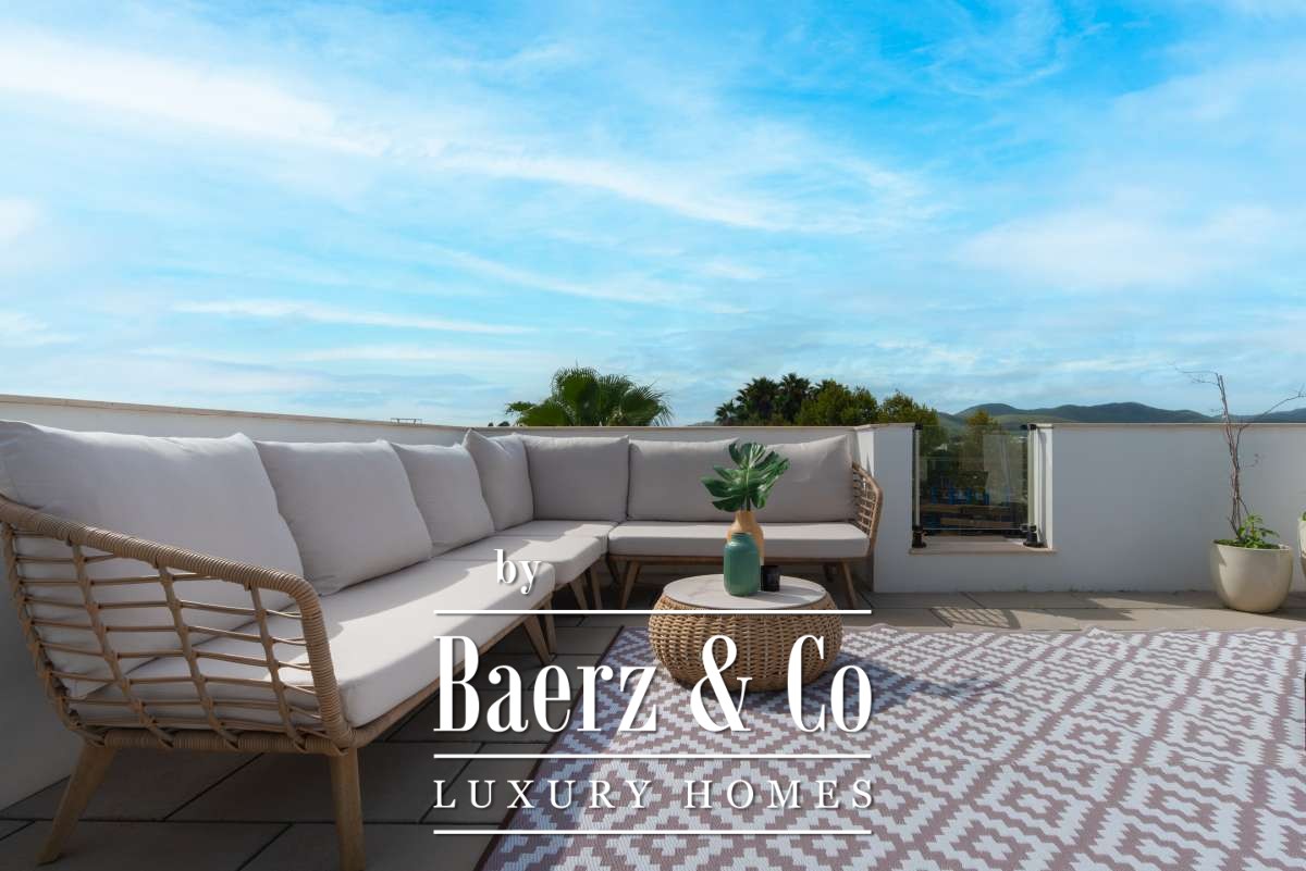 Gelegen in het charmante Jesús biedt deze moderne townhouse de perfecte balans tussen rust en bereikbaarheid. Jesús is een levendige en populaire woonplaats waar het hele jaar door voorzieningen geopend zijn, ideaal voor wie op zoek is naar een permanente of lange-termijn verblijfslocatie op Ibiza. Binnen slechts enkele minuten bereikt u Ibiza-stad, de exclusieve jachthaven Marina Botafoch en de geliefde stranden van Talamanca en S’Estanyol. Het dorp zelf ademt mediterrane gezelligheid met sfeervolle restaurants, stijlvolle cafés en lokale boetieks, allemaal op loopafstand. Hier geniet u van een ontspannen woonomgeving, terwijl de energie en charme van het eiland altijd dichtbij blijven.De townhouse