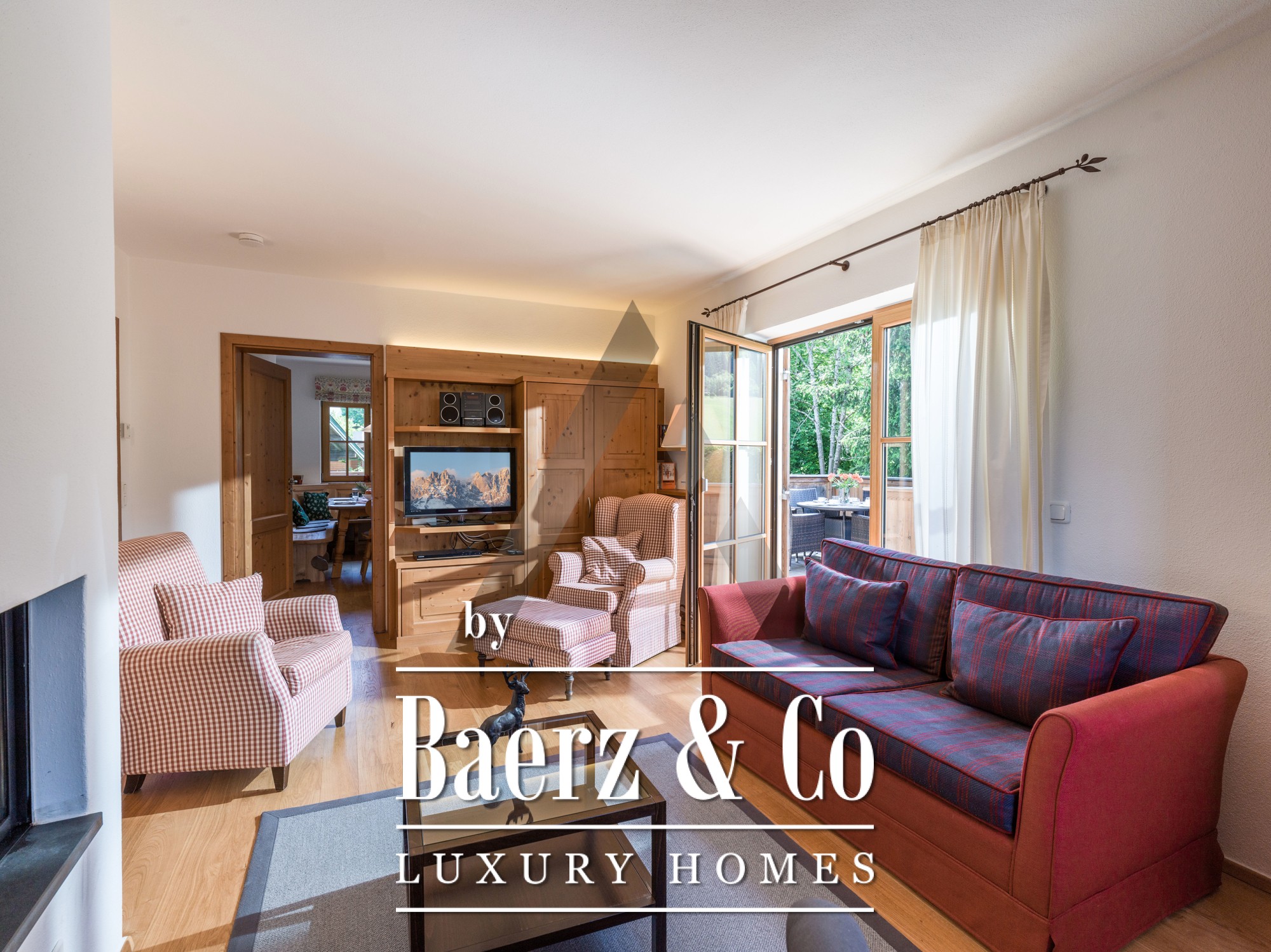 Apartment Kitzbühel vertelt een alpend verhaal waarin locatie en vakmanschap centraal staan. Deze 94 m² grote woning is volledig ingericht in de typisch Tiroler landhuisstijl; elk houten detail is op maat gemaakt door een lokale timmerman. In de hoofdwoonkamer en eetruimte draait alles om de open haard, met oude houten accenten die de tradities van de streek weerspiegelen. De aparte, volledig uitgeruste keuken nodigt uit tot rustige ochtenden of levendige bijeenkomsten.