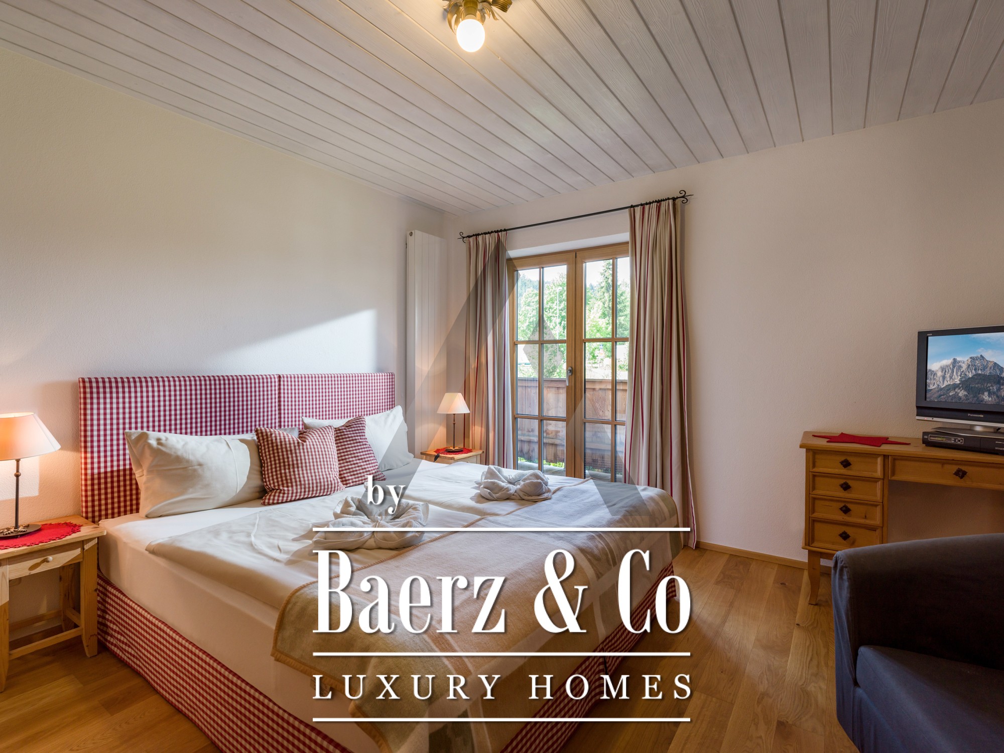 De master bedroom suite beschikt over een en suite badkamer, aangevuld met twee extra slaapkamers en twee badkamers; elke ruimte biedt privacy en moeiteloos comfort. Vloerdelen en verfijnd maatwerk benadrukken het ingetogen materiaalgebruik. Grote ramen en een rondom gelegen zonneterras verwelkomen panoramische uitzichten op de Hahnenkamm en de Wilder Kaiser, waardoor het dagelijks leven zich aanpast aan het ritme van de bergen.