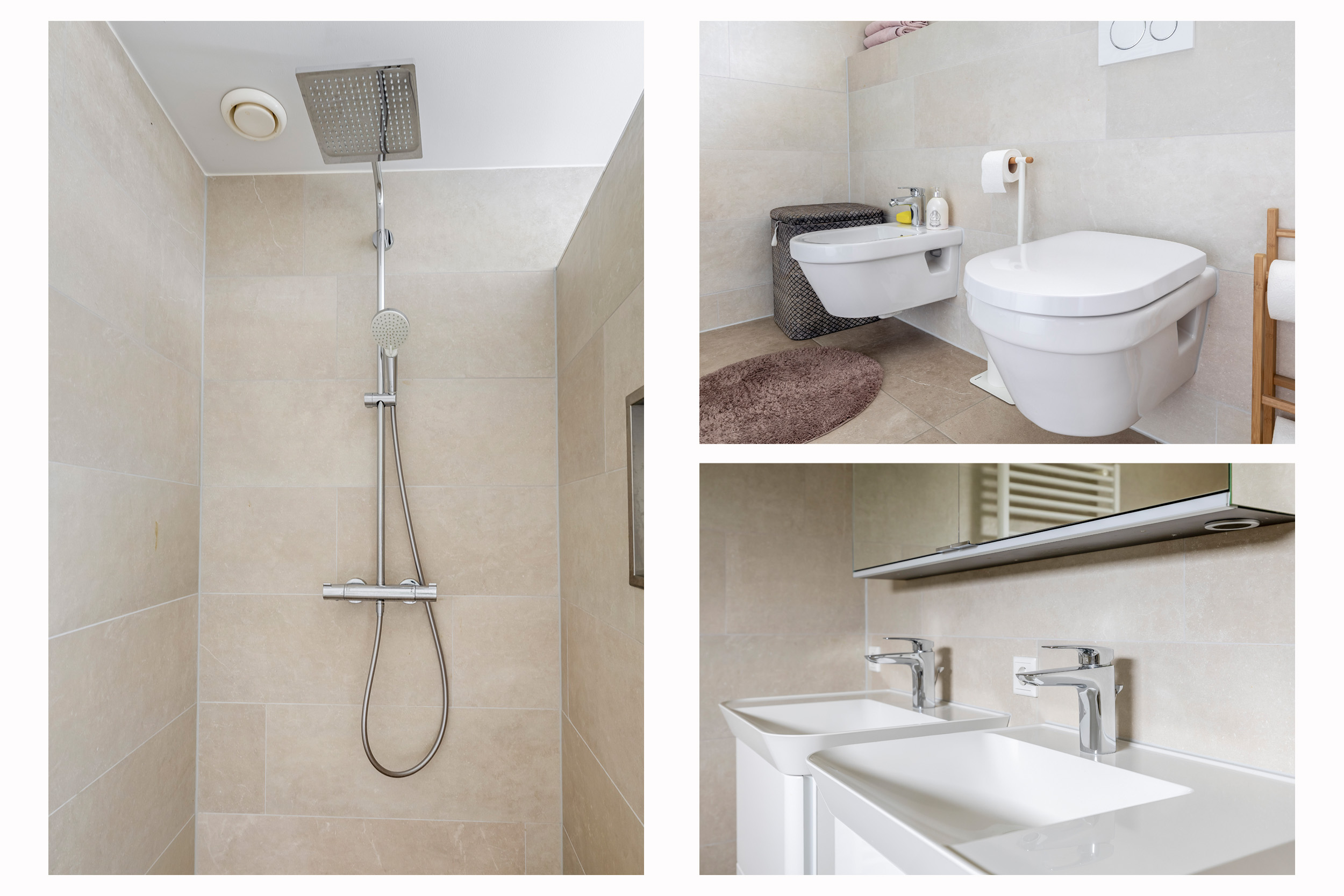 Op de tweede verdieping tref je nog 2 slaapkamers en een extra badkamer welke is voorzien van een wastafel en inloopdouche. Ook op deze verdieping is er nog extra bergruimte te vinden.