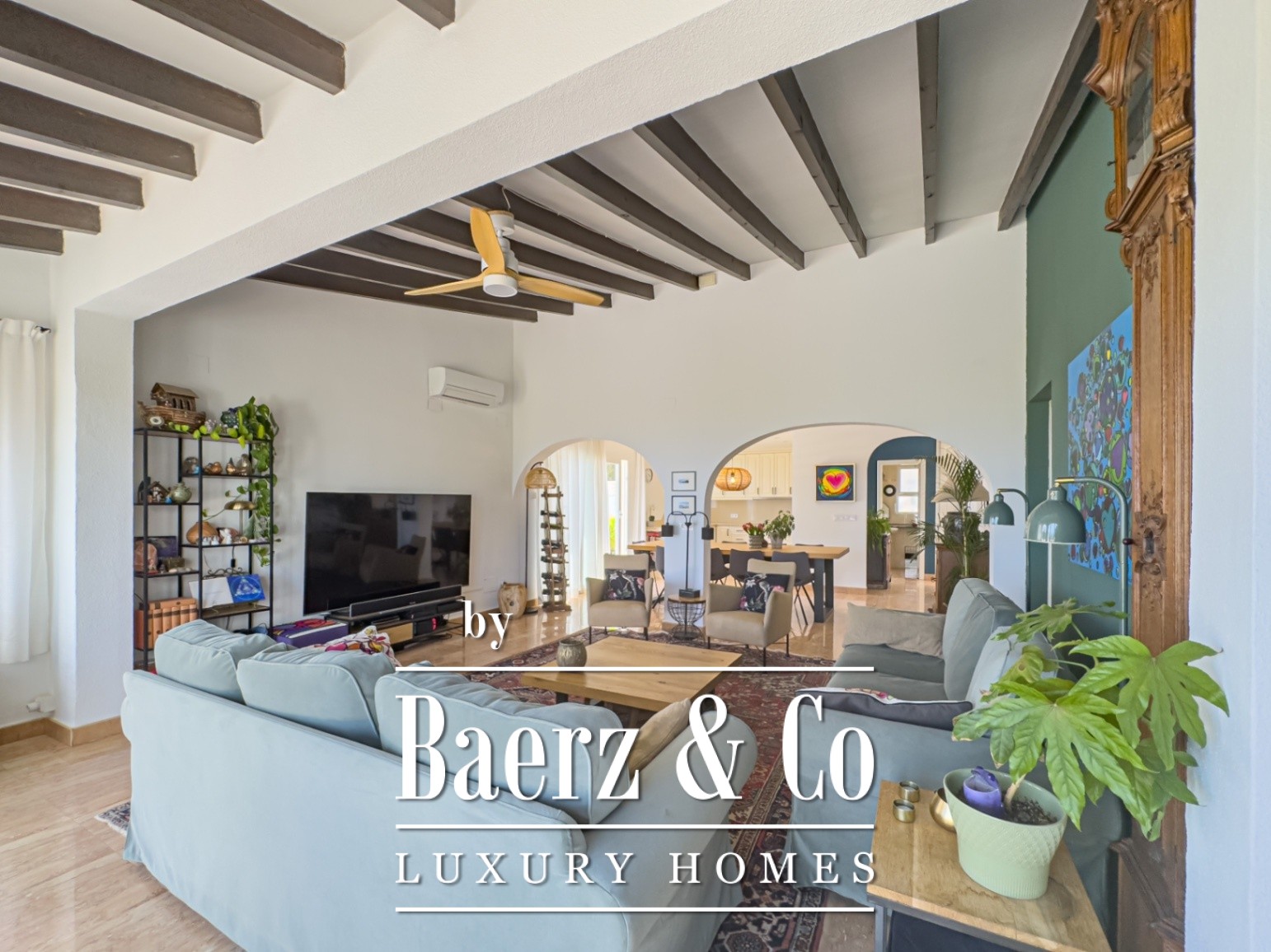 De buitenruimte is een van de grote trekpleisters van het pand: een zorgvuldig onderhouden tuin van 1265 m², met palmbomen en fruitbomen, een privézwembad, een parkeerplaats, uitzicht op zee en bergen, evenals een groot terras dat het huis omringt. Het beschikt ook over een buitenkeuken, perfect om te genieten van het weer en de Mediterraanse levensstijl.