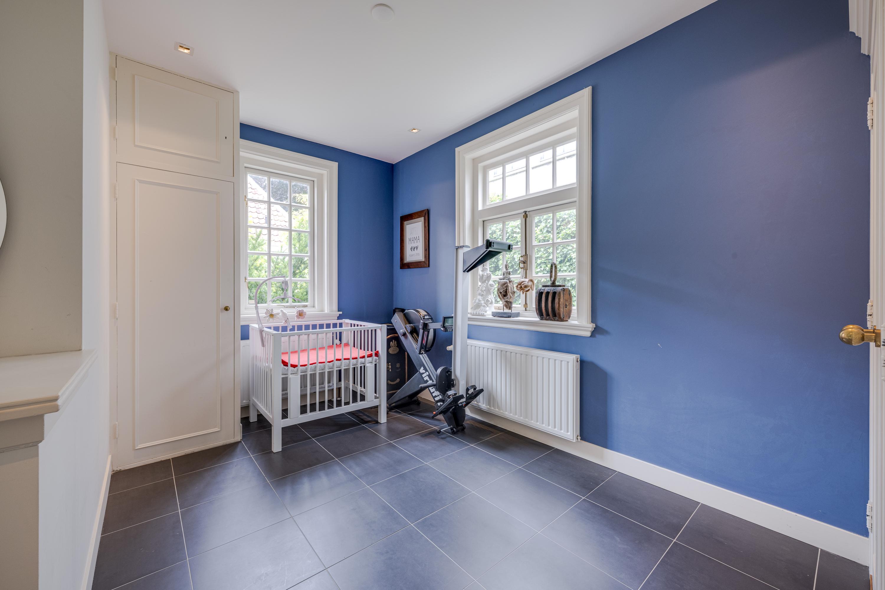 Een monumentale trap leidt naar de eerste verdieping. In het achterhuis bevindt zich een separaat toilet en een slaapkamer met moderne badkamer en suite. In het voorhuis treft u de zeer ruime en lichte woonkamer met aan de tuinzijde een zitkamer rondom de haardpartij en aan de voorzijde (3 ramen breed) een fijne lichte woonkamer met prachtig uitzicht op de gracht en de stad.