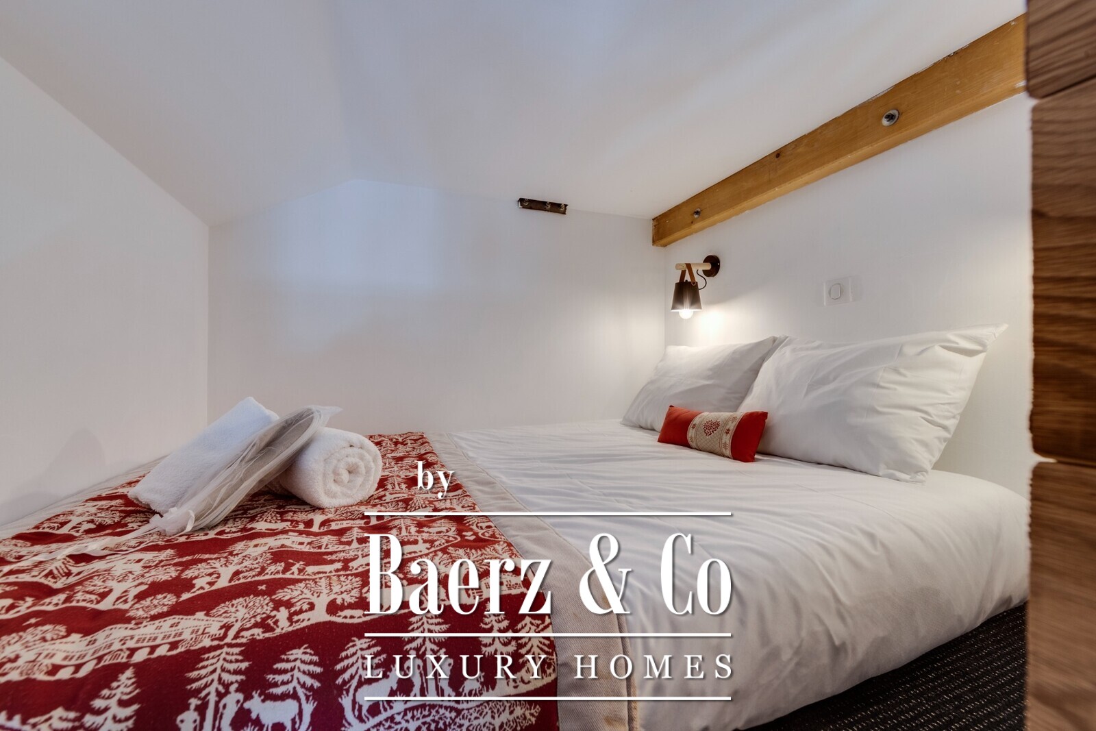 The apartment has two bedrooms, including a master suite, providing optimal comfort for you and your guests. A storage room is also available for optimized organization. The fireplace, the heart of the apartment, adds a touch of charm and conviviality, perfect for winter evenings. The kitchen, open to the living room, is a modern and welcoming space, perfect for sharing moments with family or friends. A mezzanine, equipped with a double bed, adds an additional dimension to this apartment, offering extra sleeping space or a cozy reading nook.