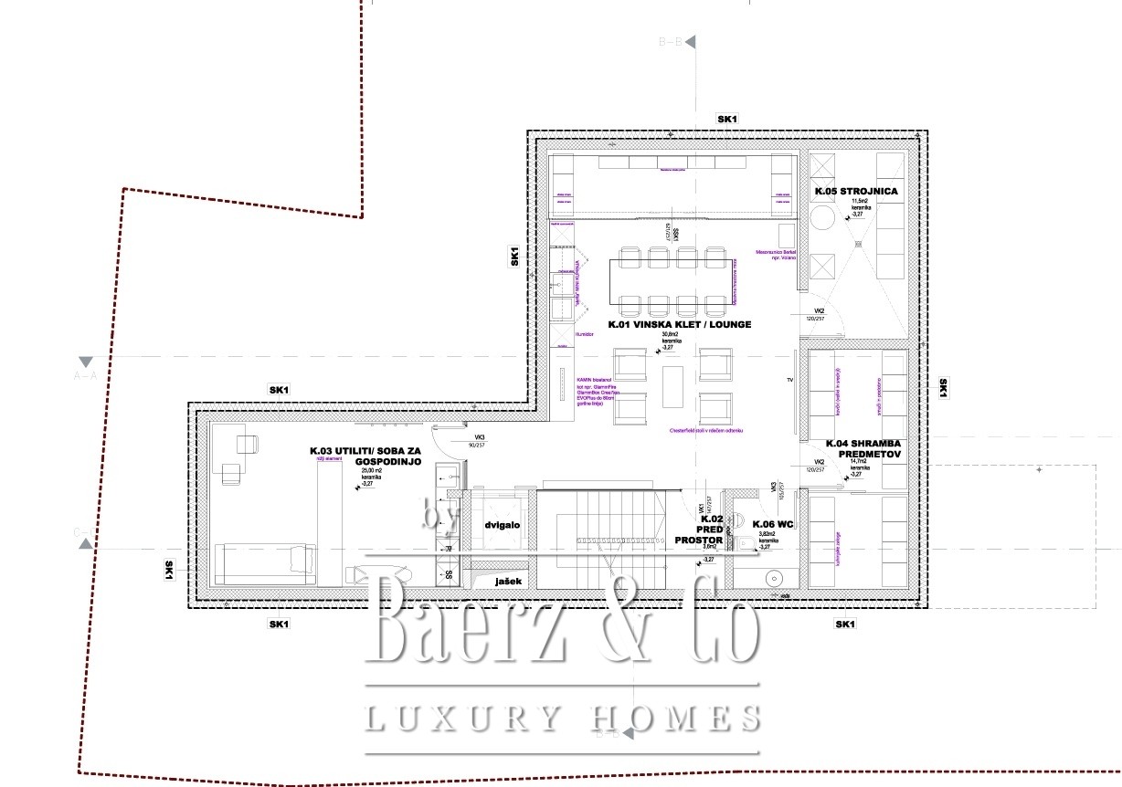 Villa Ljubljana, te koop in het gewilde hart van Rožna Dolina, biedt een zeldzame samensmelting van ruimte, licht en mogelijkheden. Deze eigentijdse villa op een perceel van 824 m² combineert moderne architectuur met royale proporties, hoge plafonds, panoramische ramen en een totale woonoppervlakte van 446,27 m². Verdeeld over vier verdiepingen—souterrain, begane grond, eerste verdieping en zolder—heeft elke ruimte een balans tussen privacy en openheid. De eerste verdieping beslaat 132,82 m², de begane grond 151,63 m², de zolder 72,40 m² en het souterrain 89,42 m², waardoor elke zone flexibel kan worden ingericht als woon-, sociaal of wellnessdomein naar persoonlijke voorkeur.