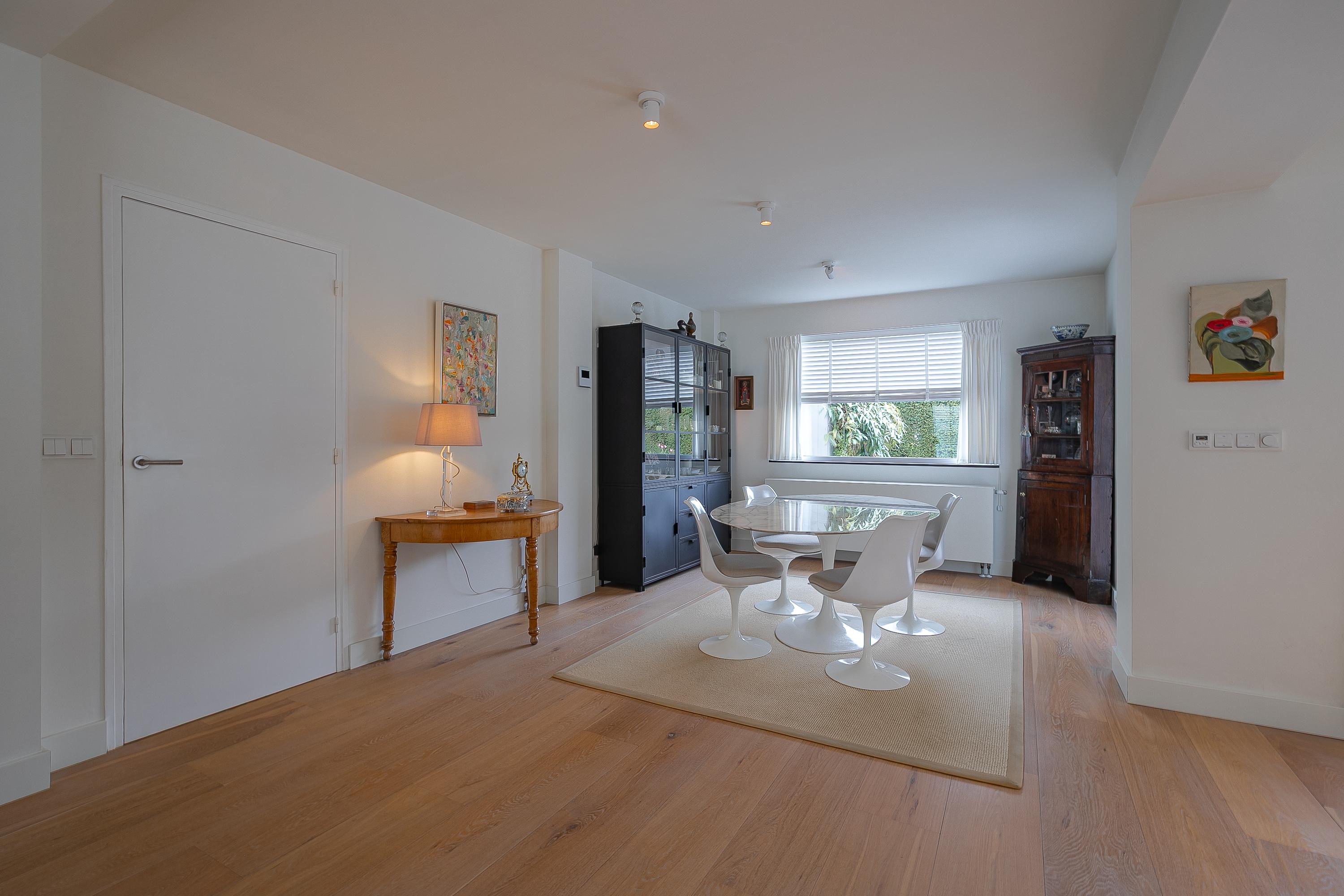 Via de representatieve entree met een stijlvolle garderobe kast, open vide en toegang tot het gastentoilet met wandcloset en fonteintje, de meterkast en de lichte, royale leefruimte (ca. 68m²). De woonkamer is voorzien van een sfeervolle Faber gashaard die jaarlijks wordt onderhouden en op koude dagen zorgt voor extra warmte en sfeer. De designradiatoren en fraaie parketvloer geven de ruimte extra stijl.