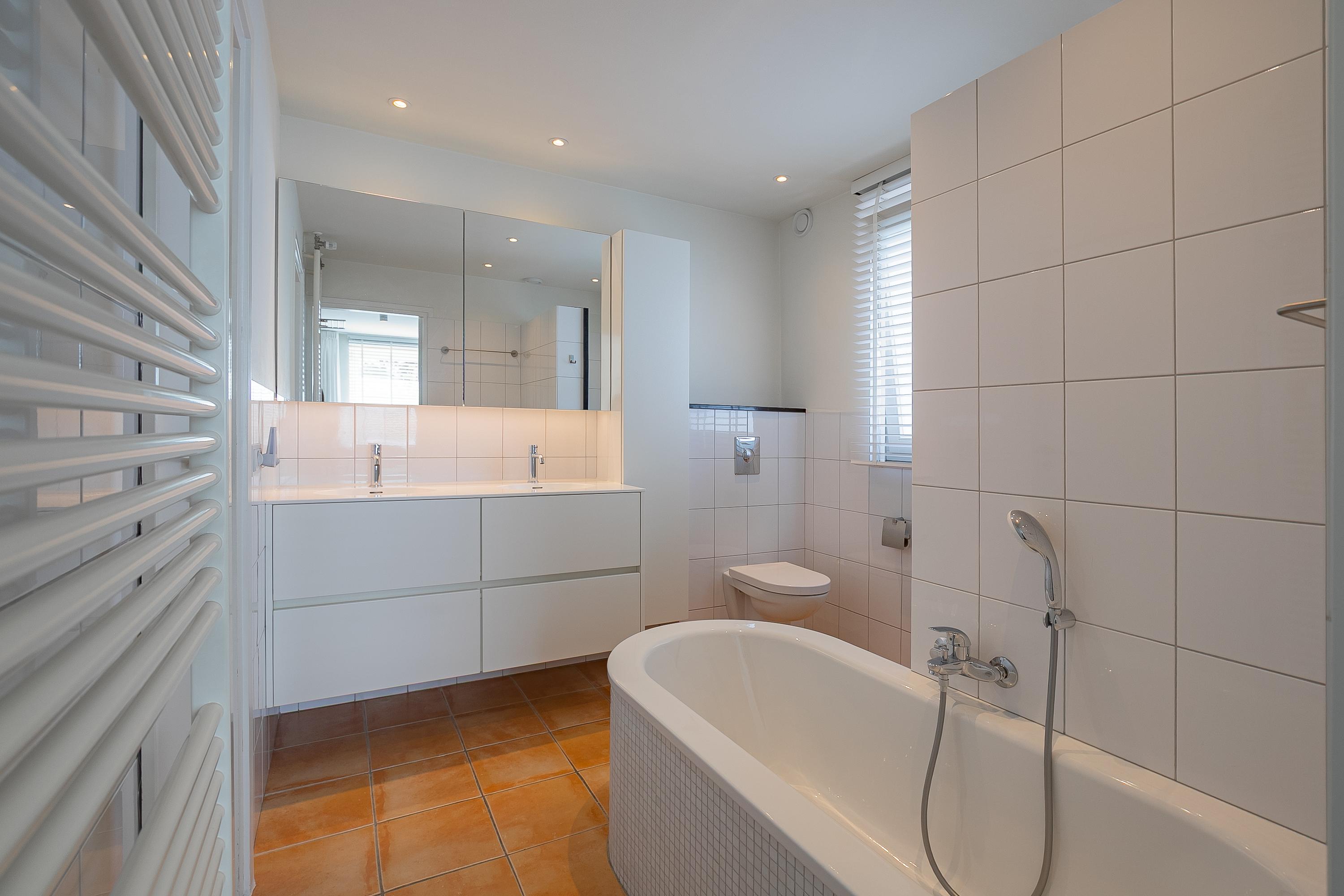 De ruime overloop leidt naar vier comfortabele slaapkamers (ca. 6.7, 8.5, 11.5 en 14.5m²). De inloopkastenkamer en het kantoor zijn uitgerust met op maat gemaakte, stijlvolle inbouwkasten van Slangen Interieurbouw. De overige kamers zijn eveneens praktisch ingericht. De badkamer beschikt over mechanische ventilatie en is uitgerust met een ligbad, inloopdouche, dubbele wastafel en een wandcloset. Alle kamers zijn voorzien van aluminium kozijnen met HR++ beglazing en stijlvol uitgerust met een mozaïek parketvloer.