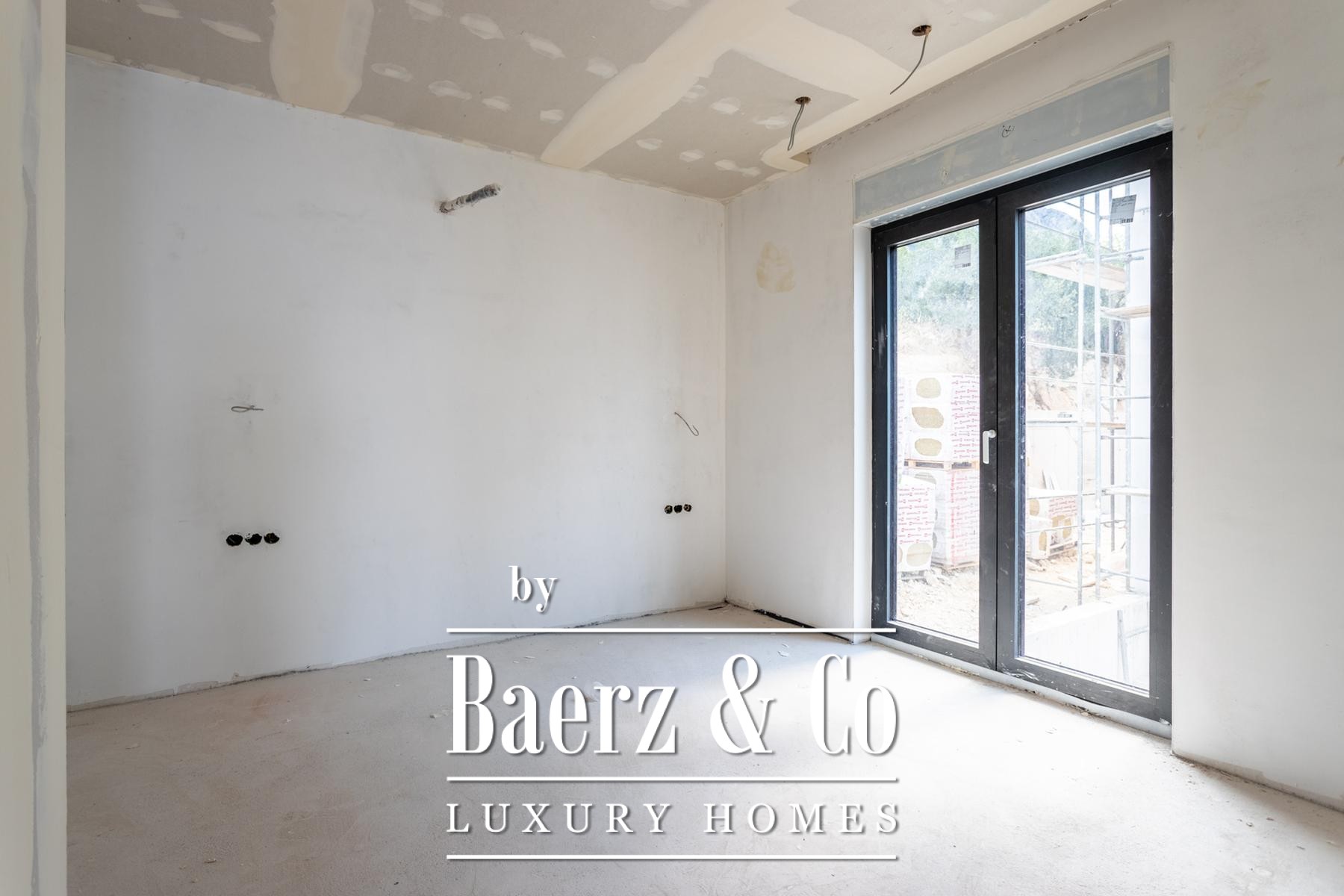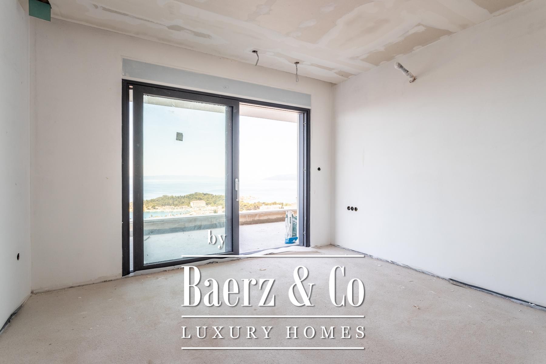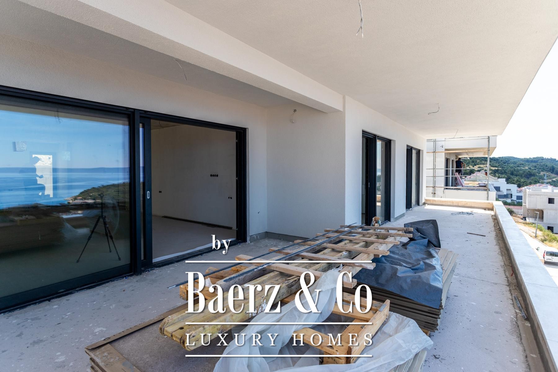 Het doorzonappartement is zorgvuldig ingedeeld met drie slaapkamers, elk voorzien van een eigen badkamer, een royale hal, een berging, een wasruimte en een ruime woonkamer die naadloos overloopt in de buitenruimte. Het doordachte ontwerp zorgt ervoor dat elke kamer wordt overspoeld met Adriatisch licht, voor een gevoel van rust en ruimte. Slimme woningautomatisering en vloerverwarming via een warmtepomp, in combinatie met hoogwaardige airconditioning, bieden comfort in elk seizoen. De keuze voor eersteklas parket en keramiek, geaccentueerd door Schuco aluminium details, onderstrepen de duurzame kwaliteit.