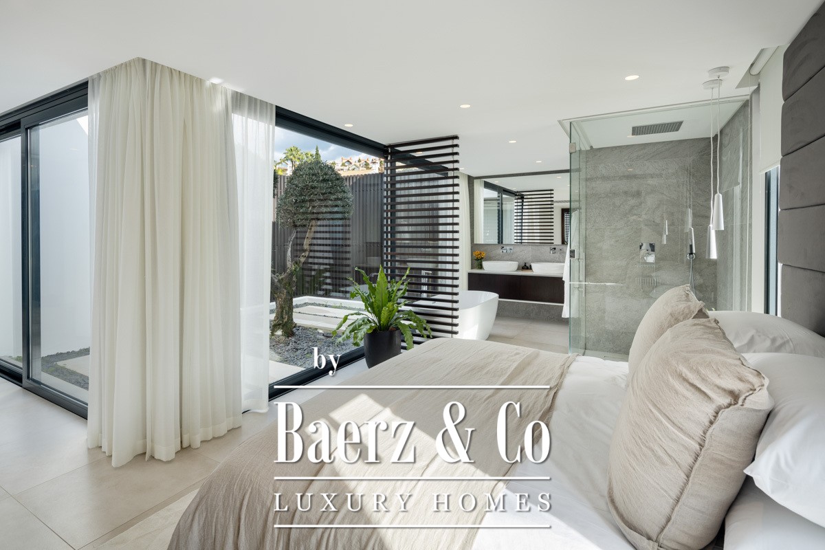 Welcome to a modern frontline golf villa located in the heart of Nueva Andalucía. This stunning property seamlessly combines contemporary design with luxurious comfort, offering an unparalleled living experience. The villa features expansive terraces, thoughtfully designed for entertaining, and a private outdoor pool that invites relaxation under the Mediterranean sun. With a private driveway adding convenience, this villa is perfectly positioned to enjoy breath-taking golf and mountain views from every angle.