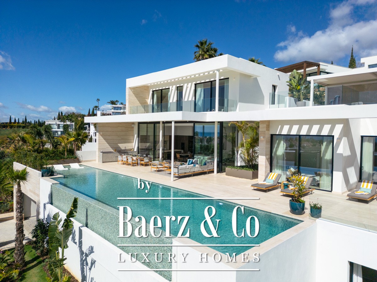 Introducing a brand-new modern villa located in the exclusive gated community of Los Flamingos, Benahavís. Set on an elevated plot, this home offers panoramic views and is part of a limited collection of four luxury properties. With its sleek geometric design and expansive terraces—partially covered for year-round enjoyment—this villa is built for stylish outdoor living. A striking zero-edge infinity pool adds to the home’s appeal, ideal for entertaining or relaxing under the sun.