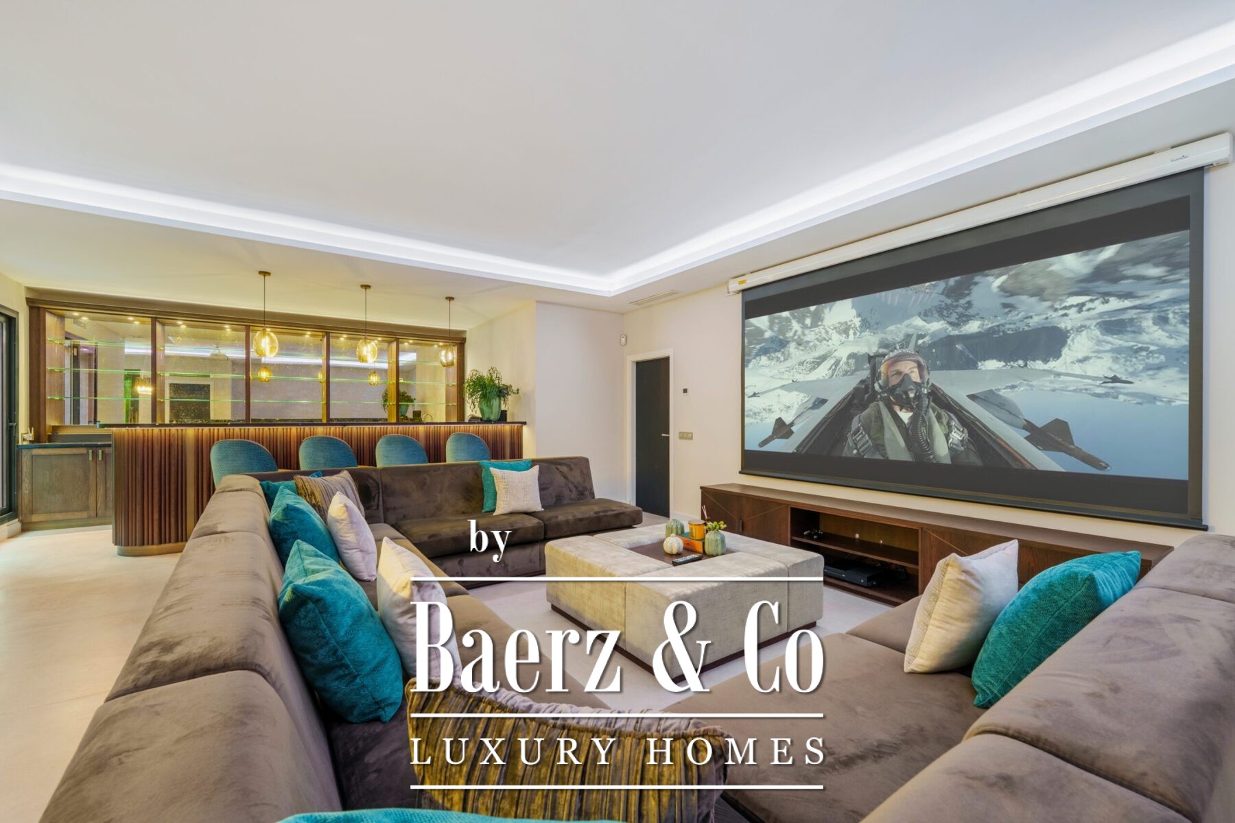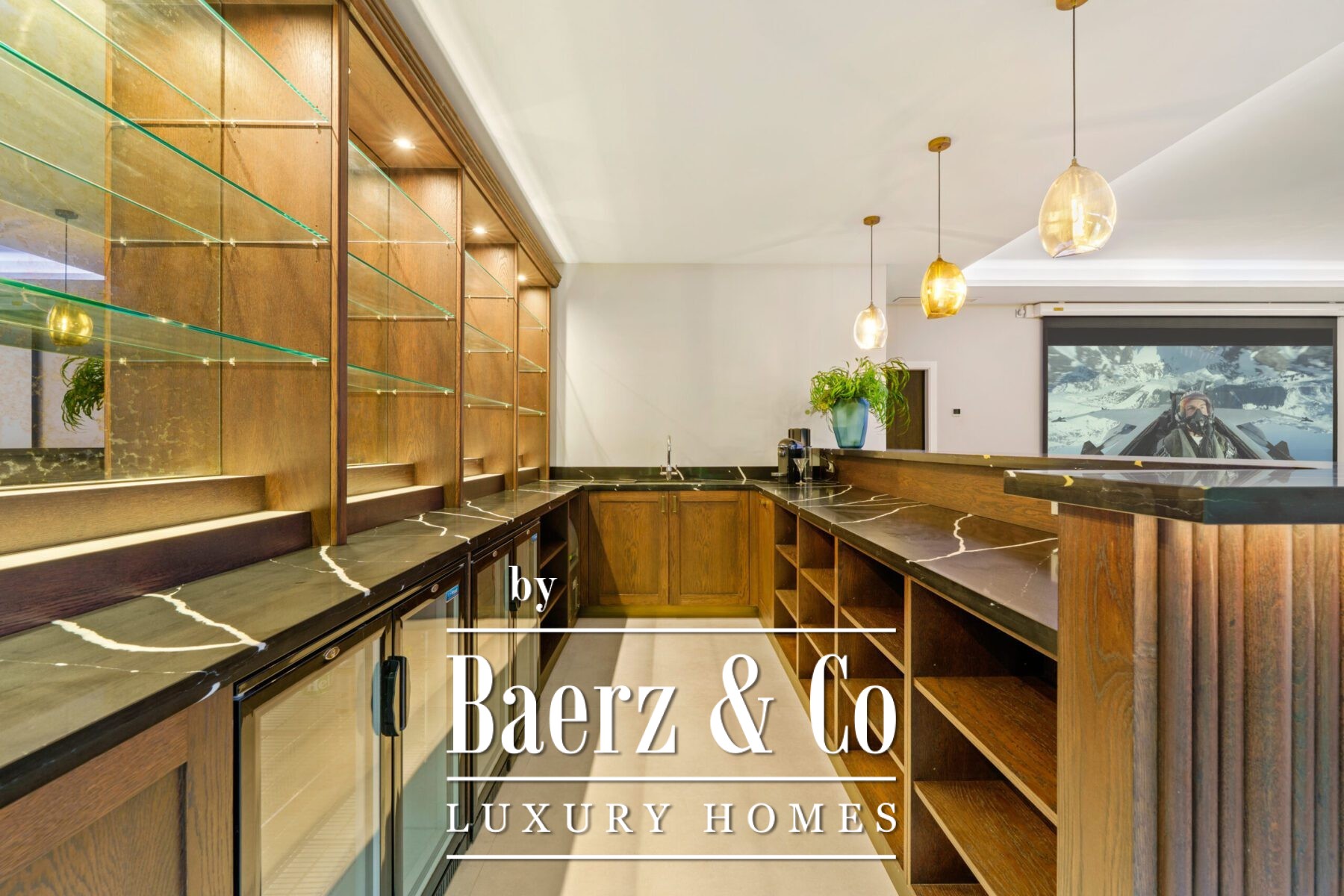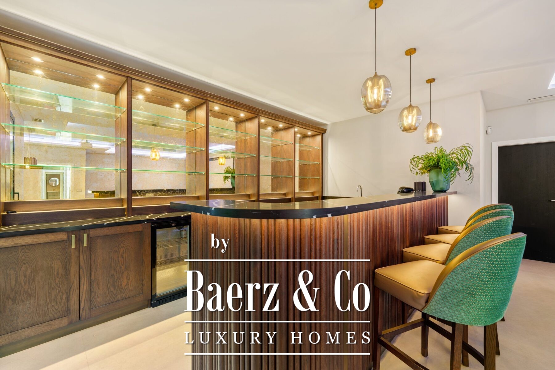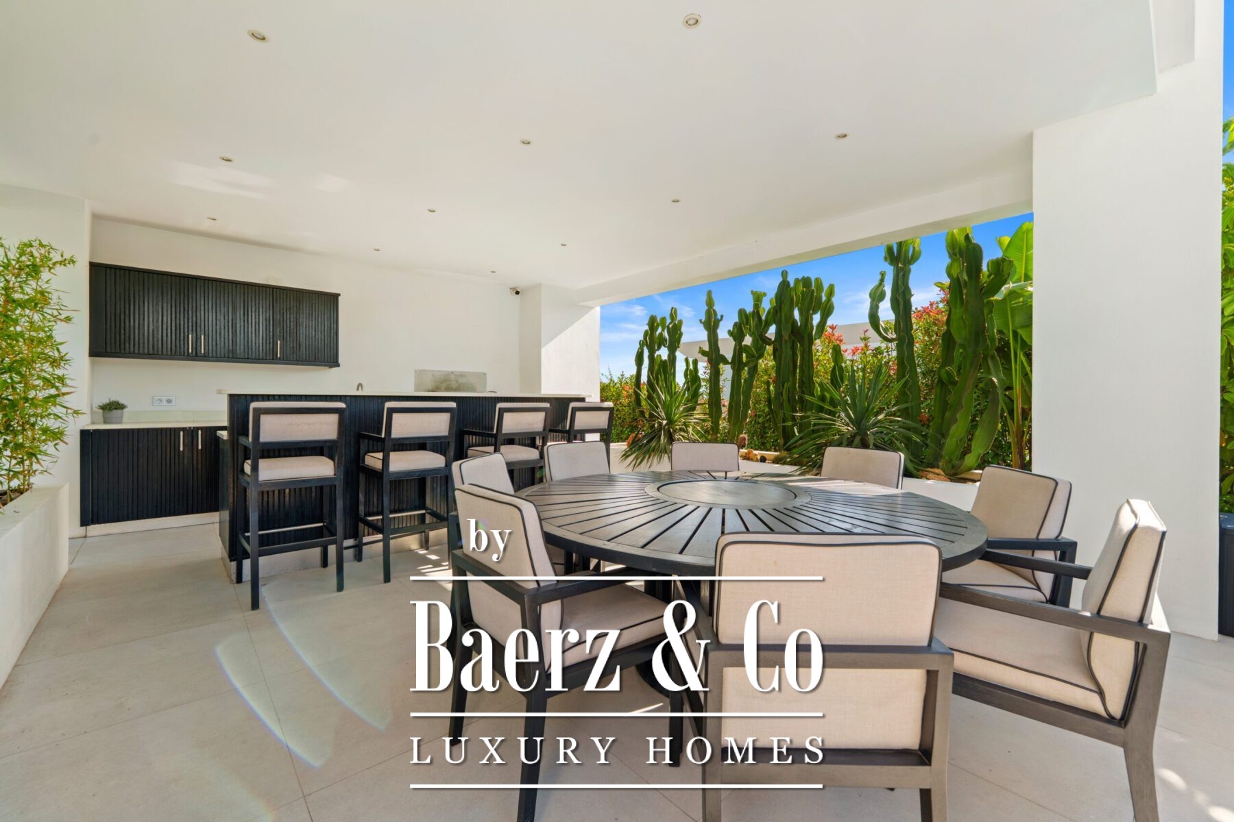 Buiten ligt de focus op een royaal zwembad met een intrekbare cover, omgeven door zonneterrassen en diverse overdekte zitgedeelten. Grenzend aan het zwembad vindt u een lounge met vuurplaats, een buitenkeuken en eetruimte, wat zorgt voor een ontspannen sfeer voor stijlvol buitenleven en entertainment het hele jaar door. Zes slaapkamers en vijf badkamers garanderen privacy en comfort, waarbij elke slaapkamer beschikt over een eigen terras en een eigentijdse afwerking.