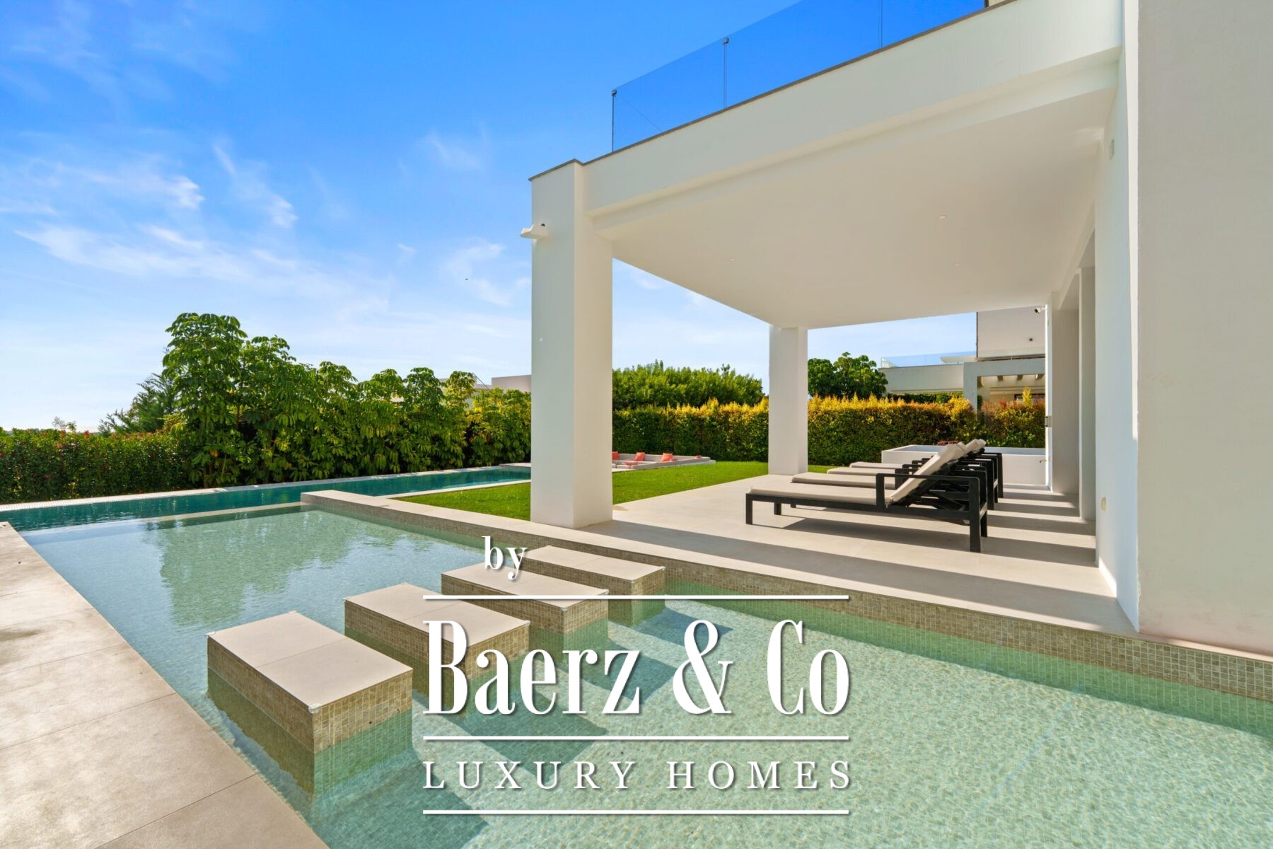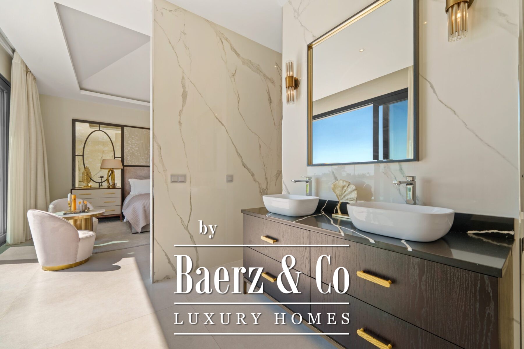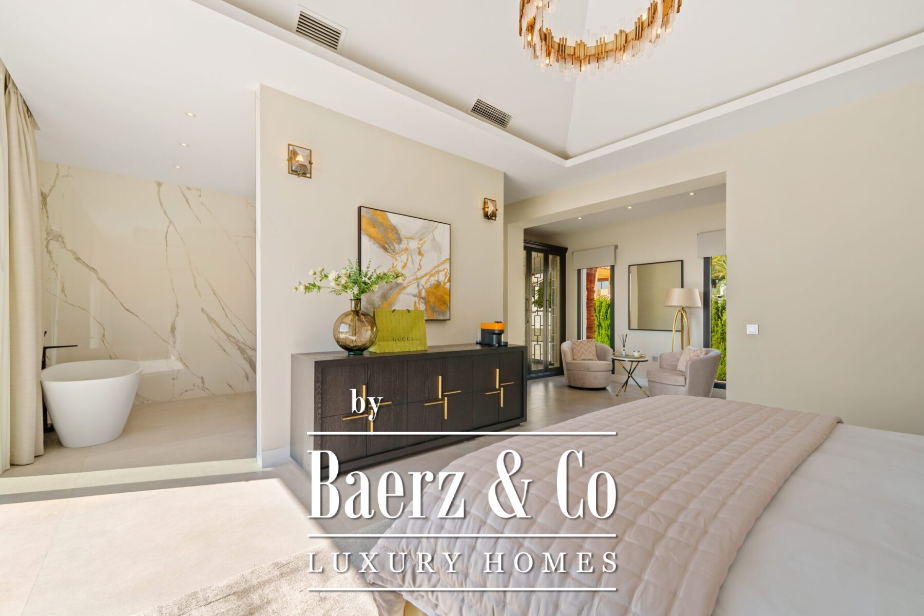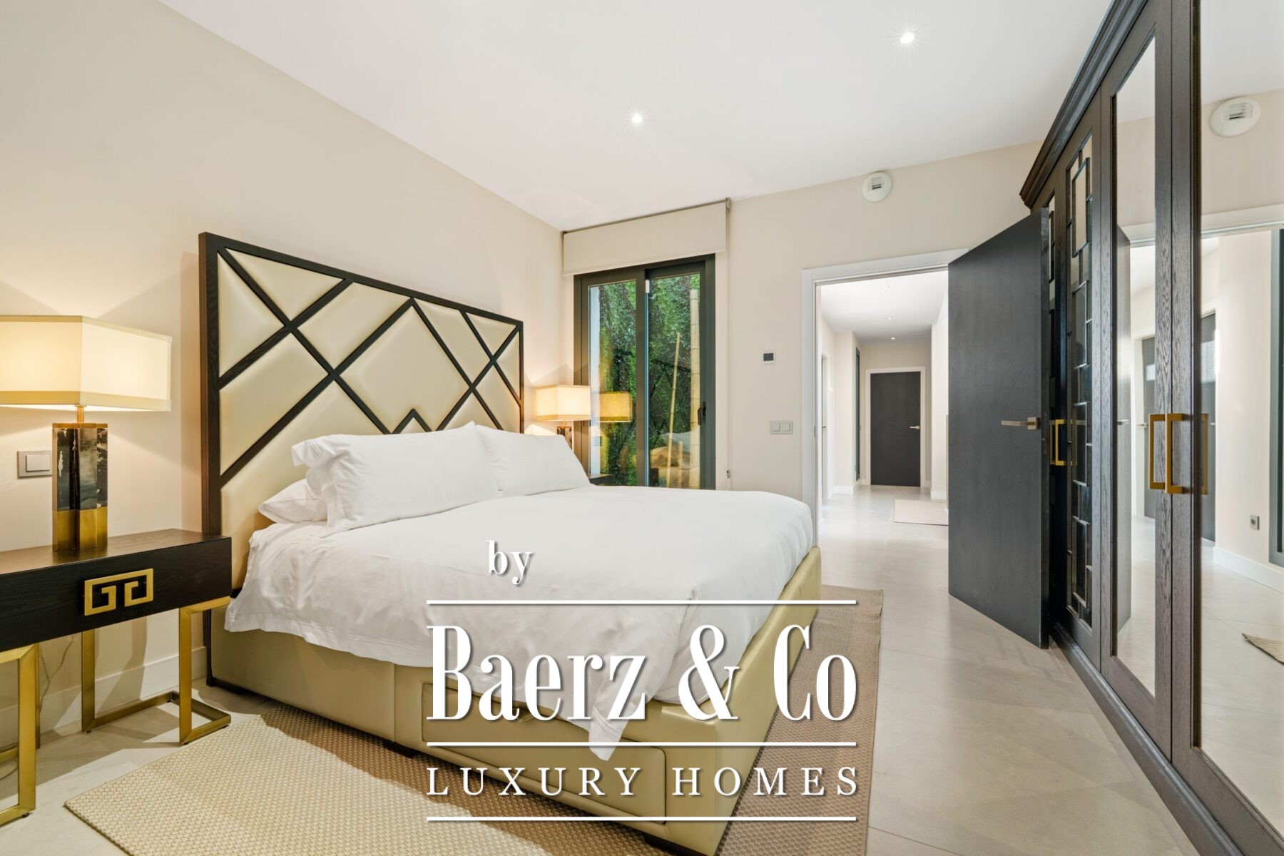 Buiten ligt de focus op een royaal zwembad met een intrekbare cover, omgeven door zonneterrassen en diverse overdekte zitgedeelten. Grenzend aan het zwembad vindt u een lounge met vuurplaats, een buitenkeuken en eetruimte, wat zorgt voor een ontspannen sfeer voor stijlvol buitenleven en entertainment het hele jaar door. Zes slaapkamers en vijf badkamers garanderen privacy en comfort, waarbij elke slaapkamer beschikt over een eigen terras en een eigentijdse afwerking.
