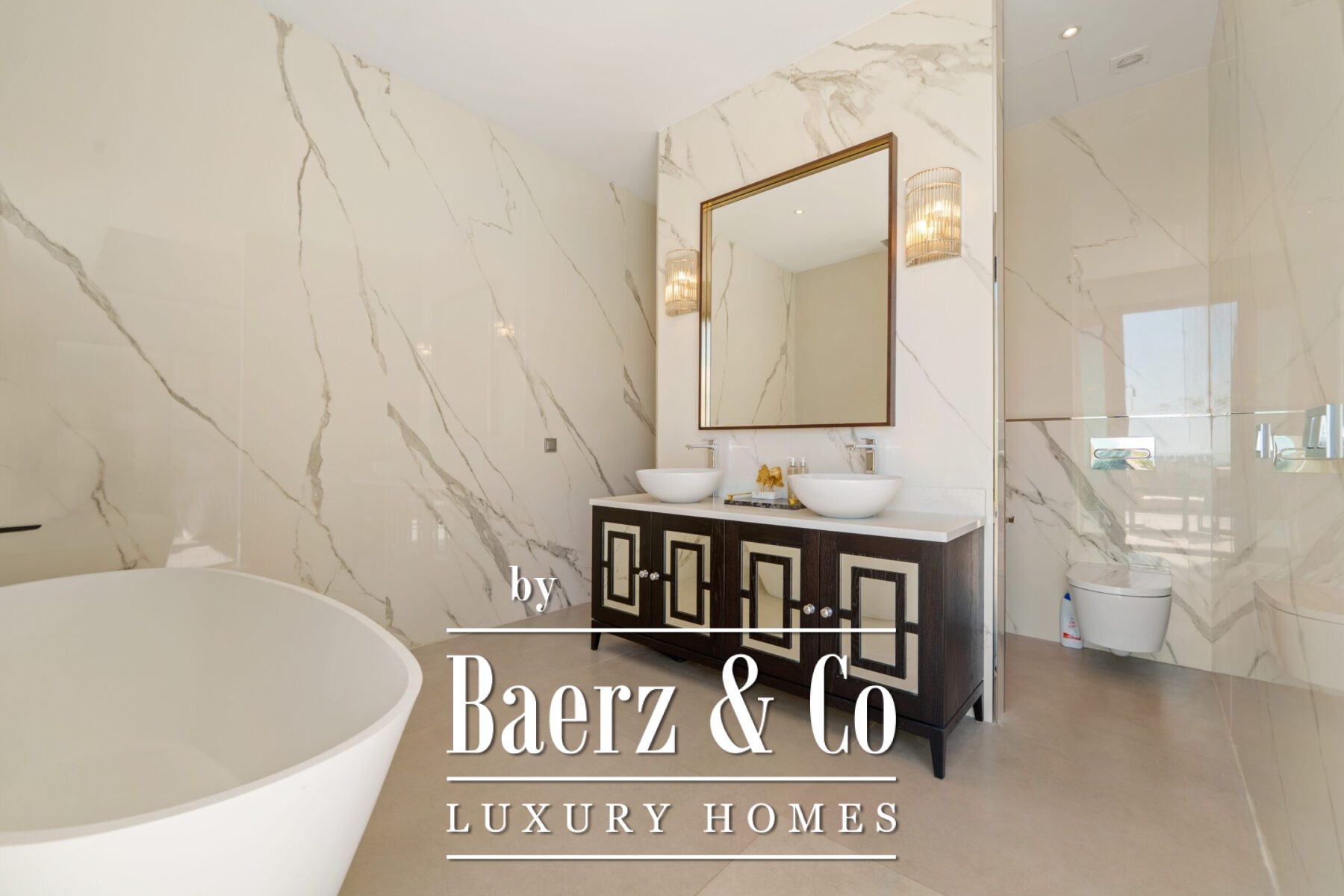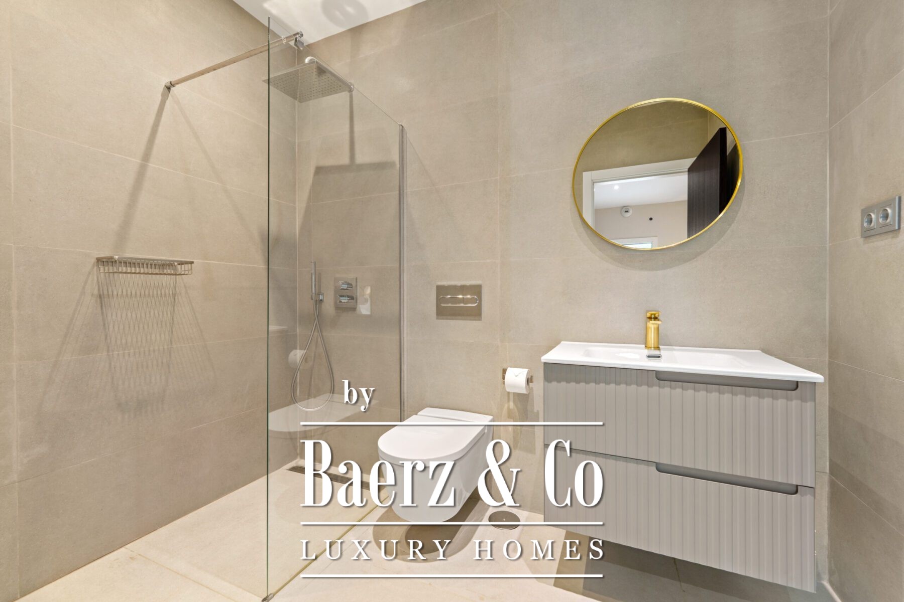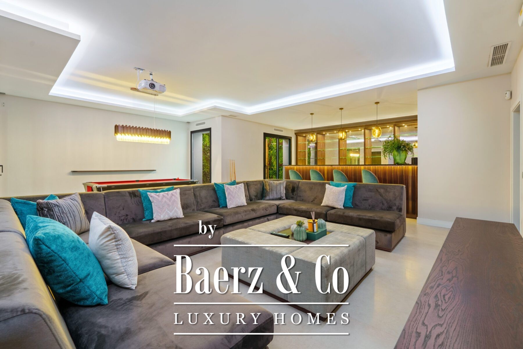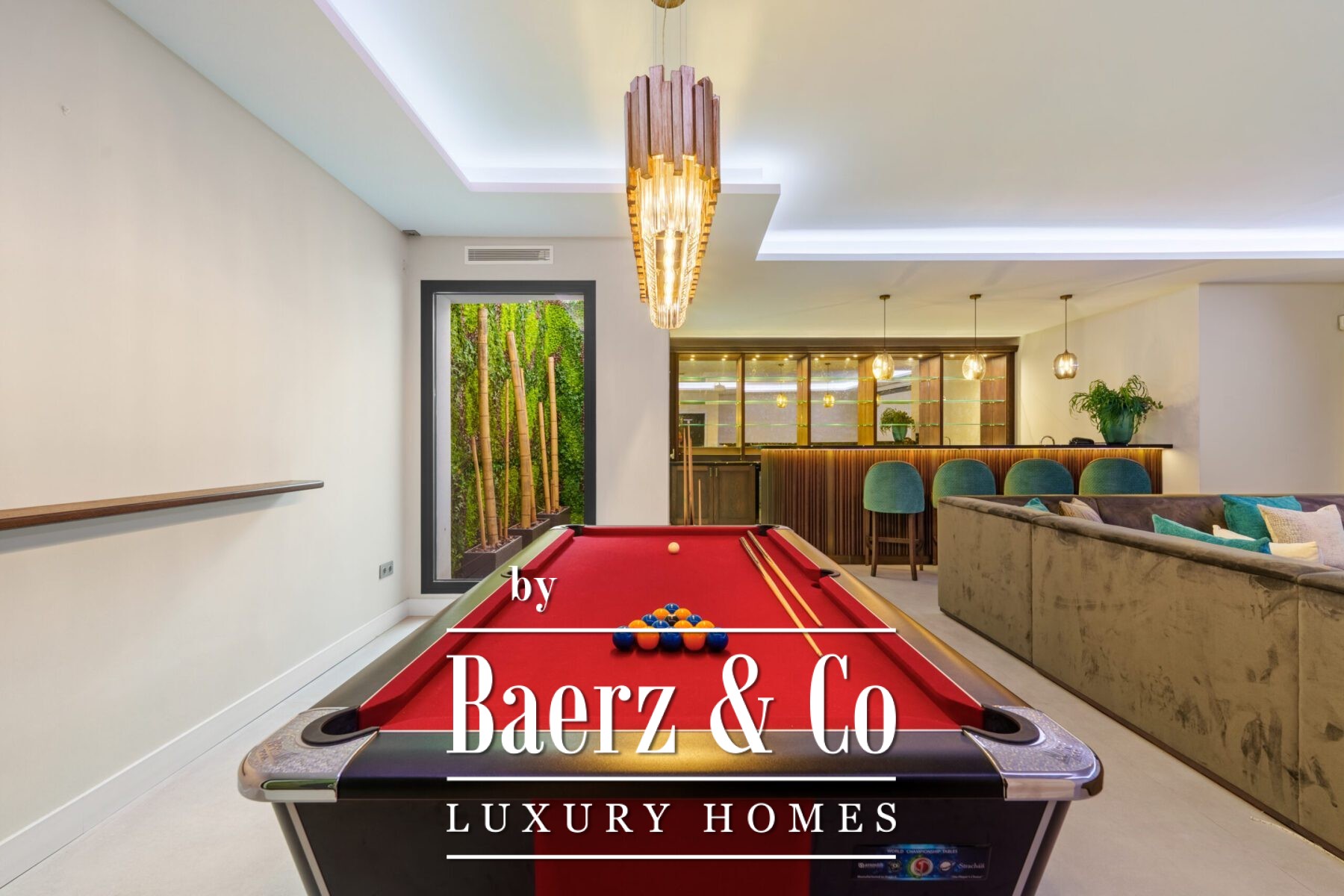 Buiten ligt de focus op een royaal zwembad met een intrekbare cover, omgeven door zonneterrassen en diverse overdekte zitgedeelten. Grenzend aan het zwembad vindt u een lounge met vuurplaats, een buitenkeuken en eetruimte, wat zorgt voor een ontspannen sfeer voor stijlvol buitenleven en entertainment het hele jaar door. Zes slaapkamers en vijf badkamers garanderen privacy en comfort, waarbij elke slaapkamer beschikt over een eigen terras en een eigentijdse afwerking.