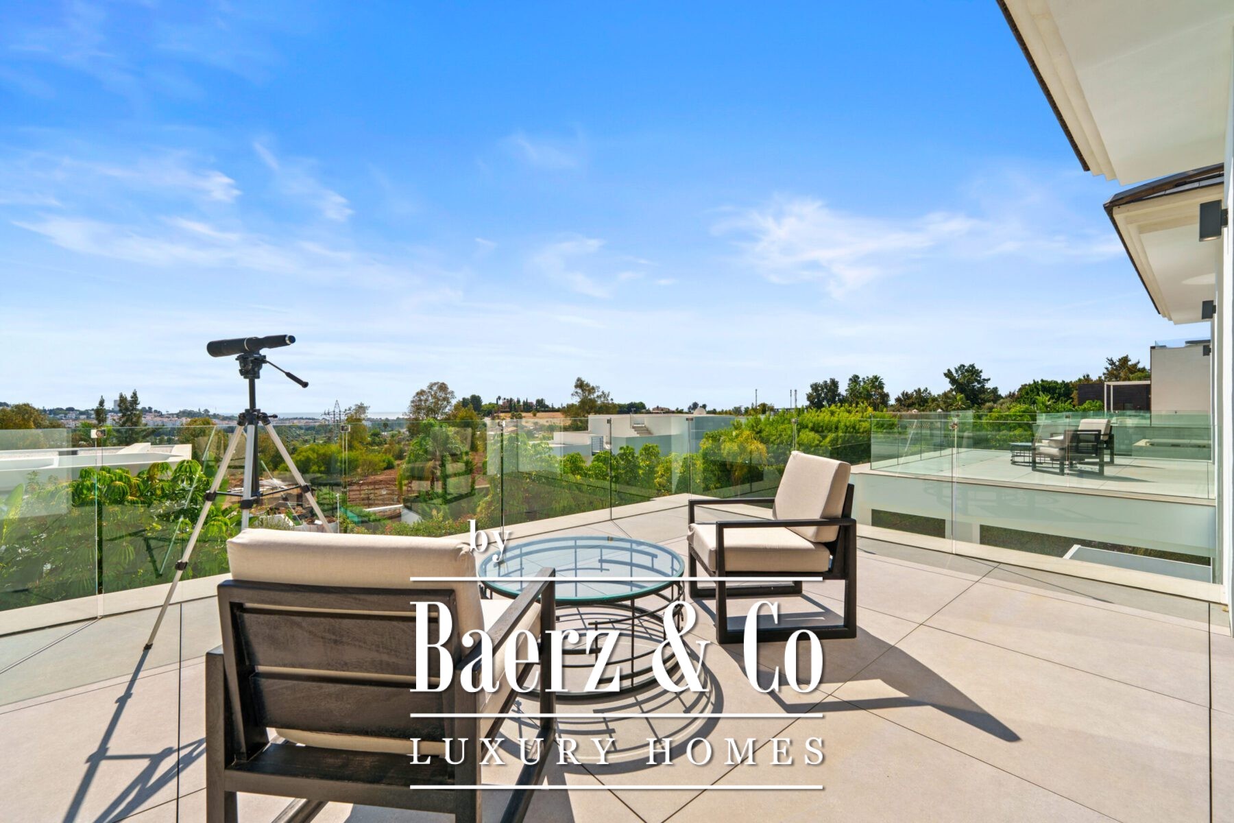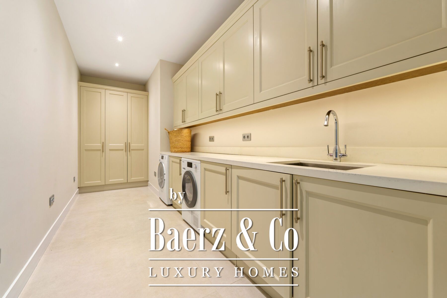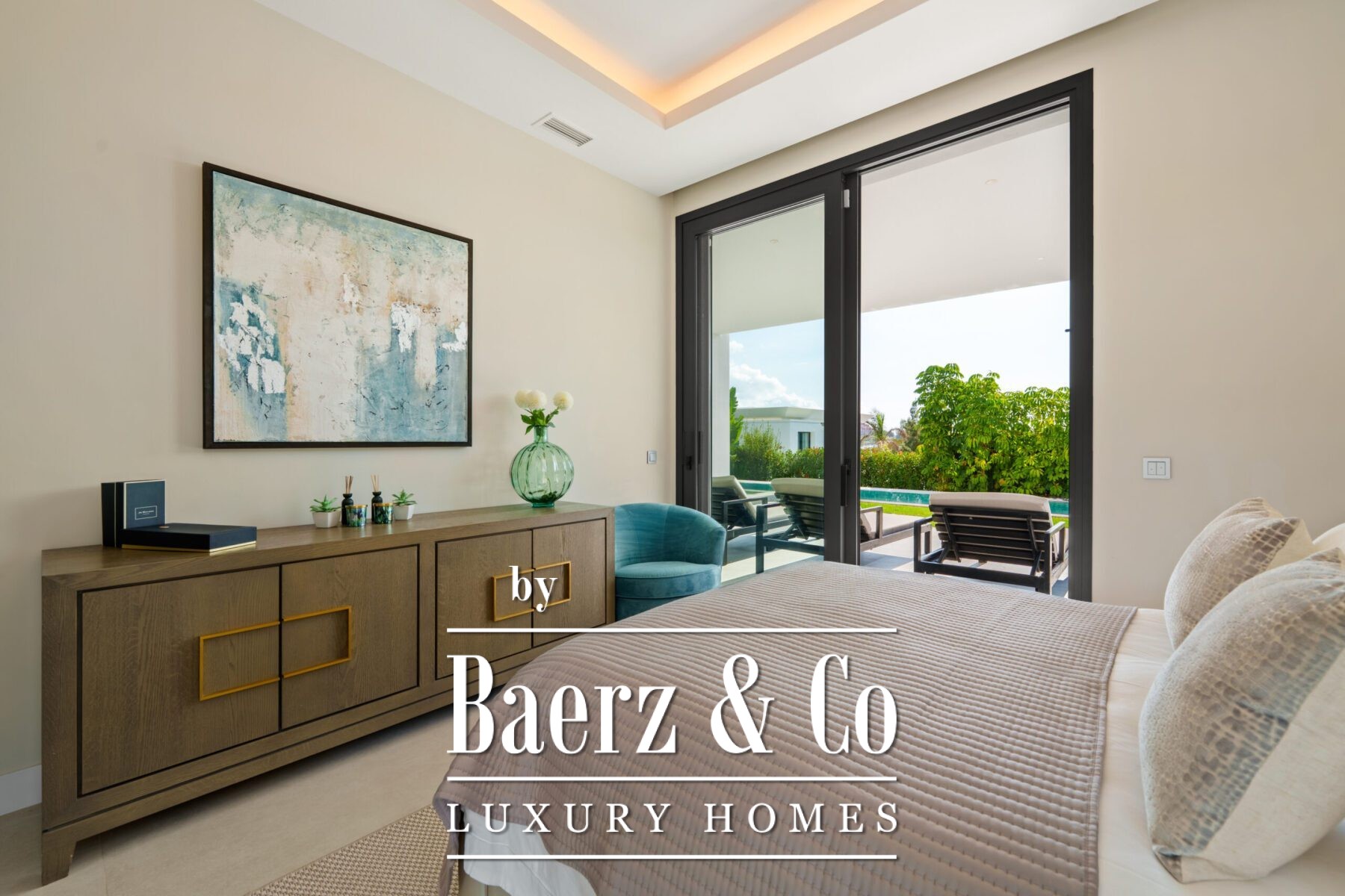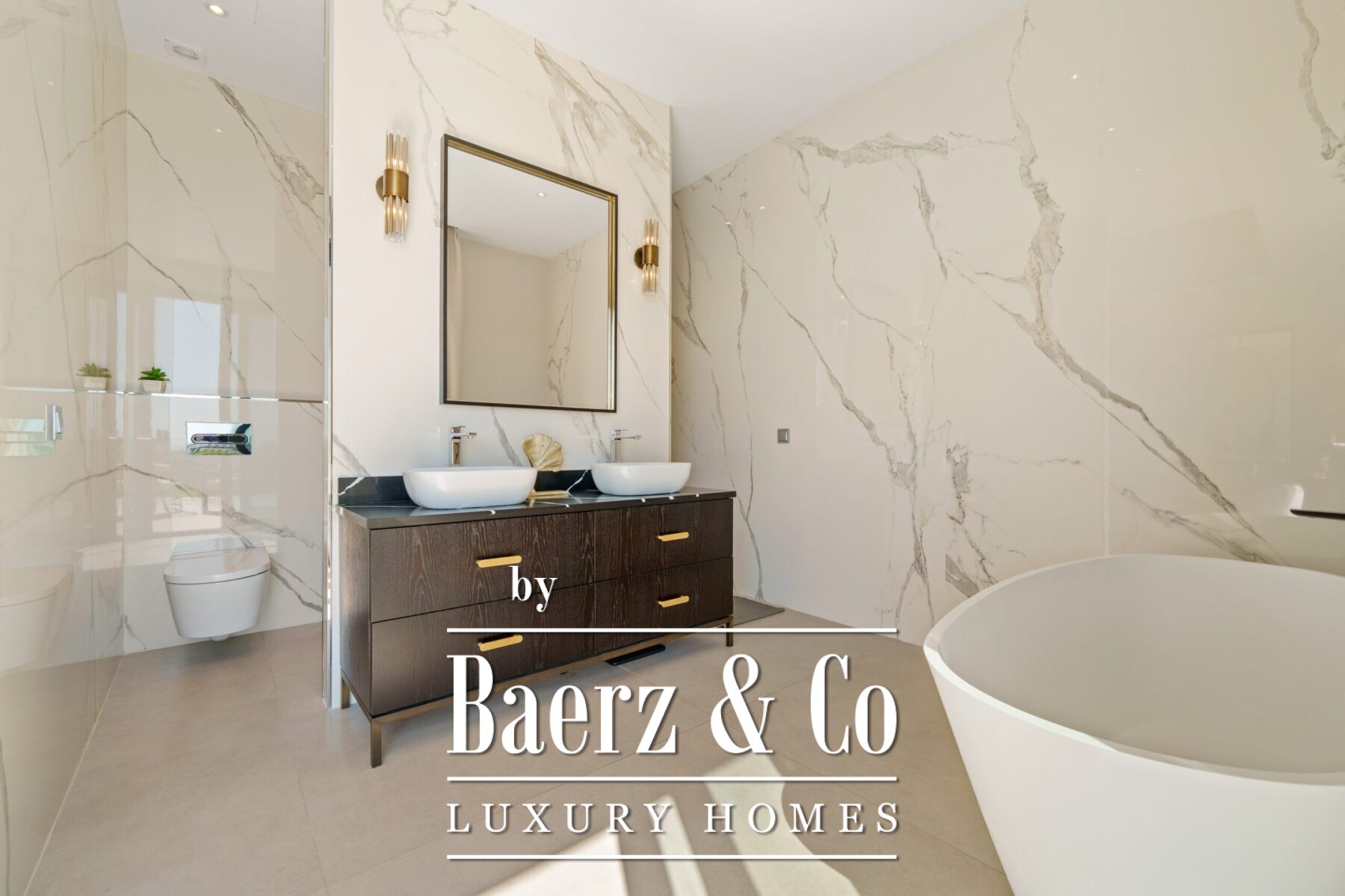 Buiten ligt de focus op een royaal zwembad met een intrekbare cover, omgeven door zonneterrassen en diverse overdekte zitgedeelten. Grenzend aan het zwembad vindt u een lounge met vuurplaats, een buitenkeuken en eetruimte, wat zorgt voor een ontspannen sfeer voor stijlvol buitenleven en entertainment het hele jaar door. Zes slaapkamers en vijf badkamers garanderen privacy en comfort, waarbij elke slaapkamer beschikt over een eigen terras en een eigentijdse afwerking.