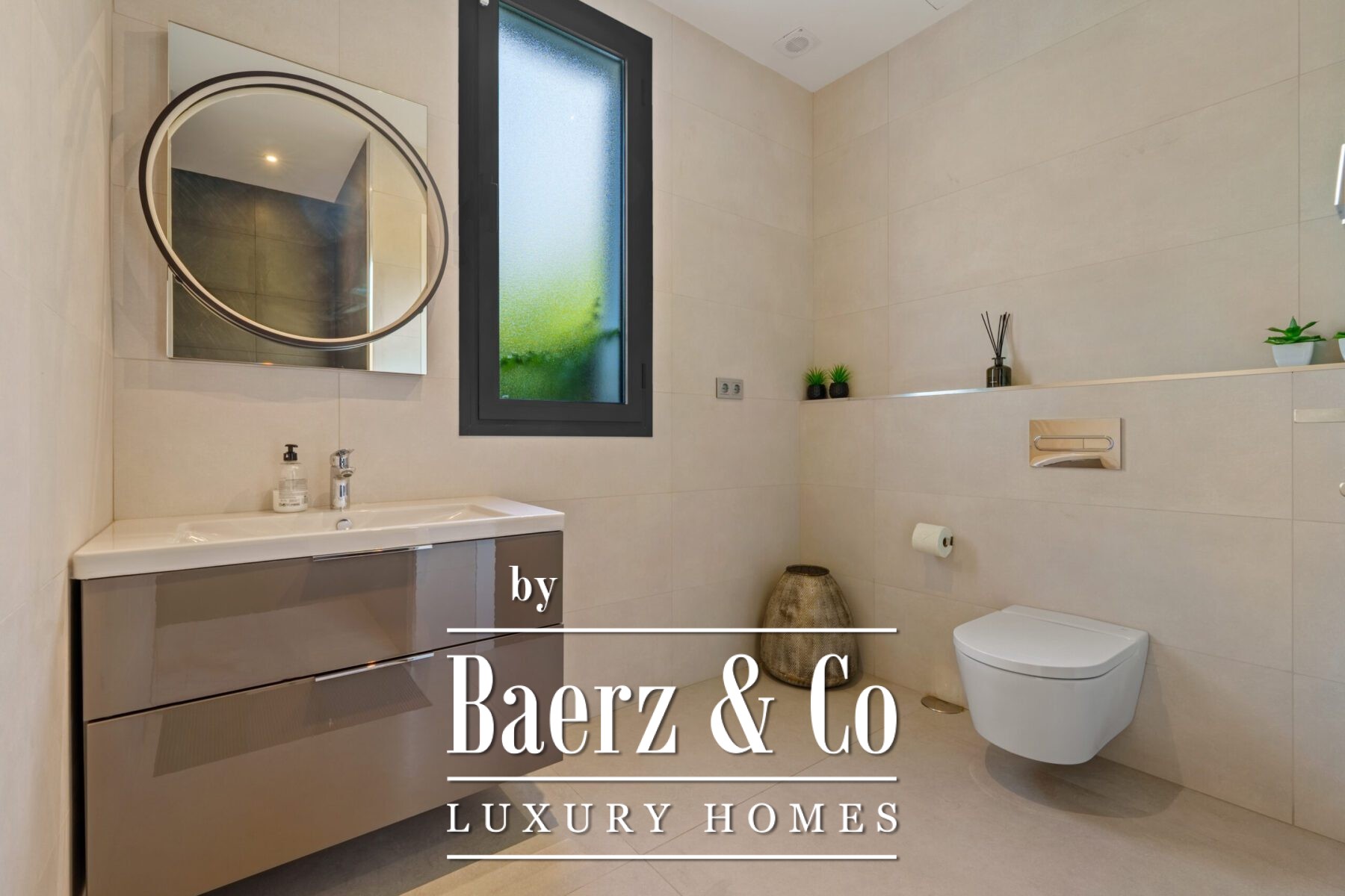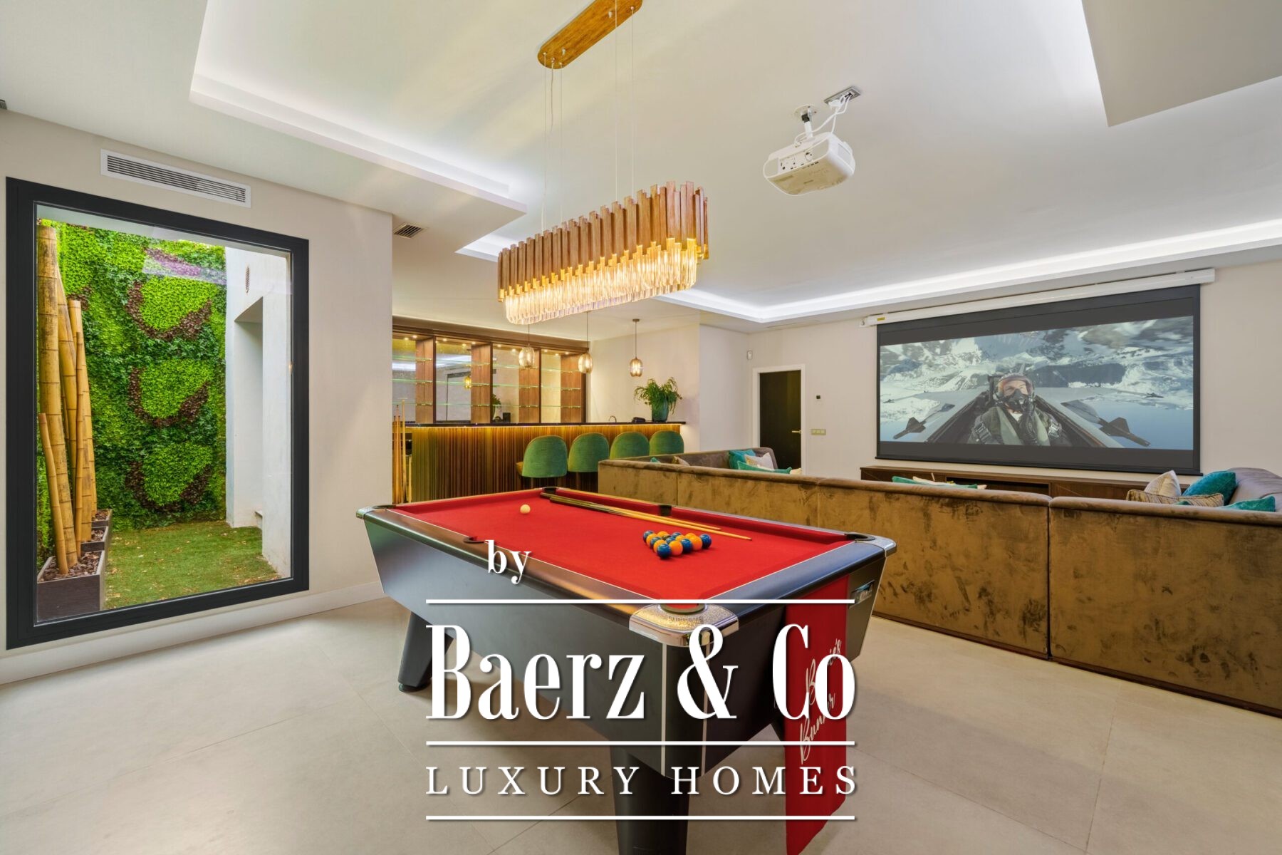 Voor ontspanning en gezelligheid is er een exclusieve bioscoopruimte met een bar, pooltafel en projectiescherm. Moderne voorzieningen zijn onder meer een luchtwarmtepomp, zonnepanelen met batterijopslag, een smart home-systeem en beveiligingsfuncties voor optimale gemoedsrust. Dankzij de ligging bereikt u direct lokale winkels, golfbanen, het strand en de zee van Marbella. Zo biedt deze villa een unieke combinatie van zuivere architectuur en dagelijks wooncomfort.