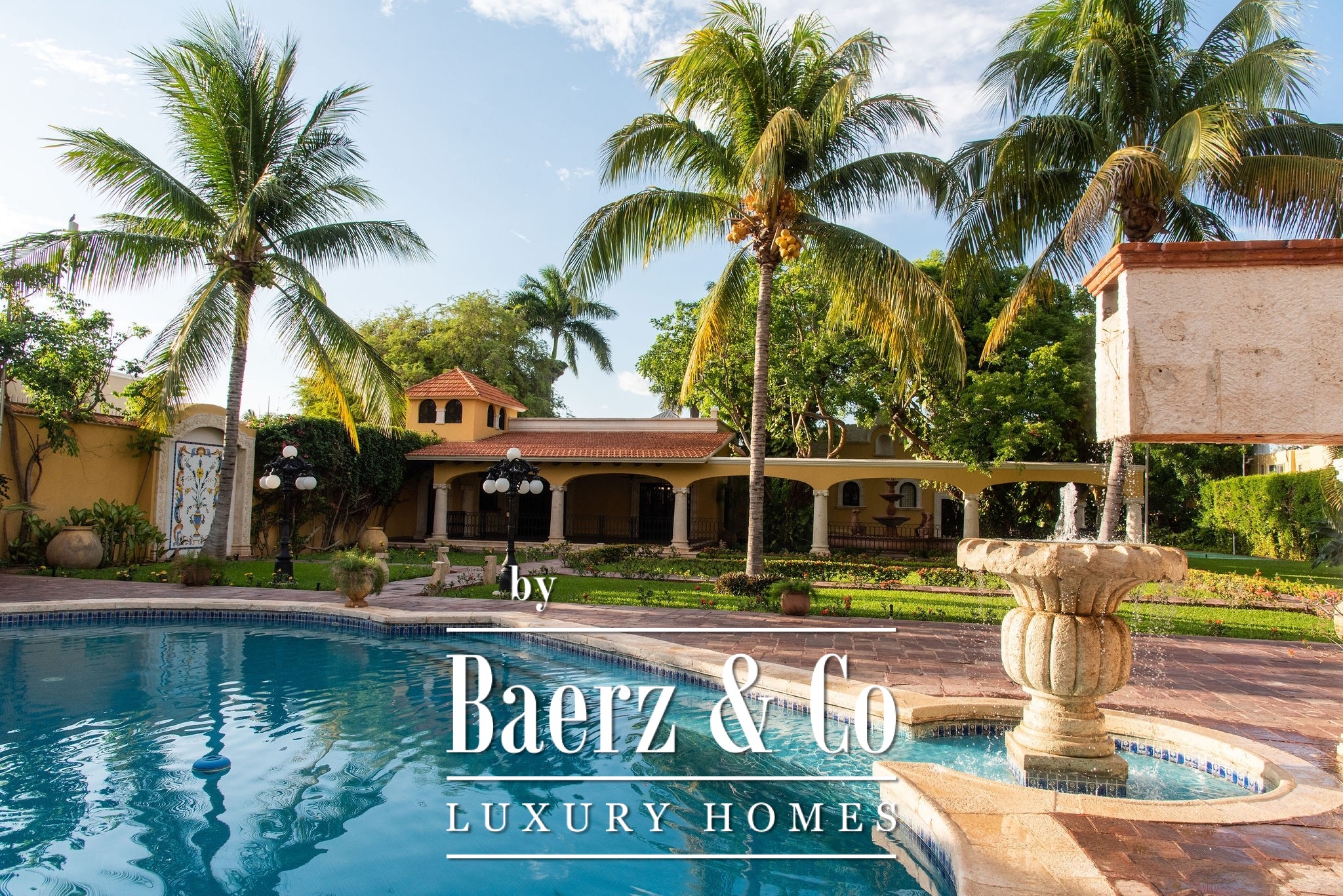 Somewhat discrete in one of the most traditional and sought-after areas known as Itzimna in the city of Merida, you will discover “Los Aluxes” Manor house. With its 4056 square meters of land and 1133 square meters of construction, this magical property has it all. Great spaces built with all the luxury for you to enjoy all year round. The house has in total 5 bedrooms with 5 bathrooms, all with unique design. At the entrance you will find a great façade that only invites to imagine the interior of the property. Spectacular spaces of living anteroom and dining room will greet you with the sensation of being in your very own palace. Floors made out of carrara marble, custom made wrought iron make a one of a kind piece with import stained glass that form part of all the main windows. All carpentry made out of fine hard wood in its beams. Hand cut stone columns with great design are laid out through all the residence, combined with exquisite rustic volcanic stone floors. It´s domes that were custom made and designed exclusively for the property make the interior even more beautiful. In the exterior you will find fascinating gardens and lush and exotic vegetation that surround this exclusive mansion, with an enormous pool at the end of the property that has it´s own terrace and bathrooms. To the side your own rustic chapel. “Los Aluxes” Manor makes for those who come near forget where they were headed to and feel a pleasant sensation of harmony and peace.