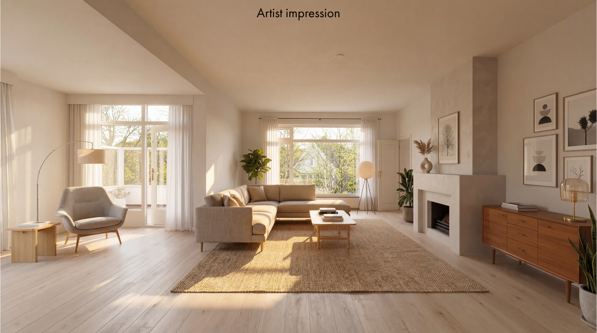 • Royale woonkamer met open haard