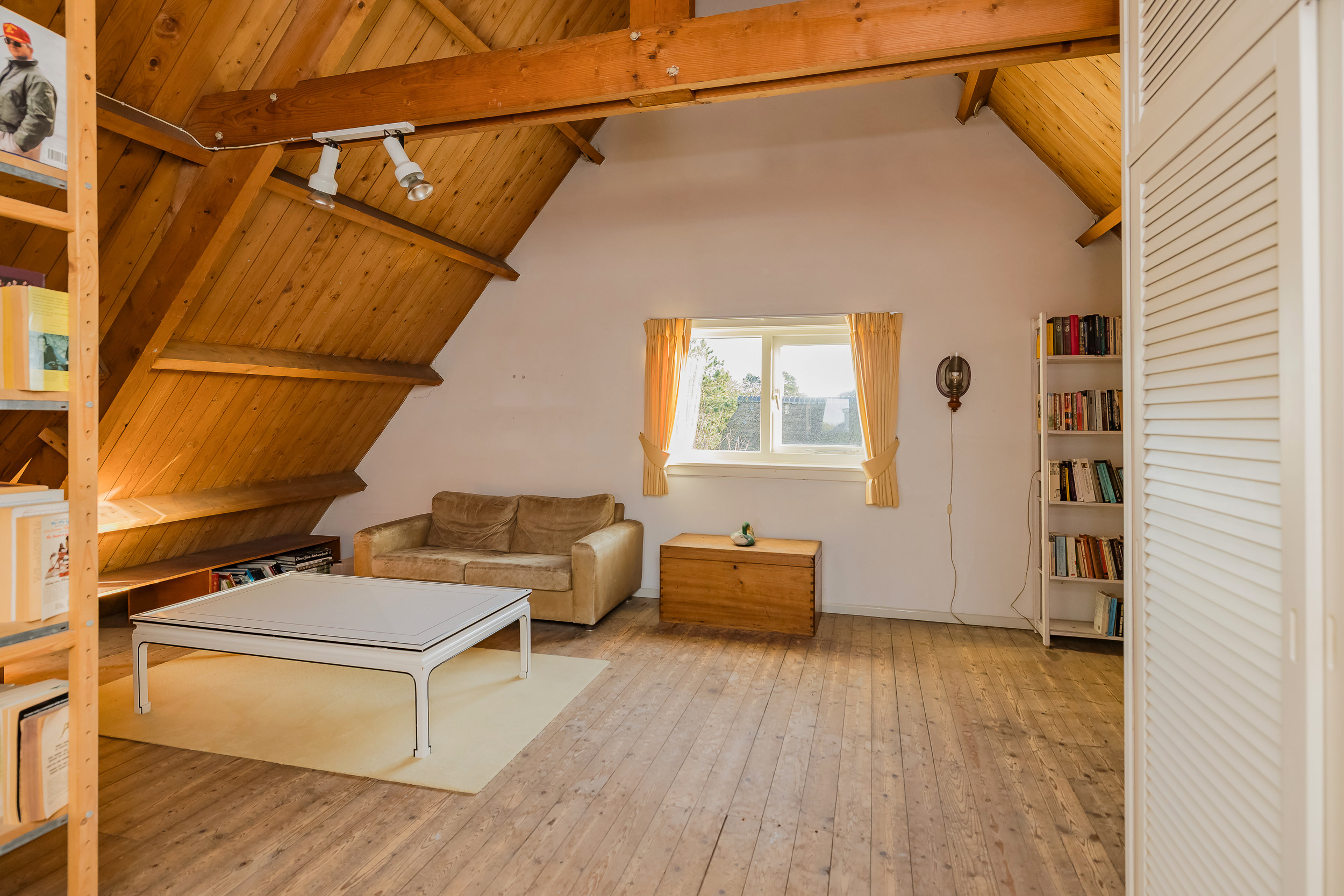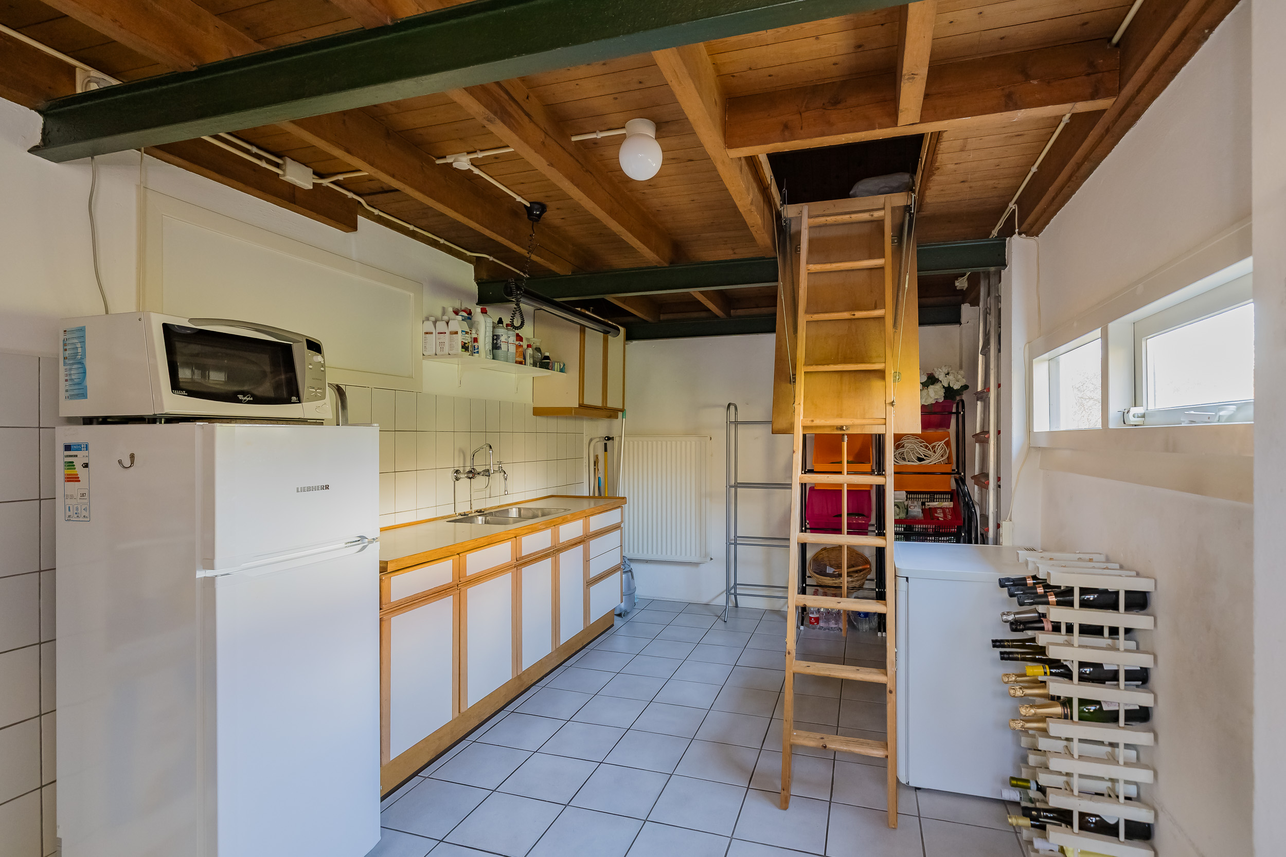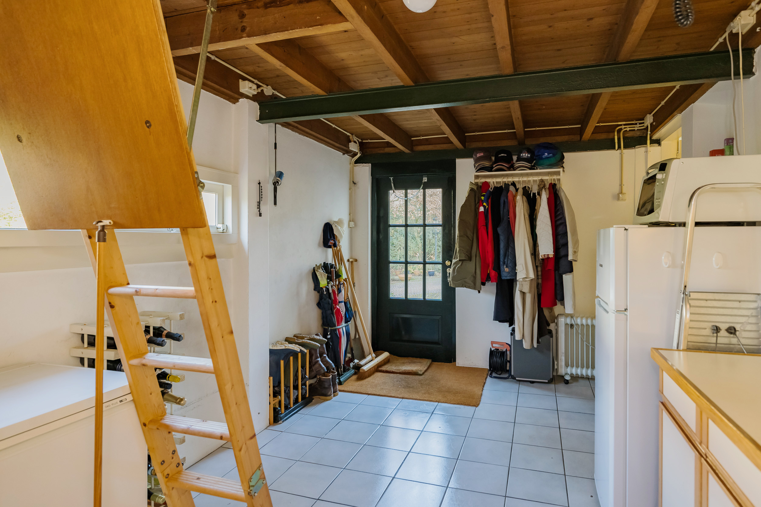 Verder vind je op deze verdieping een goed uitgeruste werkkamer voorzien van maatwerk kasten en een bijkeuken/bergruimte met vlizotrap naar de ruime vliering met stahoogte die extra bergruimte biedt boven de hele bijkeuken.