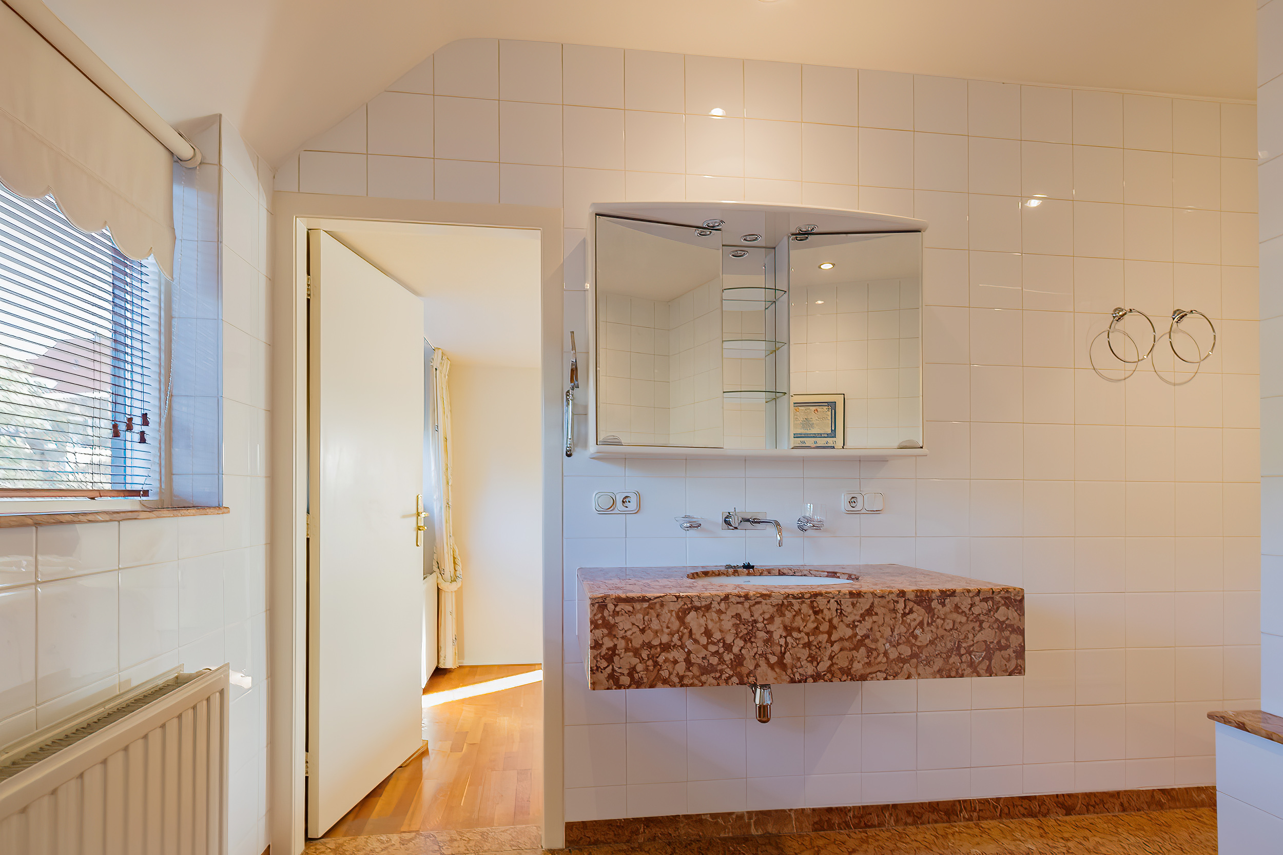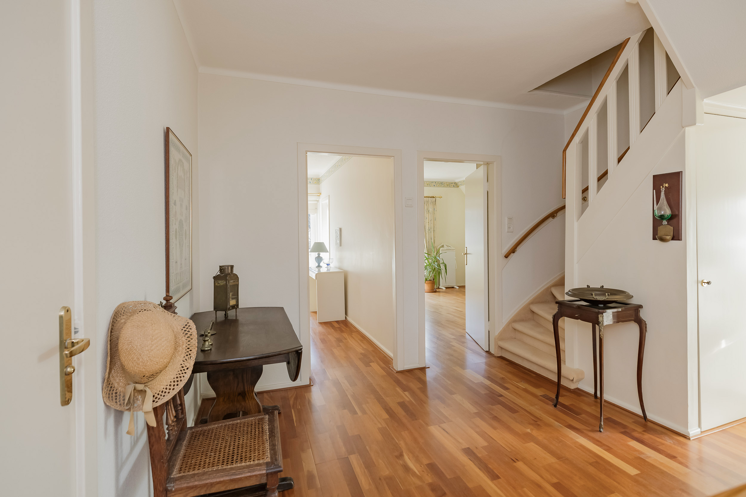 Entree met vestibule en ruime hal, van waaruit alle kamers toegankelijk zijn.