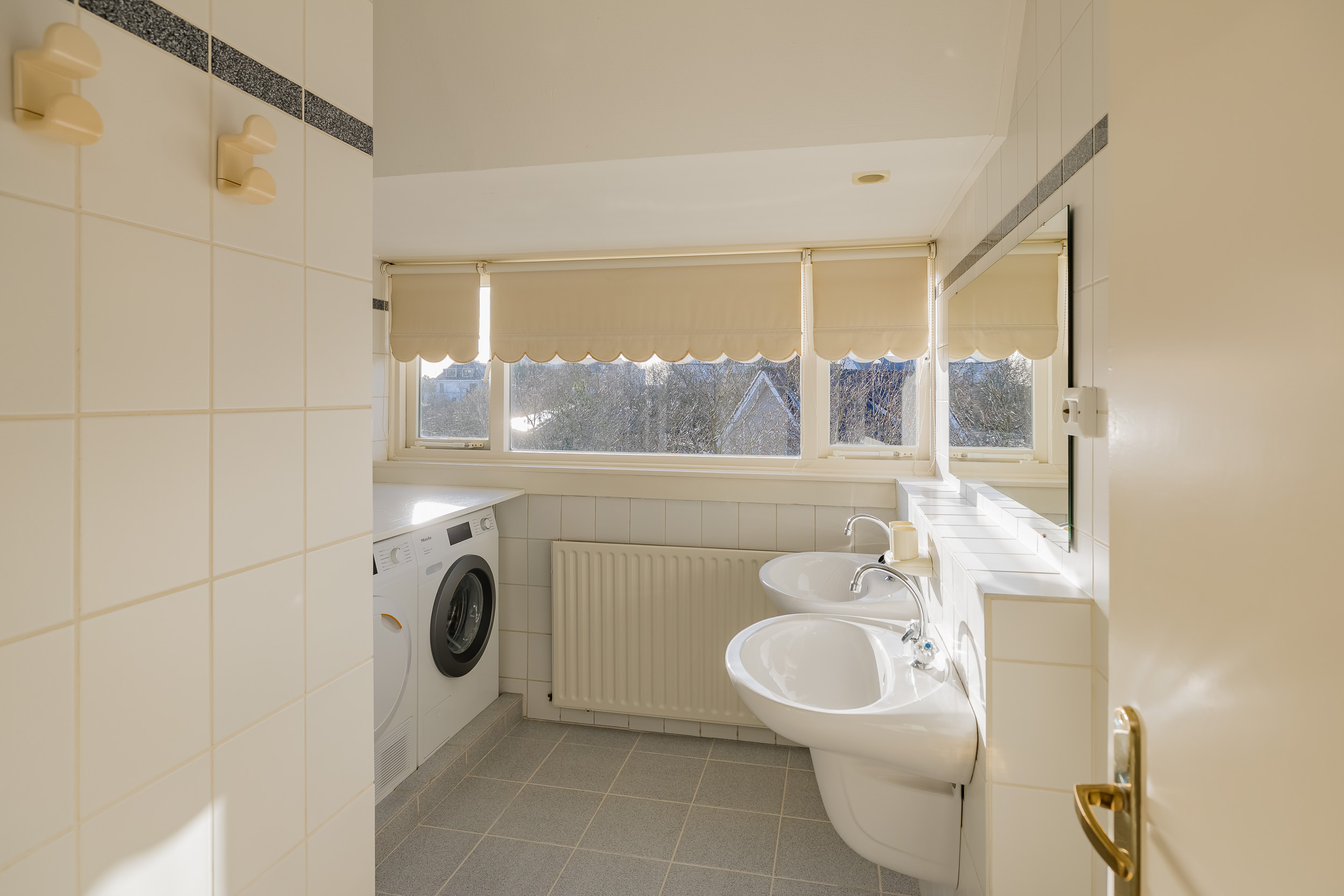 De vaste trap leidt naar een verrassend ruime verdieping met een grote overloop/multifunctionele ruimte en een vijfde slaapkamer met eigen wastafel en diepe kast. Ook vindt u hier een donkere kamer (DoKa).