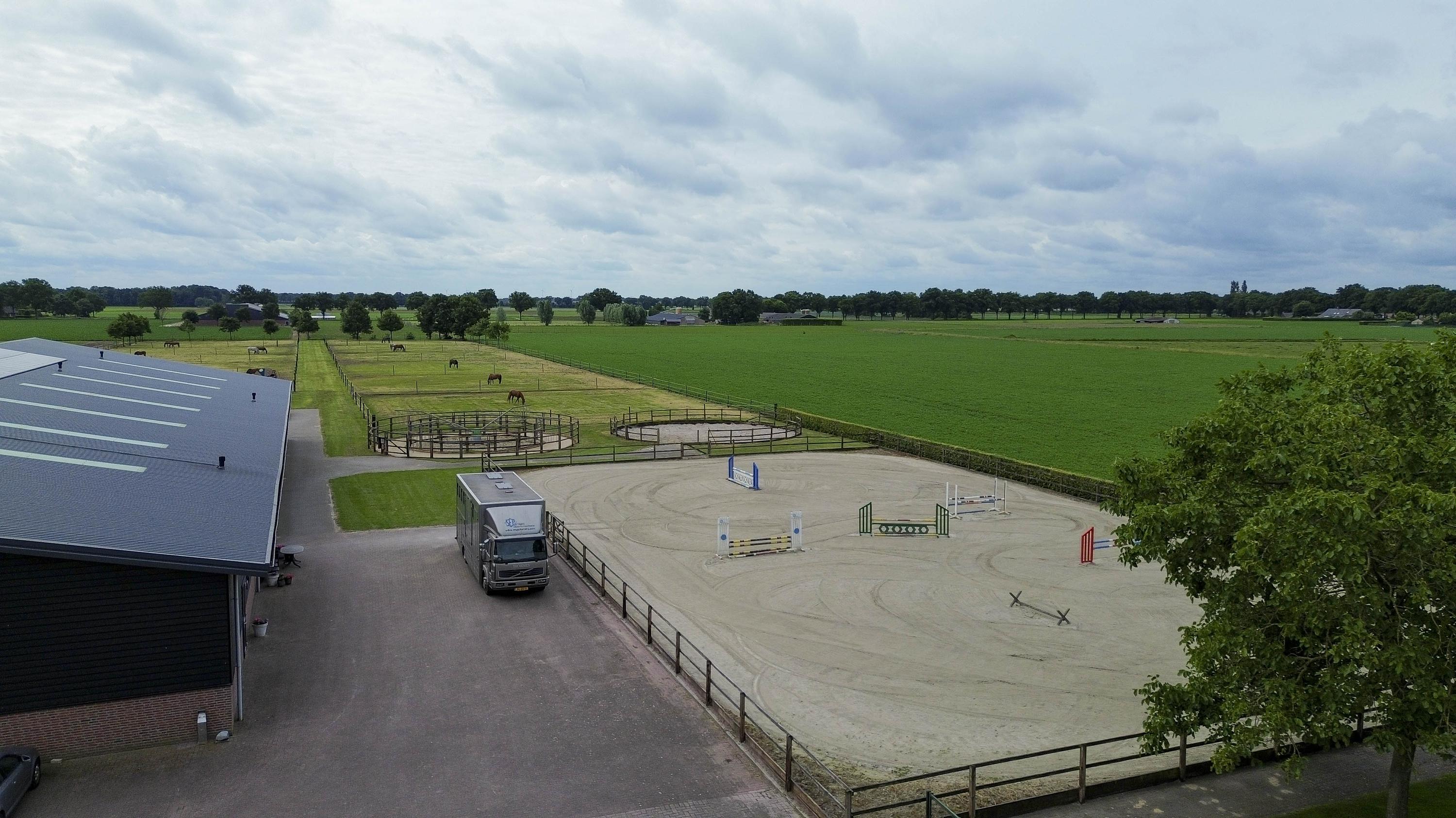 De accommodatie biedt volop mogelijkheden door de aanwezigheid van een volop ruimtebiedende vrijstaande woning (levensloopbestendig) met zeer royale vrijstaande garage, een rijhal met binnenpiste en ontvangstruimte en in totaal 26 boxen. Een buitenpiste, longeercirkel, stapmolen en weiland maken het plaatje compleet!