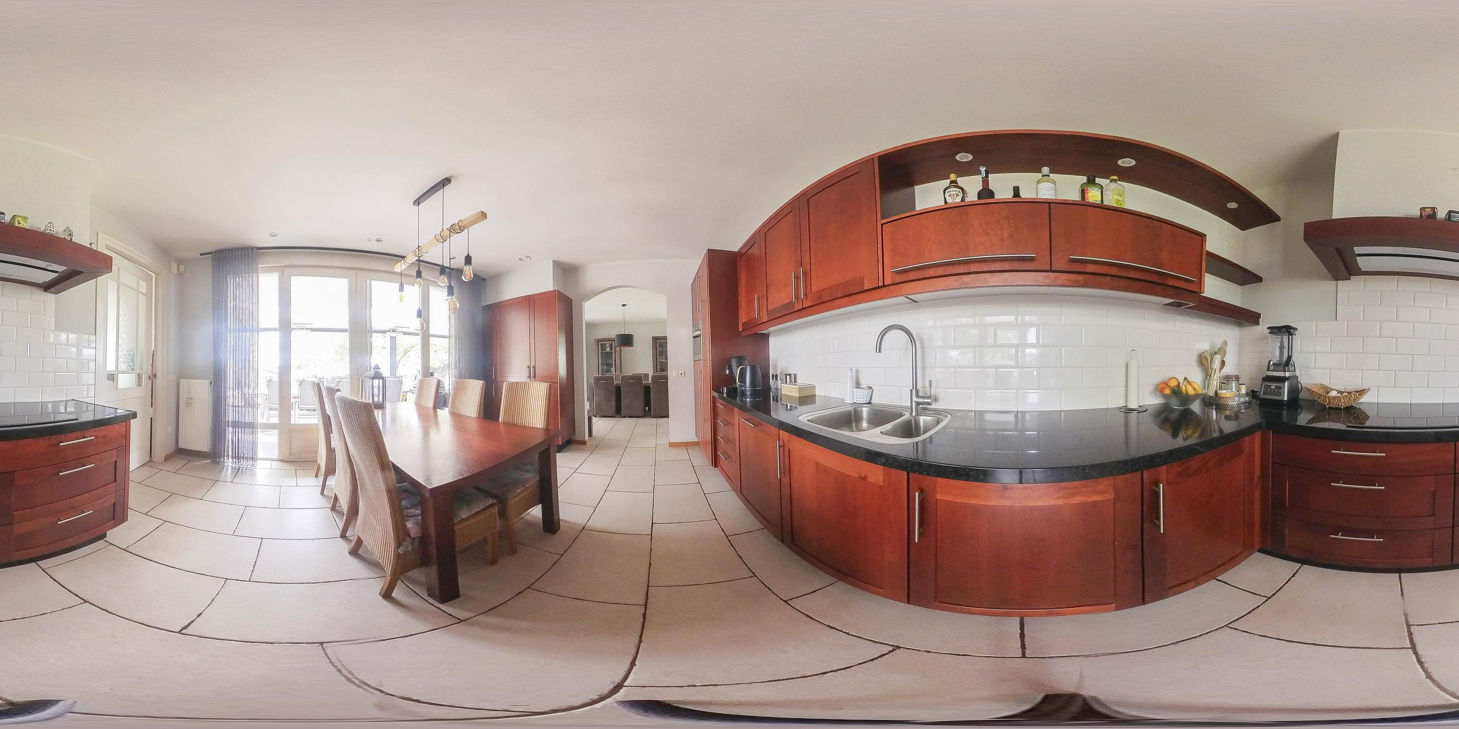 De woonkamer is afgewerkt met een tegelvloer, strakke stucwerk wanden en een stucwerk plafond met inbouwverlichting. Grote raampartijen tot aan de grond zorgen voor veel lichtinval en een ruimtelijk gevoel. De aanwezige gashaard voegt extra warmte en sfeer toe aan de ruimte. Daarnaast bieden openslaande deuren directe toegang tot het overdekte terras, waardoor binnen en buiten in elkaar overlopen. Vanuit de woonkamer is er toegang tot de keuken. De keuken is eveneens voorzien van een tegelvloer, stucwerk wanden en een stucwerk plafond. De keukeninrichting is in een hoekinrichting geplaatst en verder uitgerust met diverse inbouwapparatuur zoals een combimagnetron, vaatwasser, een spoelbak, inductiekookplaat en een koelkast. Diverse kasten zorgen voor voldoende opbergruimte. In de kast is een stortkoker voor de was gesitueerd. Ook hier zorgen openslaande deuren voor toegang tot het overdekte terras. De praktische bijkeuken is voorzien van een tegelvloer en een stucwerk plafond. De ruimte is geheel betegeld. De bijkeuken is uitgerust meteen keukenblok met kasten en een spoelbak. De aansluitingen voor de wasapparatuur zijn hier gesitueerd. De toiletruimte is eveneens geheel betegeld en verder voorzien van een zwevend toilet en een fonteintje. De woning beschikt over een slaapkamer met badkamer en-suite op de begane grond, hierdoor is de woning levensloopbestendig. De slaapkamer is afgewerkt met een laminaatvloer, spachtelputz wanden en een stucwerk plafond. Twee praktische inbouwkasten zorgen voor opbergruimte. Raampartijen zorgen voor natuurlijke lichtinval en ventilatie. De ruime badkamer en-suite is geheel betegeld en verder uitgerust met een ligbad, douche, wastafel met wastafelmeubel en een zwevend toilet.