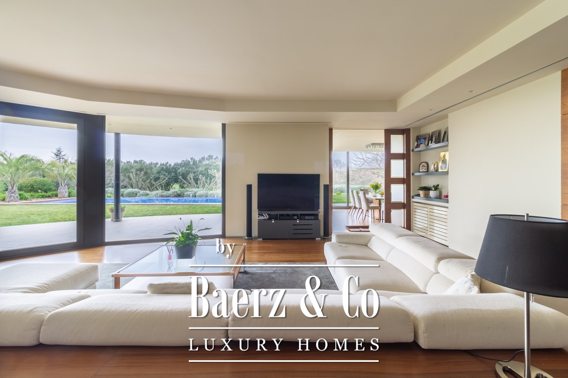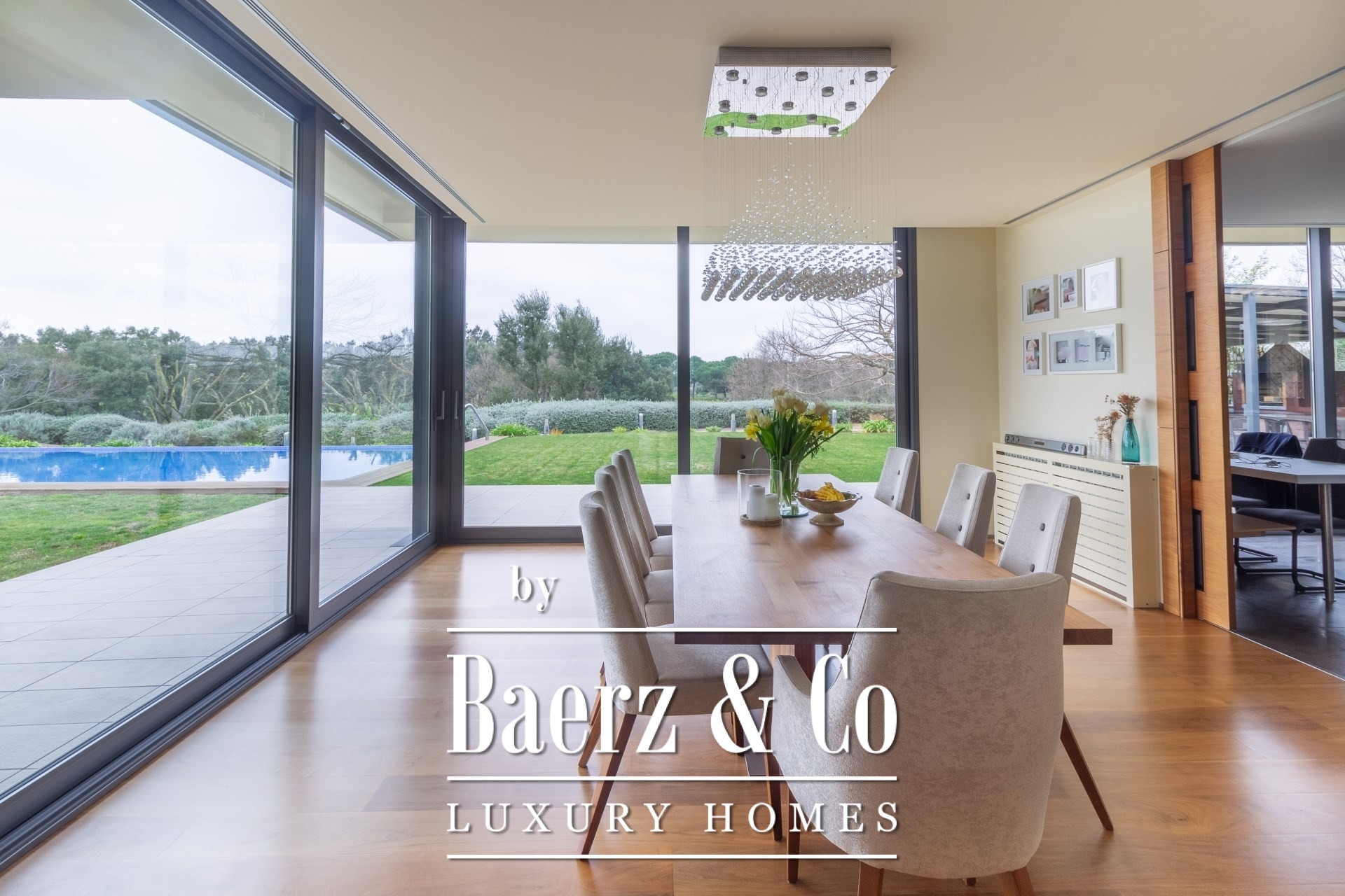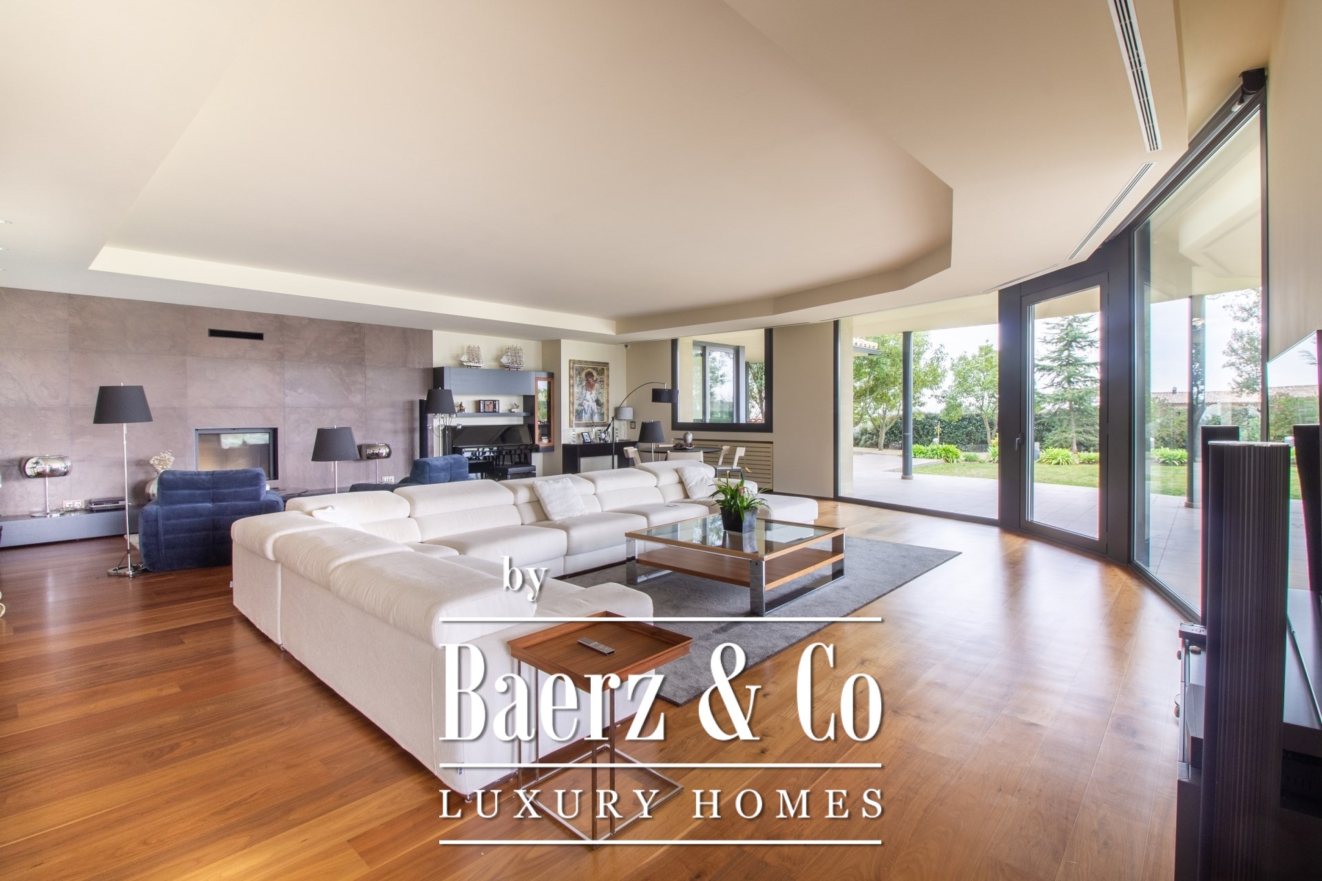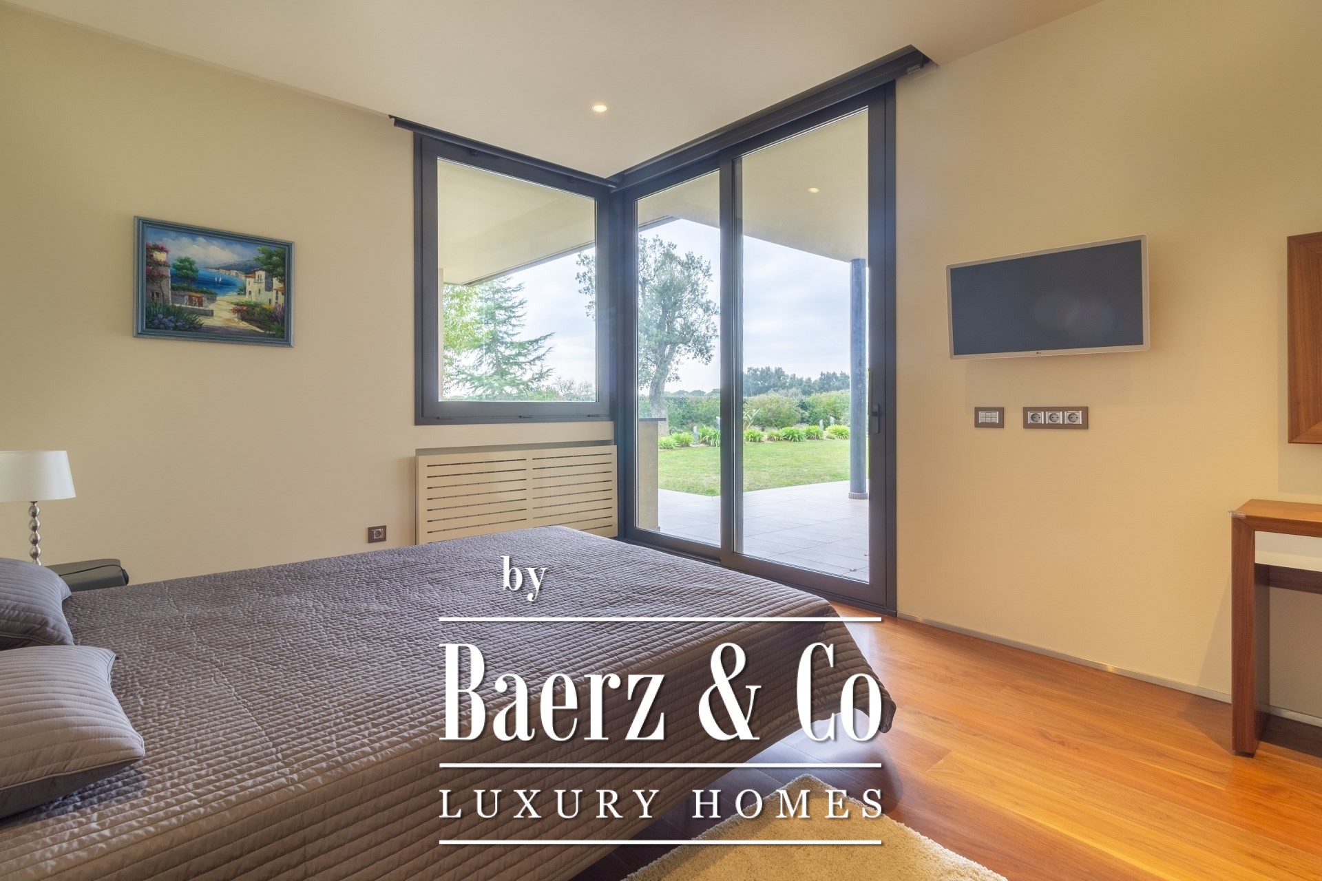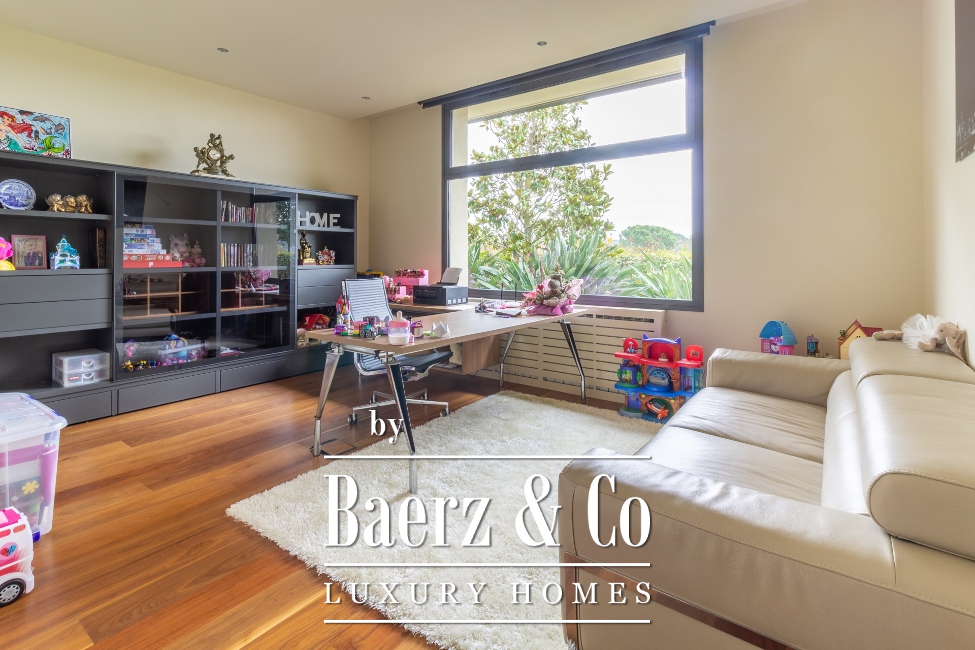 Buiten omringen volgroeide tuinen het zwembad met waterval, een barbecue met buitenkeuken en royale chill-out zones. Vloerverwarming, centrale airconditioning, elektrische ramen, geïntegreerd audiosysteem, volledige beveiliging en een lift benadrukken het comfort en de veiligheid van deze woning.