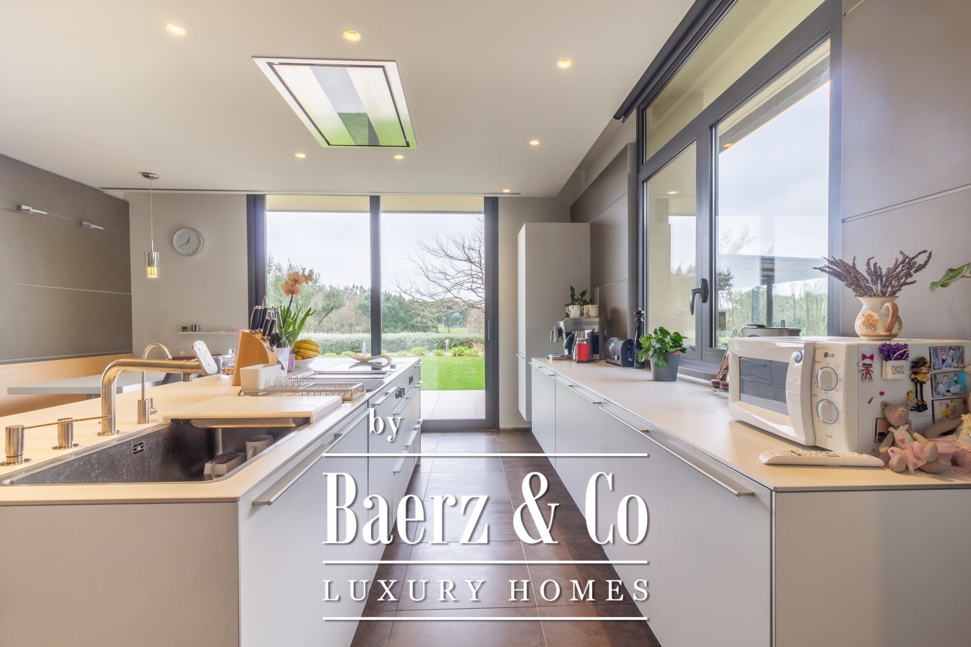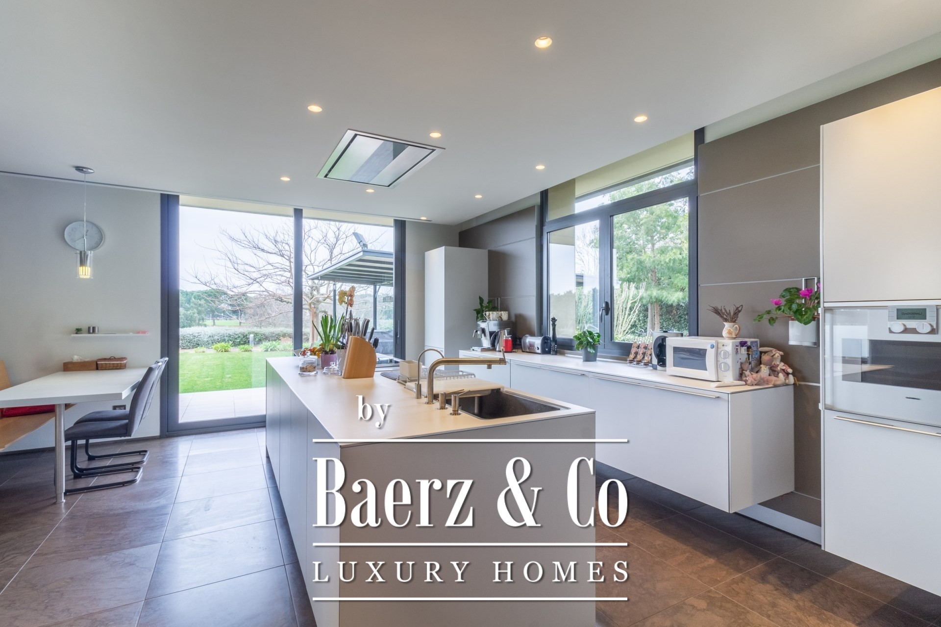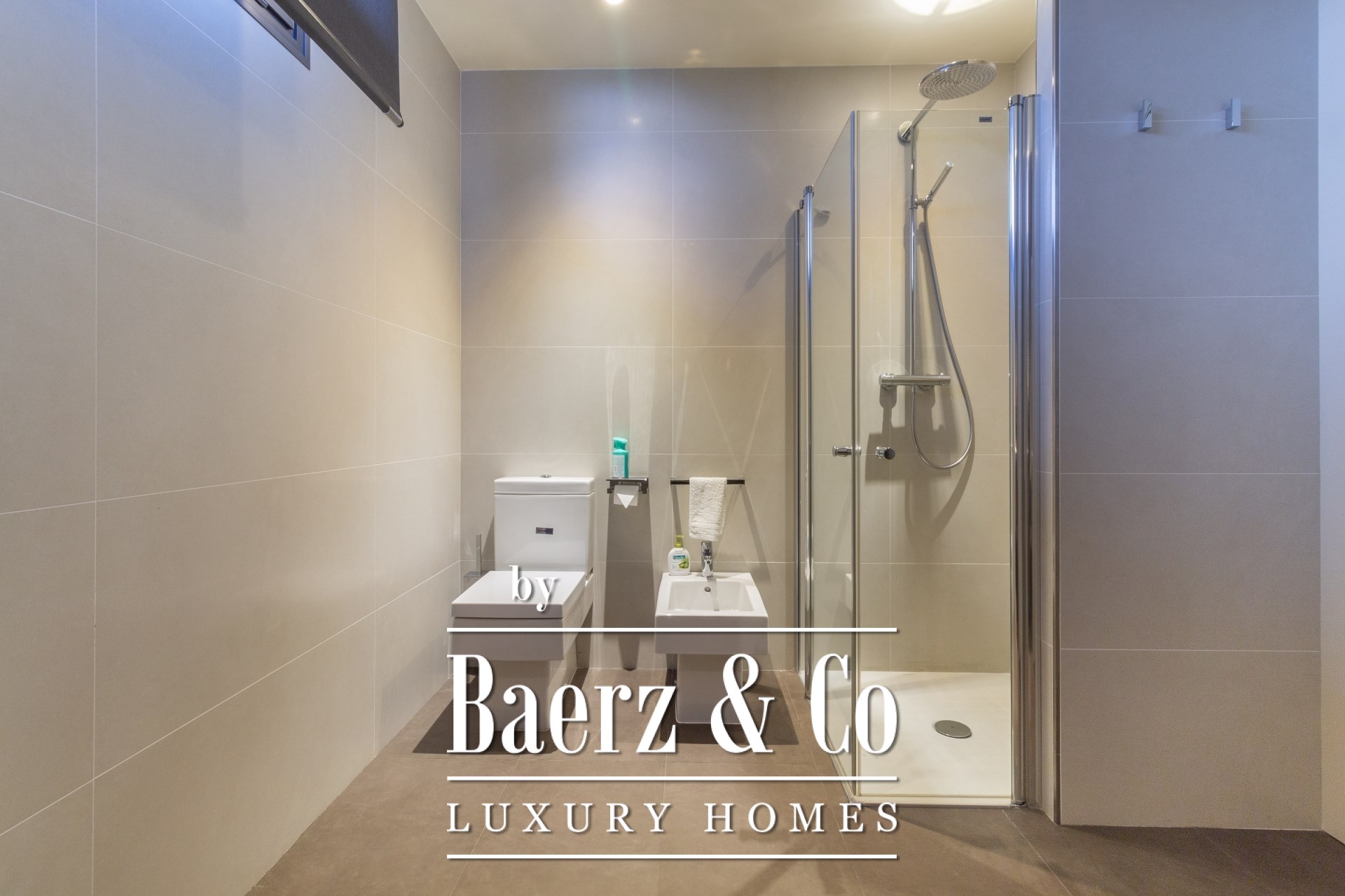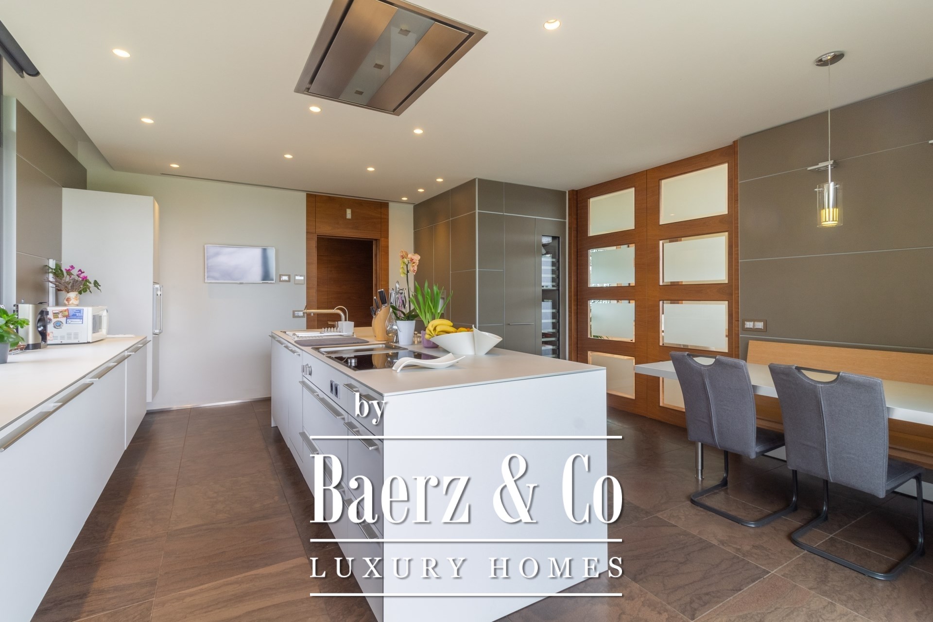 Buiten omringen volgroeide tuinen het zwembad met waterval, een barbecue met buitenkeuken en royale chill-out zones. Vloerverwarming, centrale airconditioning, elektrische ramen, geïntegreerd audiosysteem, volledige beveiliging en een lift benadrukken het comfort en de veiligheid van deze woning.