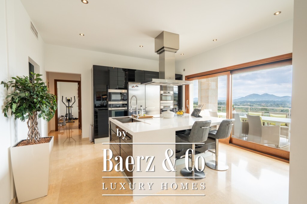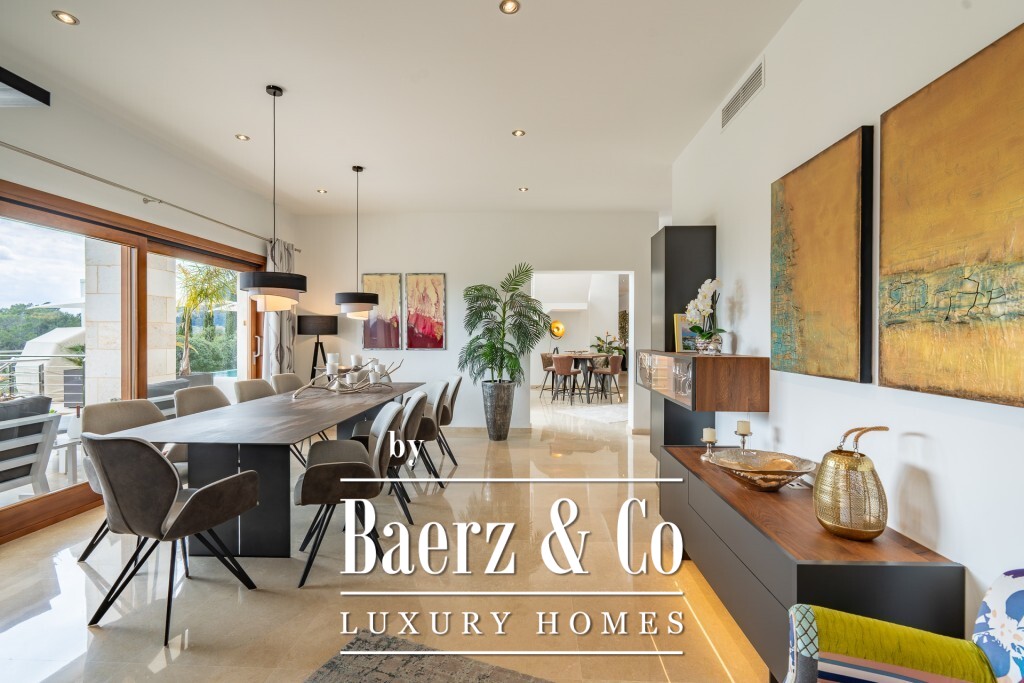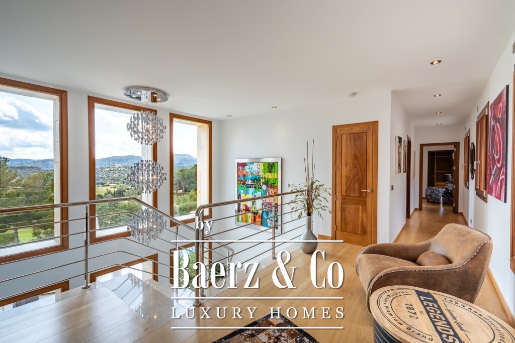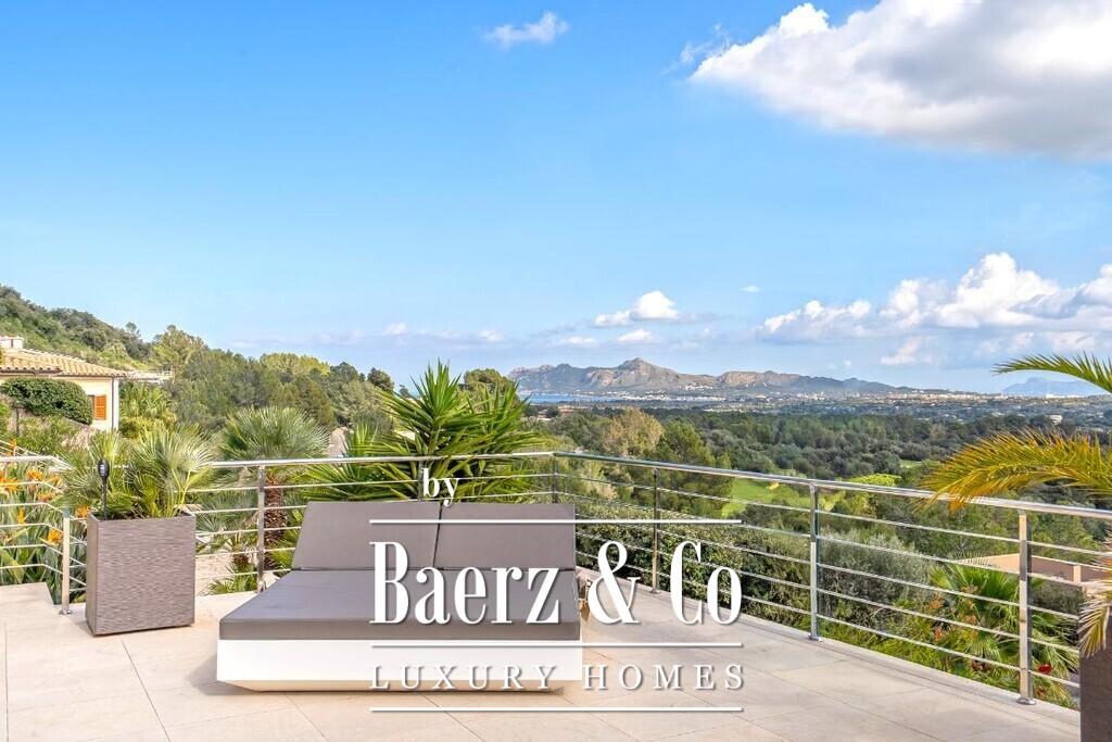 De mediterrane villa Pollença vormt een zeldzaam aanbod op een van de meest begeerde locaties van het eiland, omringd door slechts 20 exclusieve woningen en direct grenzend aan een 9-holes golfbaan. Dit perceel van 2.319 m² met 672 m² woonoppervlak ligt verhoogd in het landschap en biedt panoramisch uitzicht op zee en bergen, uitkijkend over de greens richting de baaien van Pollensa en Alcudia. Dankzij de zuidelijke oriëntatie baadt het interieur in daglicht, terwijl doordachte landscaping volledige privacy waarborgt voor het zwembad, de terrassen en de tuinen.