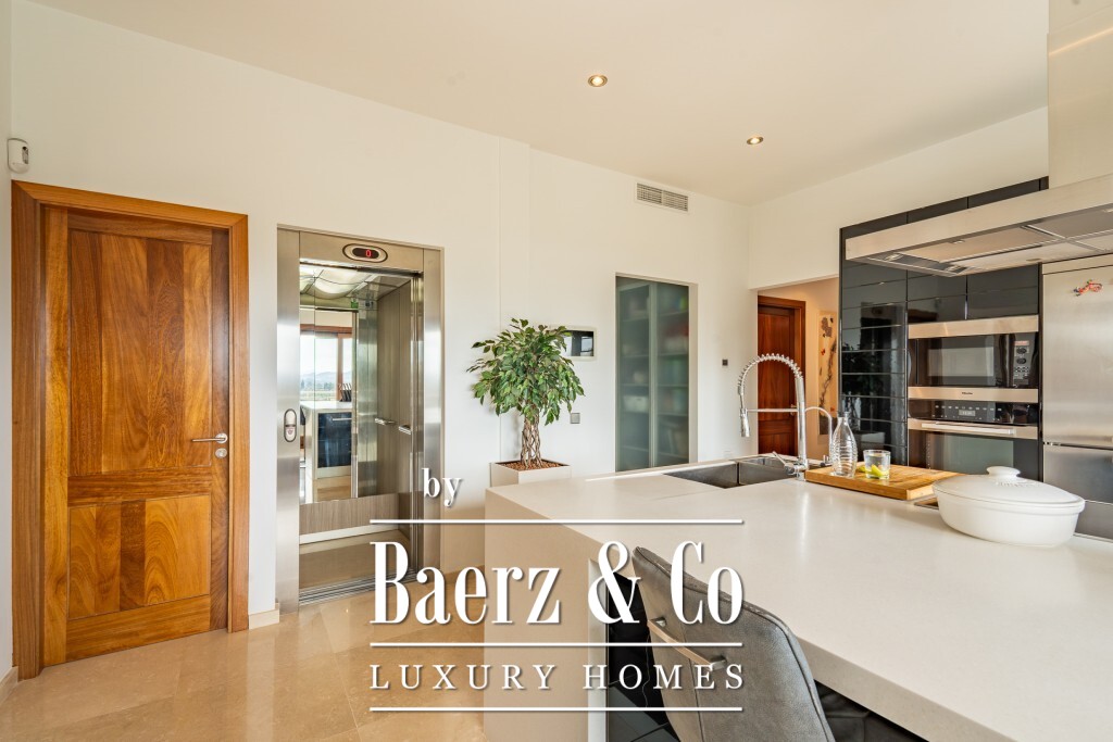 De villa, gebouwd in 2009, combineert verfijnde mediterrane architectuur met modern comfort. Vloerverwarming, volledige airconditioning en een KNX smart home-systeem tillen het dagelijks leven naar een hoger niveau. Zorgvuldig geselecteerde materialen—massief eikenhouten timmerwerk, natuursteen en houten vloeren in de slaapkamers—brengen warmte en karakter in de hele woning. Alle woonlagen zijn moeiteloos bereikbaar via de geïntegreerde lift. Het buitenleven wordt extra bijzonder door het verwarmde infinity zwembad en een grote jacuzzi, beide gepositioneerd voor een optimaal uitzicht over de baai van Pollensa.