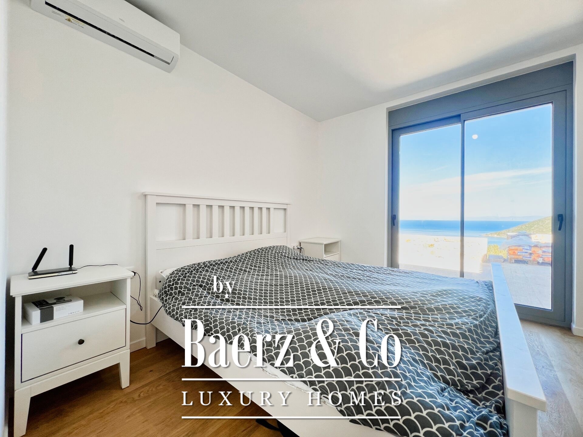 space. On the upper floor, which consists of 140 sq m of main spaces, one finds an ideal living room with kitchen, three bedrooms and two bathrooms. The courtyard is carefully landscaped and includes a 5x10 m swimming pool, as well as an elegant stone BBQ. The residence will be delivered complete, with an excellent selection of materials, offering sea views from every point. Access to the beach is easy and direct, while landscaping and tree plantings are planned in the surrounding area that will further highlight the natural beauty of the property.