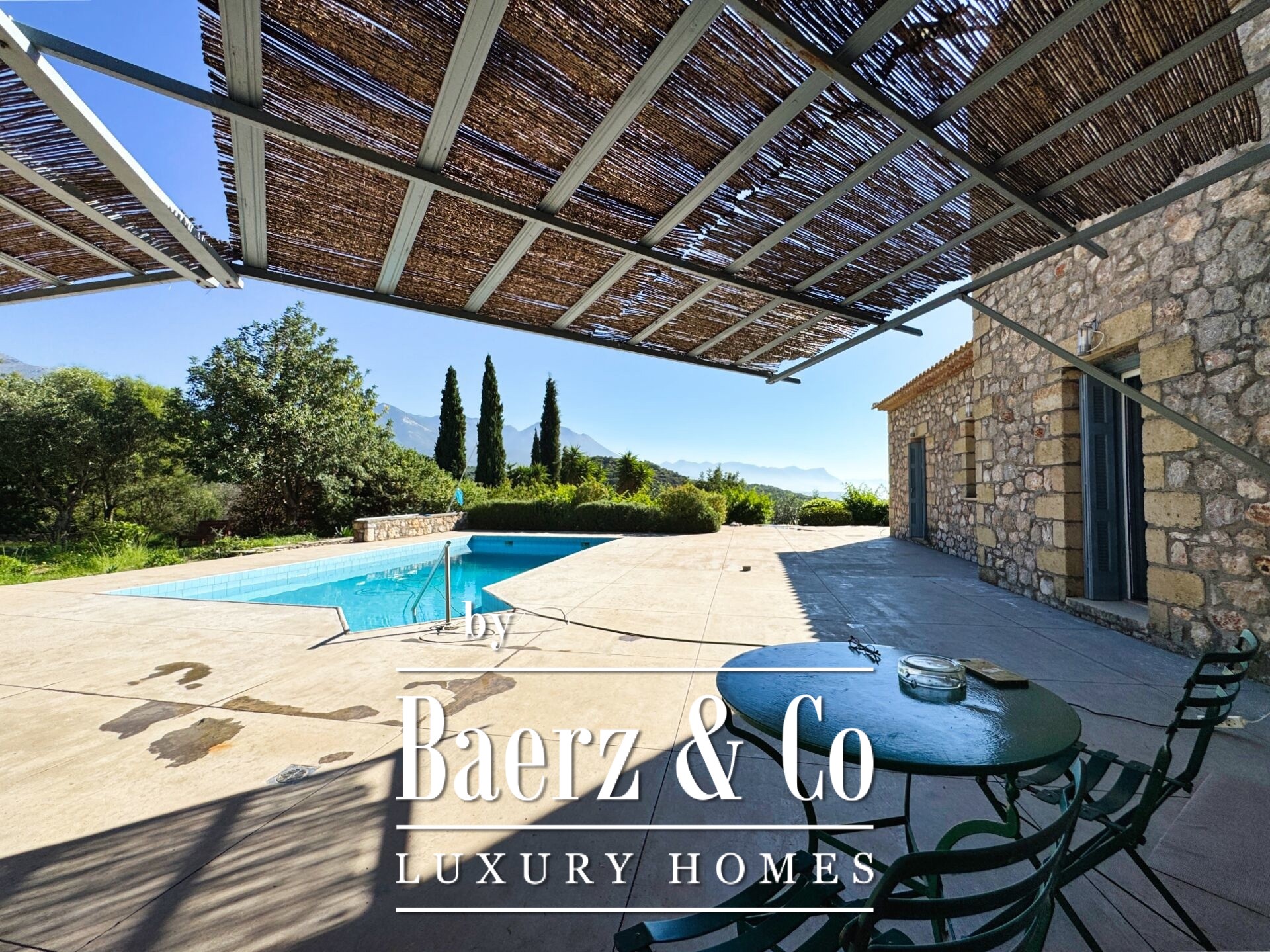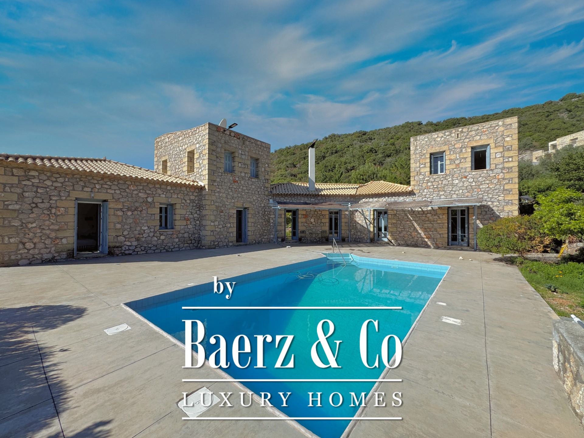 Op hetzelfde niveau bevindt zich een flexibele, open ruimte met eigen badkamer, geschikt als gastenverblijf, wellnessruimte of atelier. Buiten omlijst een privézwembad het panoramische uitzicht van bergen tot zee en nodigt uit tot rust en reflectie. Verwarmingssystemen—centraal, olie, zonneboiler en ketel—maken bewoning het hele jaar door mogelijk. Deze luxe villa te koop in Prosilio eert de traditie van Mani en biedt een huis van blijvende kwaliteit, privacy en een serene verbinding met land en zee.