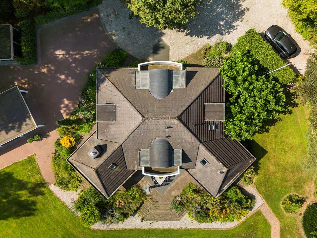 U komt binnen in een ruime, lichte hal die toegang geeft tot de woonkamer, een werkkamer, toiletruimte, meterkast (21 groepen + glasvezel) en de trapopgang. De werkkamer is ideaal en perfect bereikbaar om bijvoorbeeld klanten te ontvangen. De royale woonkamer heeft een bijzondere indeling, waardoor u gemakkelijk verschillende zithoeken kunt creëren. De grote ramen rondom bieden een prachtig uitzicht op de tuin en zorgen voor veel licht. Een sfeervolle gashaard voegt extra warmte toe. Via een dubbele schuifpui loopt u zo de zonnige achtertuin in. Aan de zonnige kant zorgen screens voor extra comfort. De ruime keuken met een eigen deur naar de tuin is ideaal voor het bereiden van maaltijden. Aangrenzend aan de keuken vindt u een bijkeuken met een aanrecht voorzien van spoelbak en aansluitingen voor de wasmachine en droger. De gehele benedenverdieping is voorzien van een natuurstenen vloer met vloerverwarming. In de woonkamer bevindt zich ook een airco.