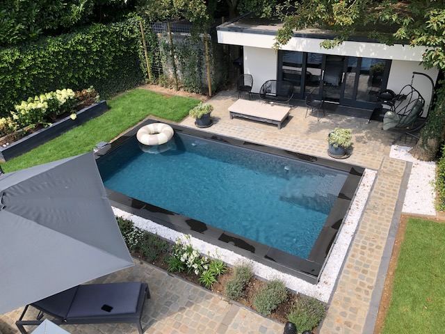De geheel omsloten, fraai aangelegde achtertuin met fraai zwembad, gazon, diverse borders en terrassen is gelegen op het westen. Het straatbeeld, gekenmerkt door de vele boompartijen is sfeervol en rustiek.