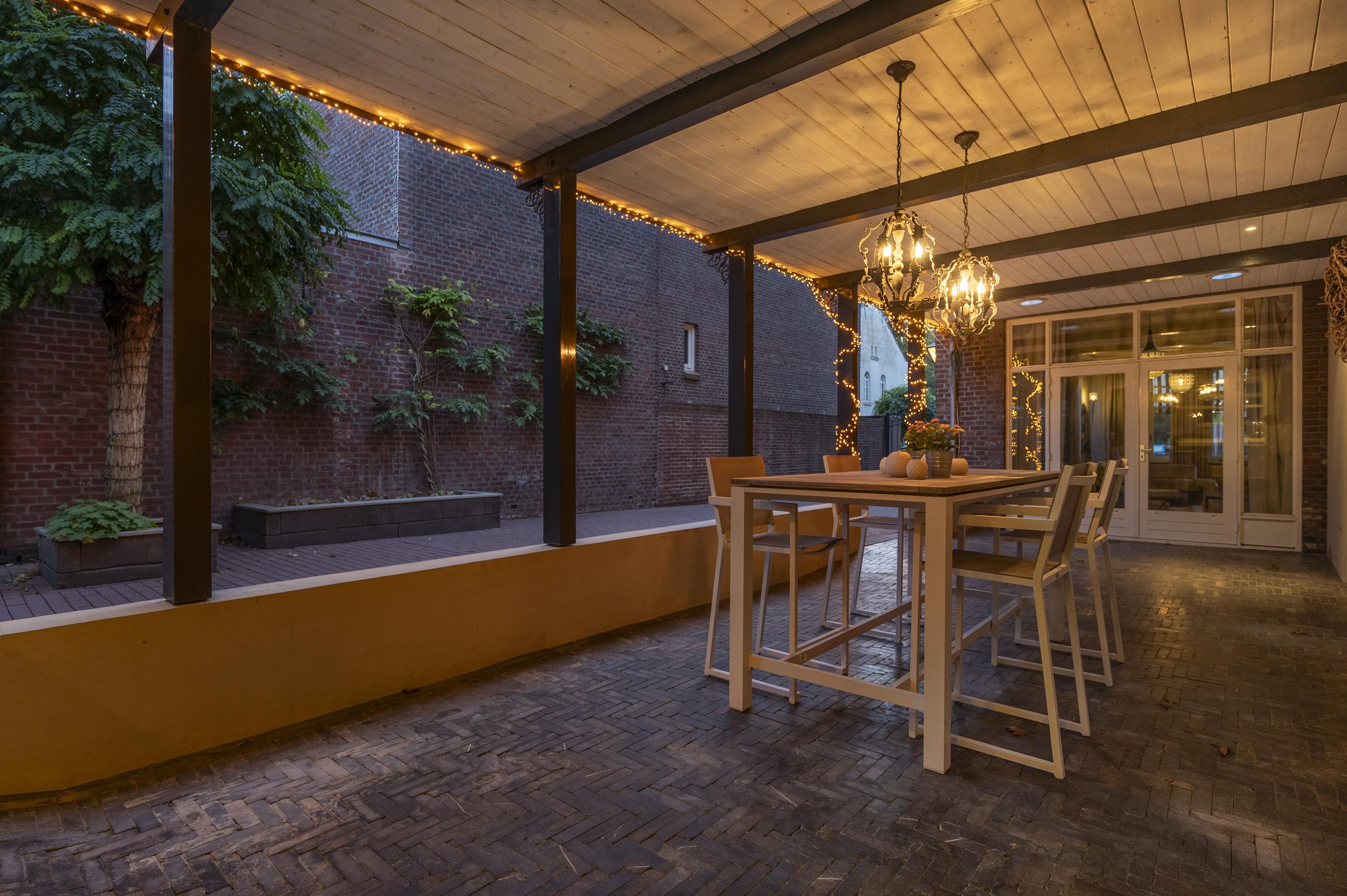 Bij binnenkomst wordt u direct omarmd door de warme sfeer en verfijnde afwerking. De imposante woonkamer van bijna tien meter lengte vormt het hart van het huis. Hier ligt een prachtige Versailles-parketvloer, die in combinatie met de design gashaard en de hoge raampartijen zorgt voor een ambiance van exclusieve rust. Via de openslaande tuindeuren loopt de ruimte naadloos over in het overkapte terras en de stijlvolle stadstuin – een privé-oase midden in de stad.