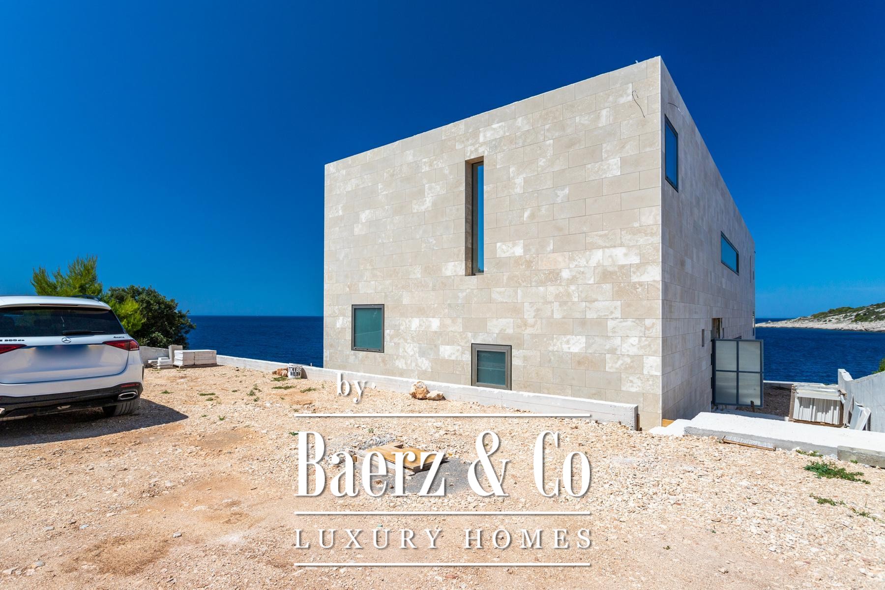 Unique ultramodern villa first row to the sea in the vicinity of Raznja!Outstanding contemporary exterior and interior design! The position right next to the sea, at the end of the construction zone, borders the green belt of the forest.The total area is 540 m2. The yard is 810 m2 in size.The villa consists of three floors.Floor -1: tavern with kitchen, fitness/gym with bathroom and potentially sauna, entrance to the 250 m2 swimming pool. with a pool of 75 m2.Floor 0: entrance hall, exit to the staircase, guest toilet, large living room with kitchen, bar, dining room, living room and terrace that opens to the sea.Floor +1: hallway, bedroom with bathroom, walk-in wardrobe and terrace with sea view, three more bedrooms