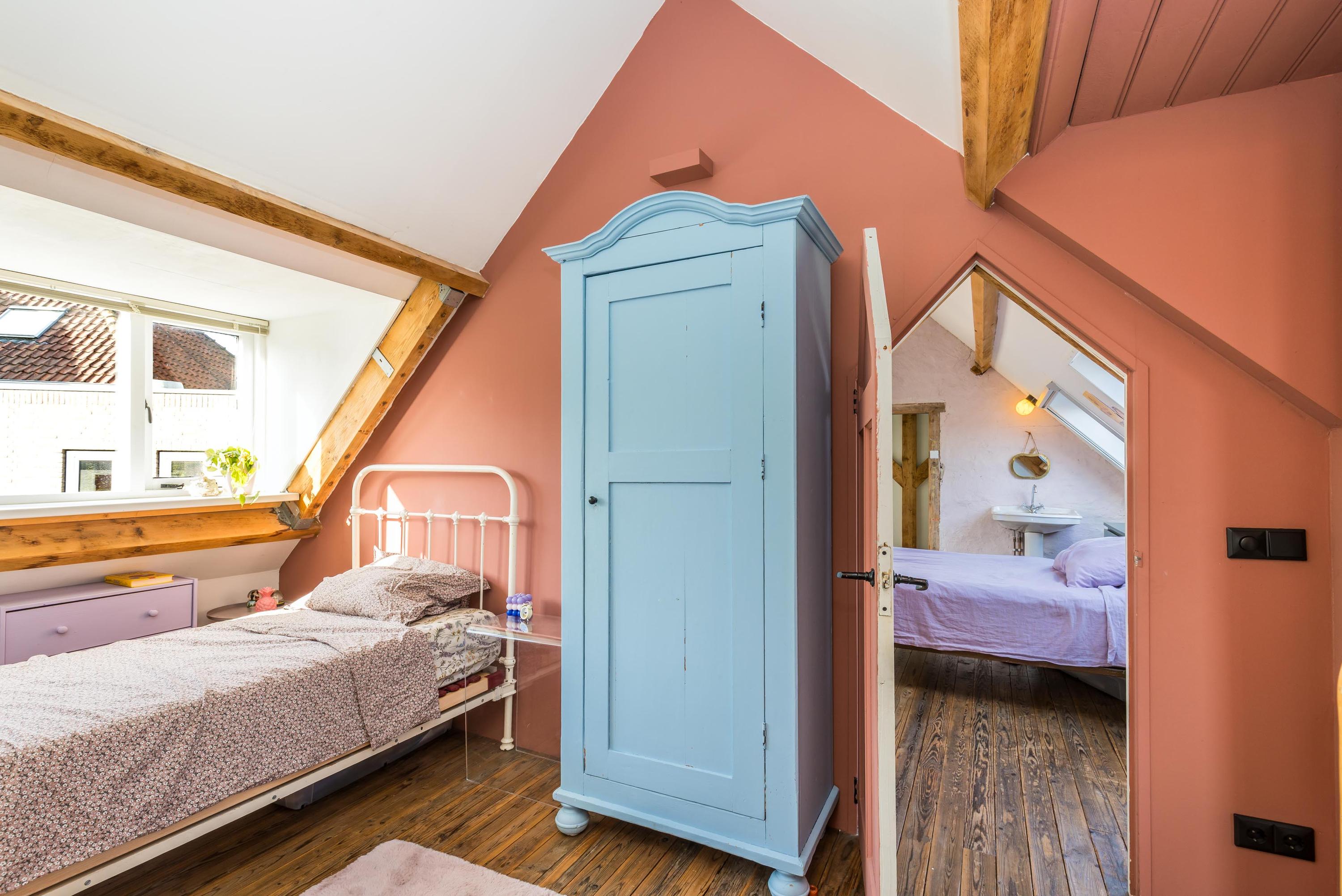 Op de eerste verdieping bevindt zich een royale slaapkamer met grote kasten, een apart toilet en een comfortabele badkamer met ligbad en dubbele douche.