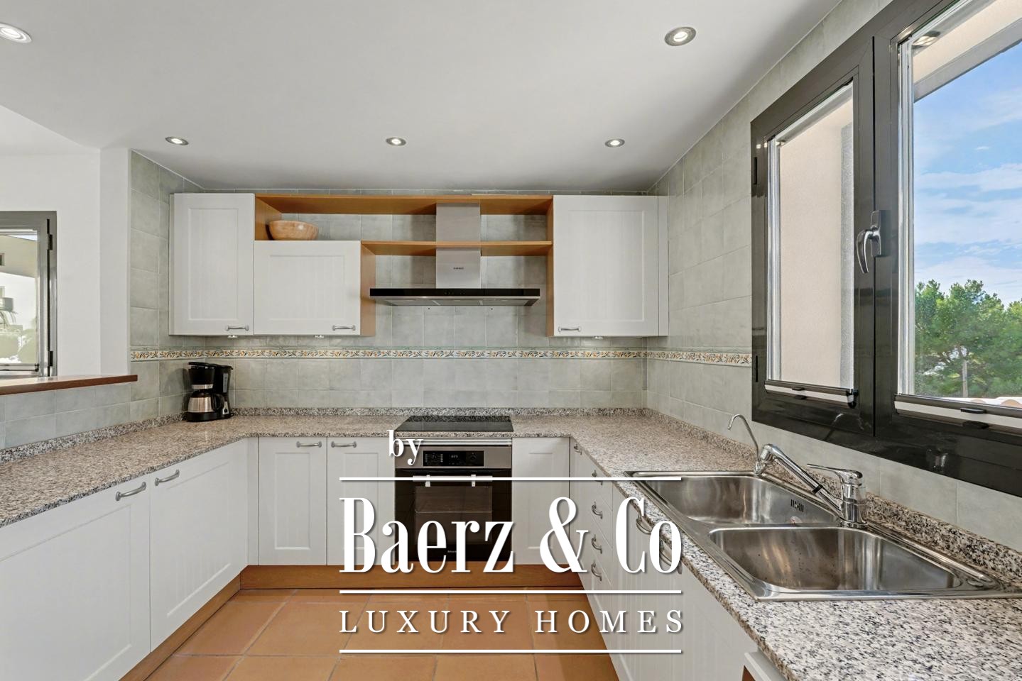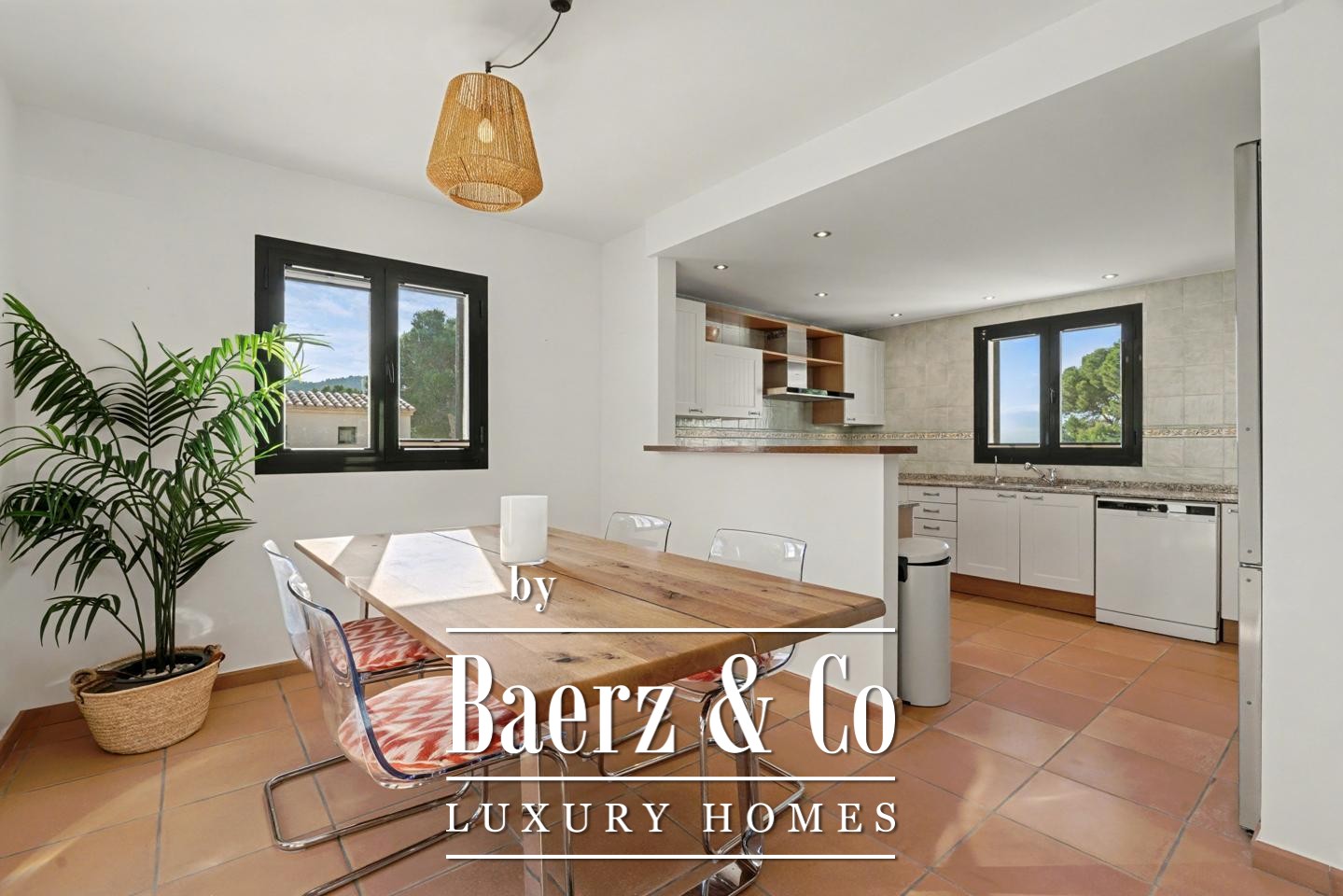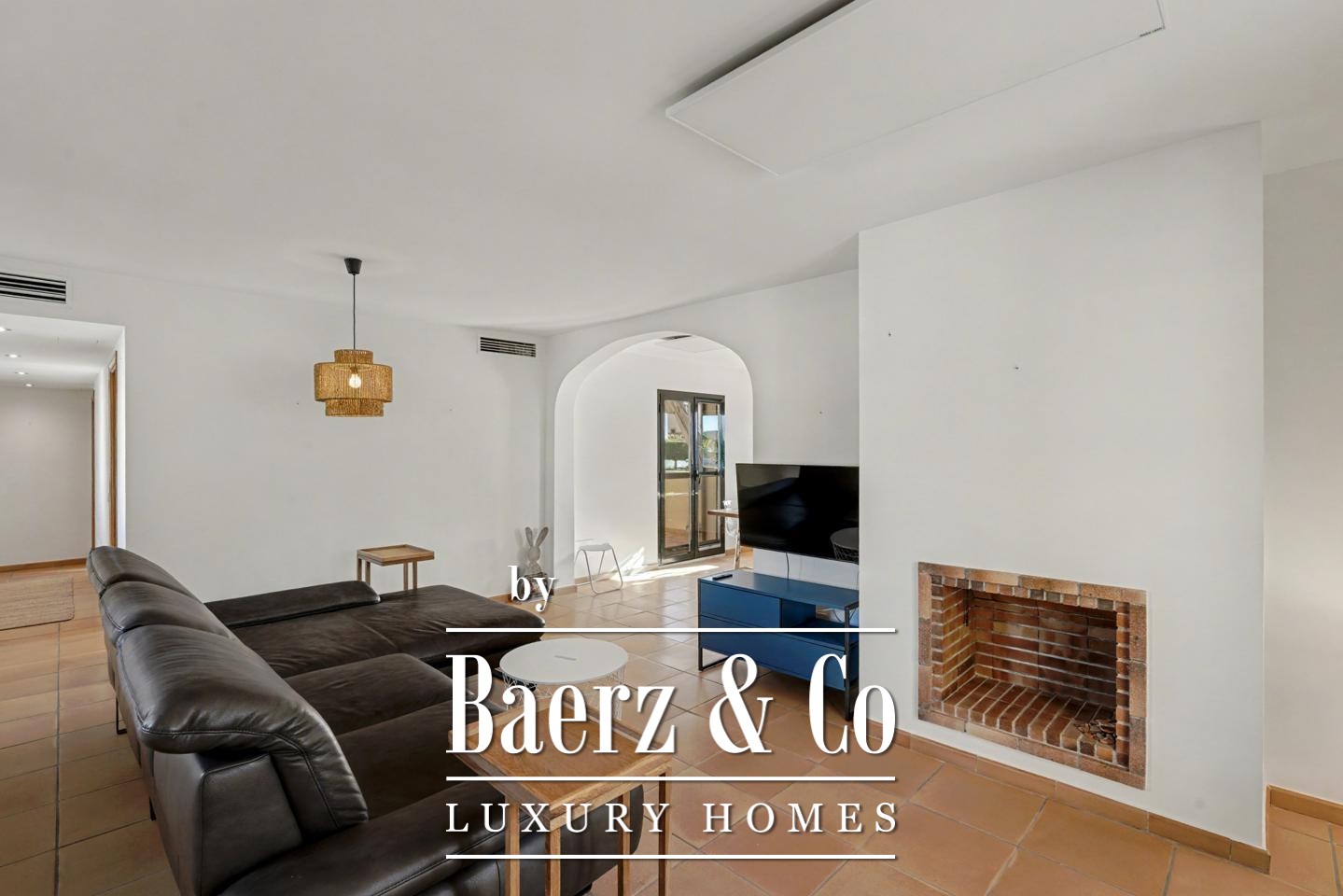 Een royale entree leidt naar verfijnde, lichte interieurs. De woonkamer met open haard geeft toegang tot een terras waar de zee altijd dichtbij is. De open keuken en eetruimte komen uit op een tweede terras voor gezellige diners in de buitenlucht; een buitentrap verbindt deze ruimte met de gezamenlijke mediterrane tuinen en het zwembad.