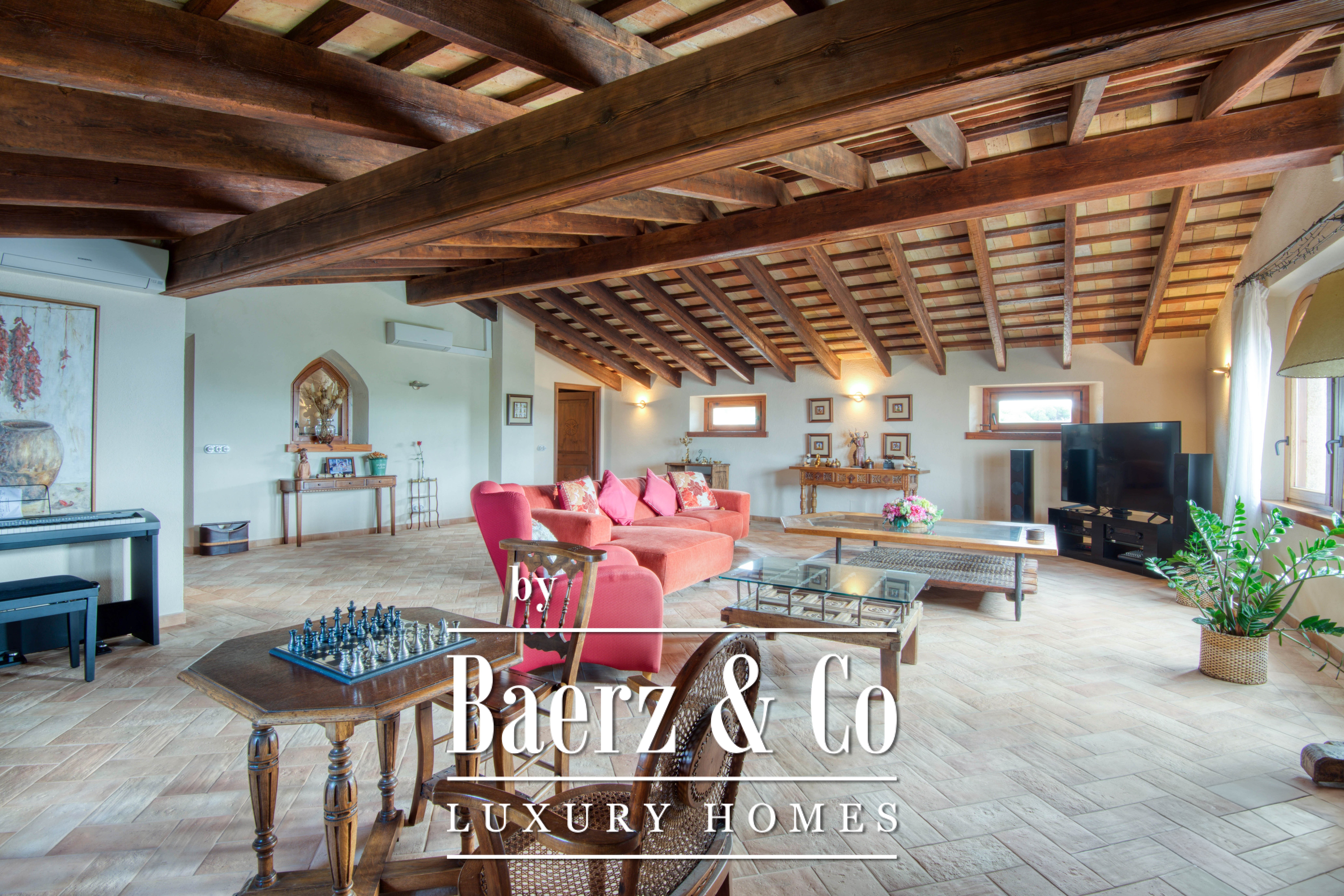 Binnen zorgen zes slaapkamers en vier badkamers voor ingetogen luxe voor familie en gasten. De aparte keuken heeft directe toegang tot de leefruimtes, terwijl een ruime en lichte woonkamer doorloopt naar de terrassen, waar zonsopkomsten en zonsondergangen zich aftekenen boven de kustlijn. Buiten nodigen de privé tuin en het zwembad uit tot ongedwongen zomerdagen, aangevuld met een barbecue, open haard en royale loungegedeelten. Het comfort wordt verder versterkt door verwarming, airconditioning, een afgesloten garage en ruime parkeergelegenheid op eigen terrein.