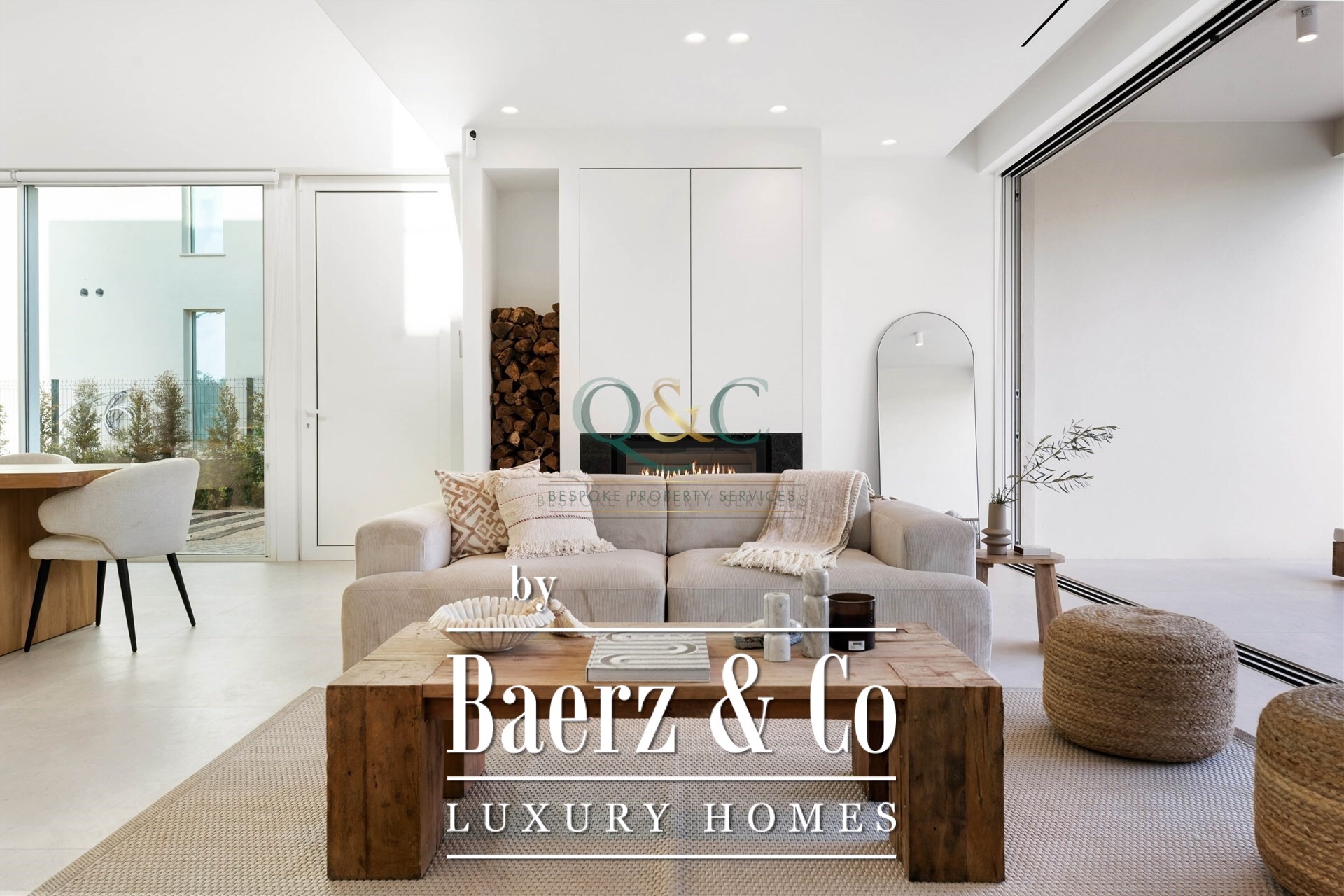De belangrijkste leefruimtes geven direct toegang tot zonneterrassen, een privé tuin en een zwembad dat omringd is door speciale buiten-eet- en barbecueplekken. Op het dakterras geniet u van weidse zeezichten en een comfortabele zitruimte rondom een vuurplaats, ideaal om in alle rust van de Algarve-zonsondergang te genieten. Het souterrain biedt een royale kelder en een afgesloten garage, met flexibele mogelijkheden voor gebruik als ontspanningsruimte, fitnessruimte, thuisbioscoop of extra accommodatie.