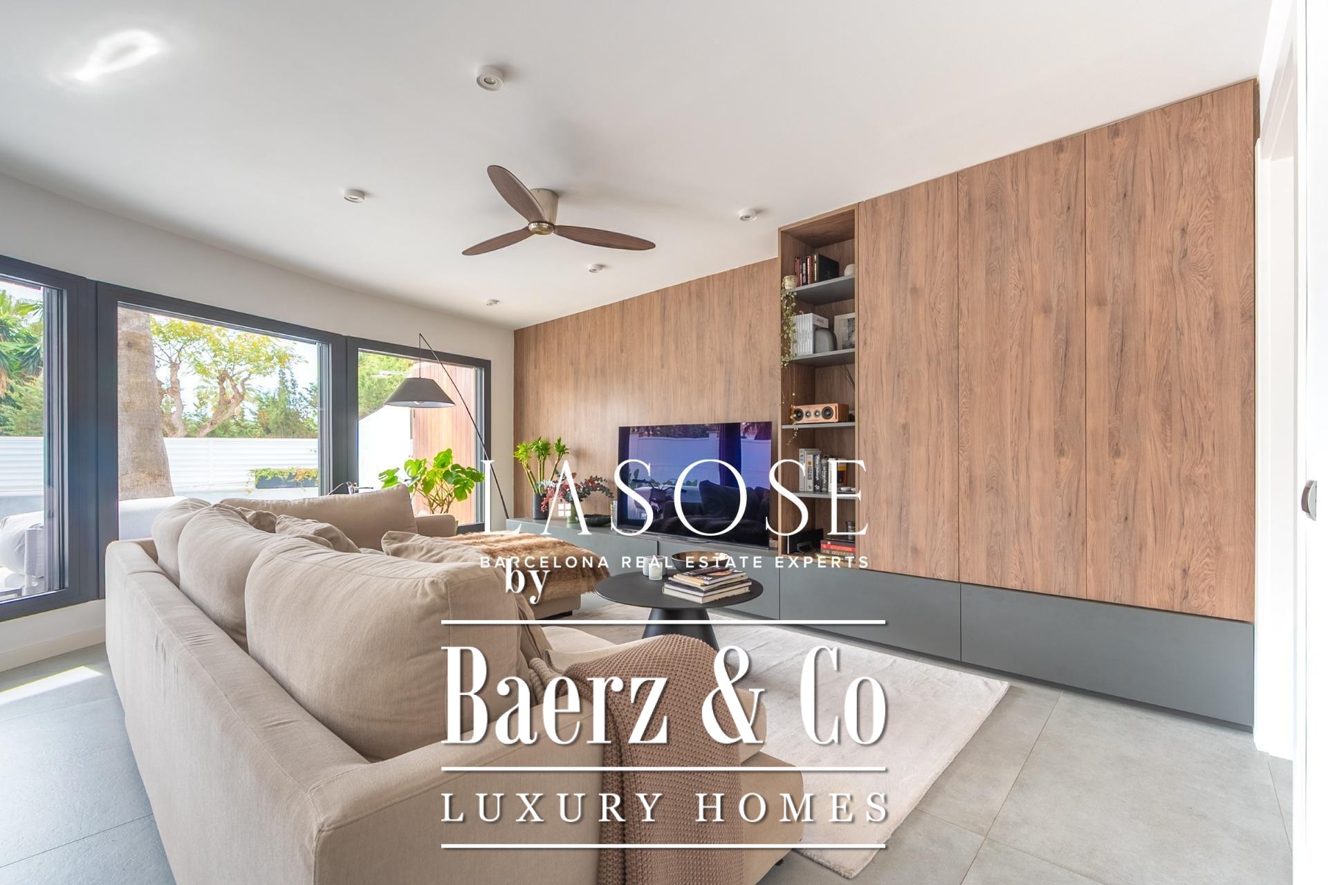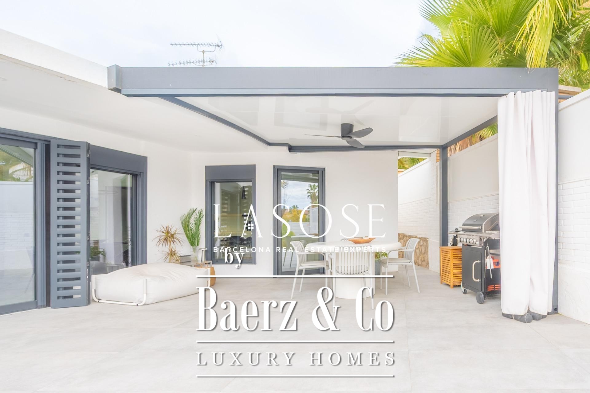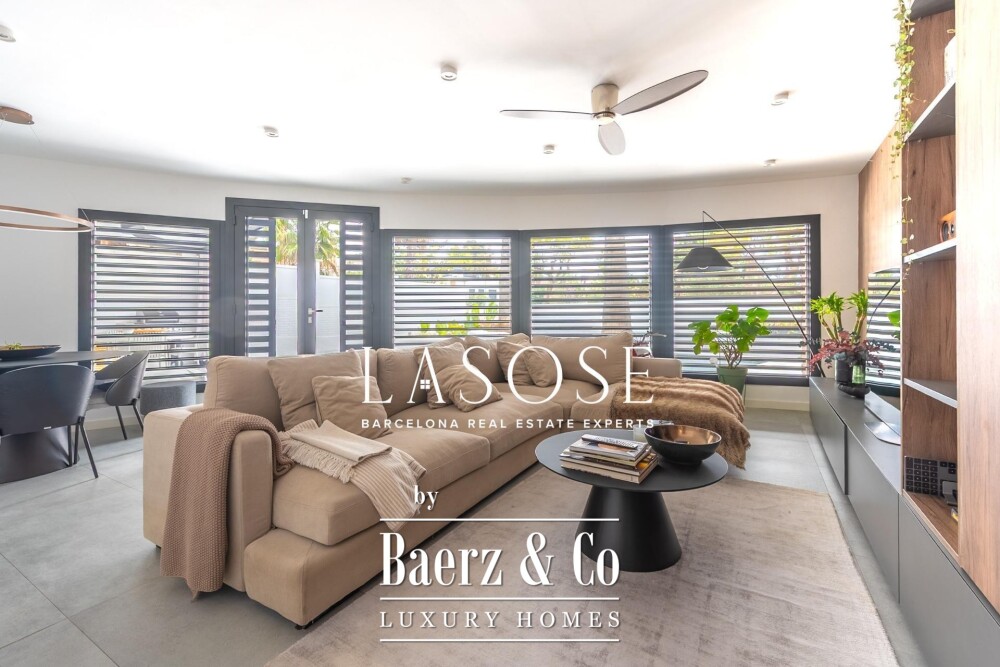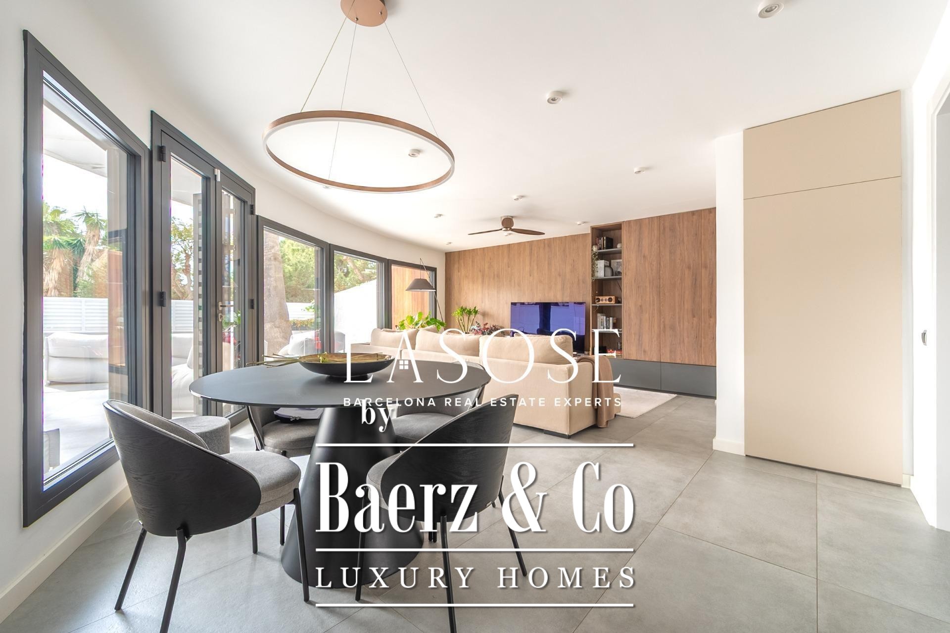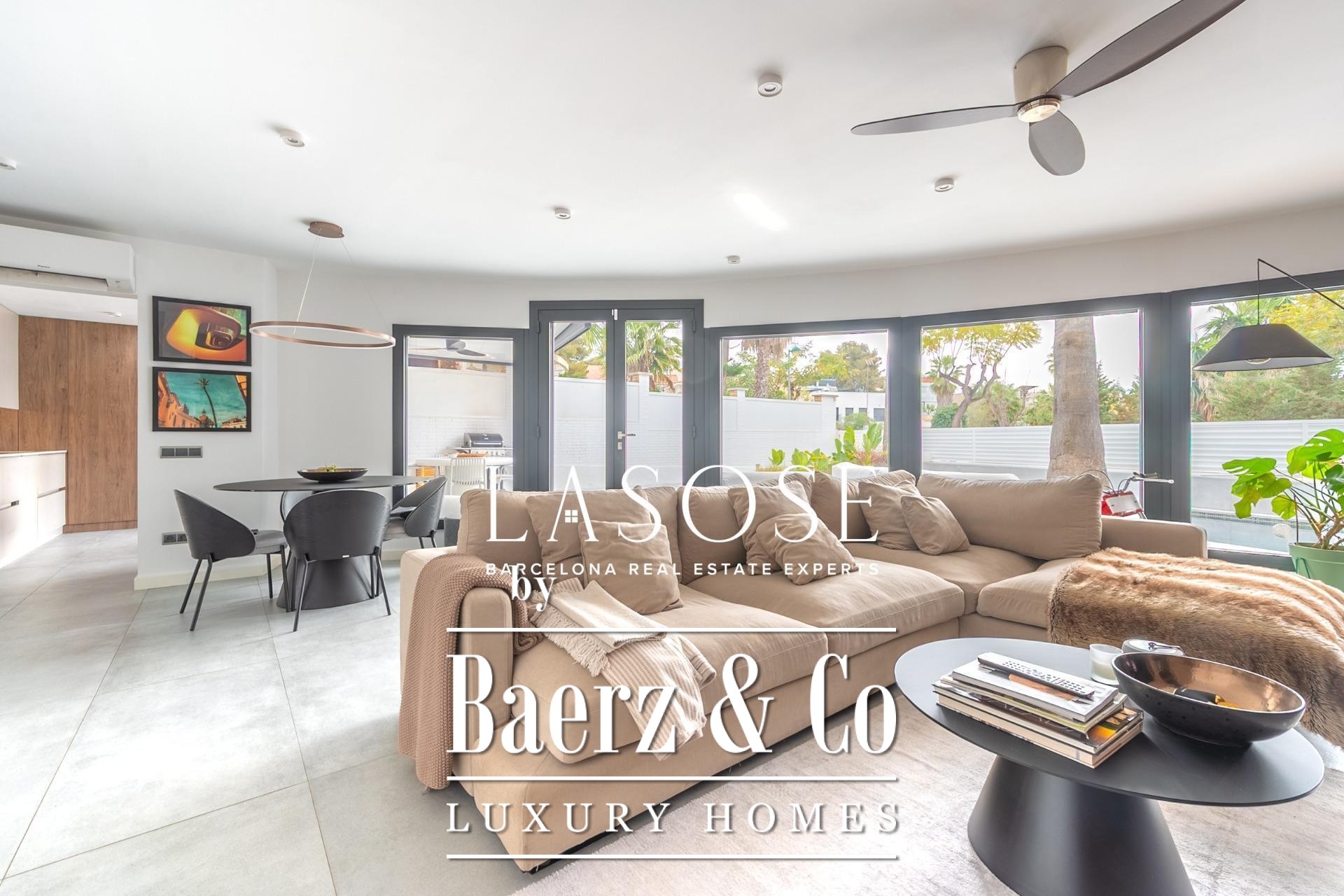 Villa Sitges Vallpineda biedt verheven mediterraan wonen in een discrete, residentiële omgeving. Deze gelijkvloerse villa van 100 m² is volledig gerenoveerd volgens strakke, eigentijdse standaarden en beschikt over twee slaapkamers en twee badkamers die naadloos aansluiten op de royale leefruimtes. De woning is gelegen op een perceel van 278 m², omringd door statige palmbomen en prachtige, open uitzichten, waar rust en harmonie tussen binnen en buiten centraal staan. Ramen van vloer tot plafond laten overvloedig daglicht binnen in de hoofdwoonkamer en eetgedeelte, die natuurlijk overlopen in het terras en het privézwembad—ideaal voor familiemomenten of rustige contemplatie.