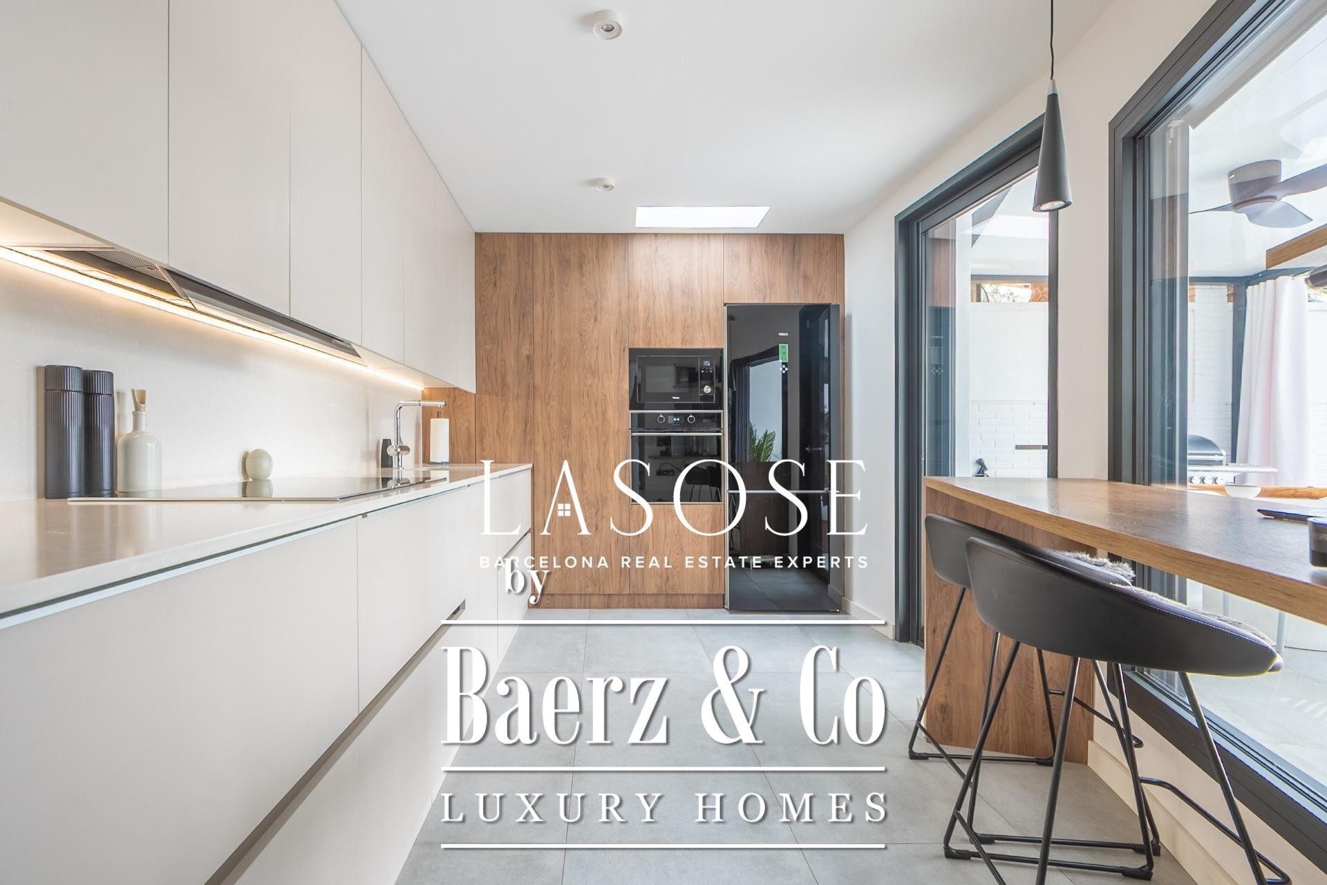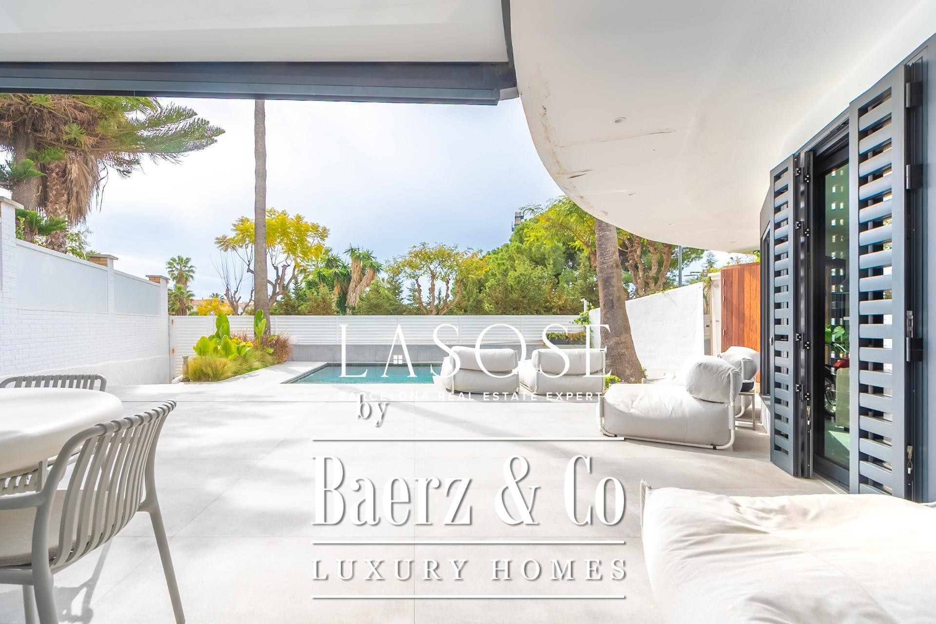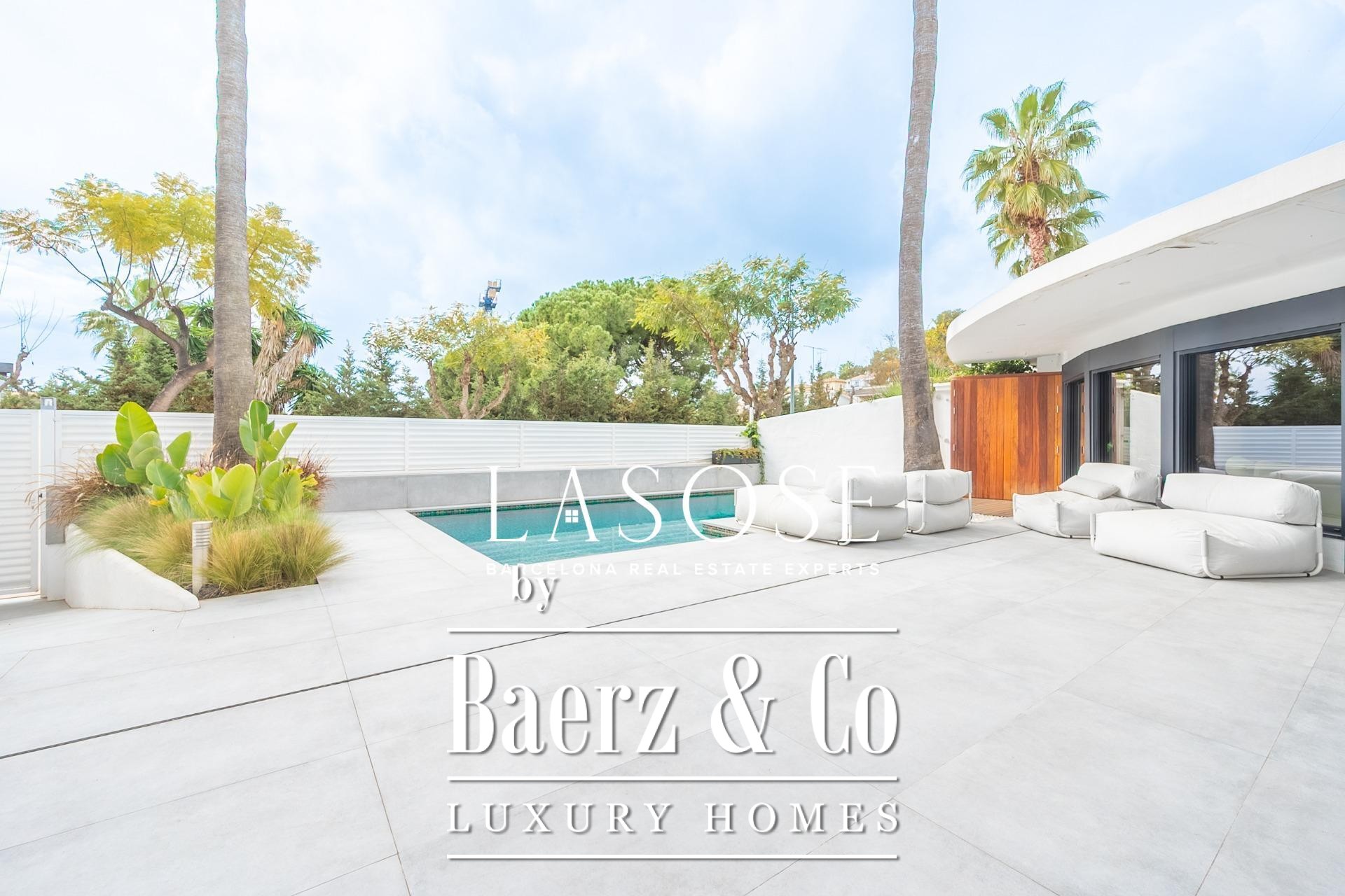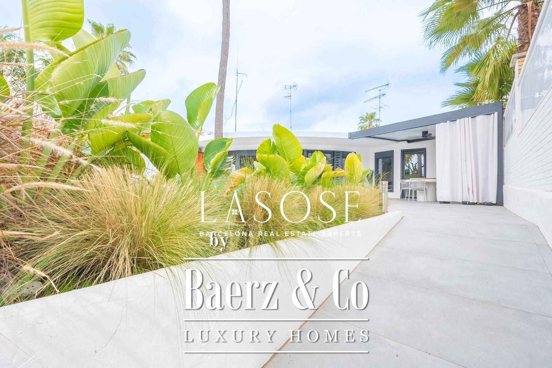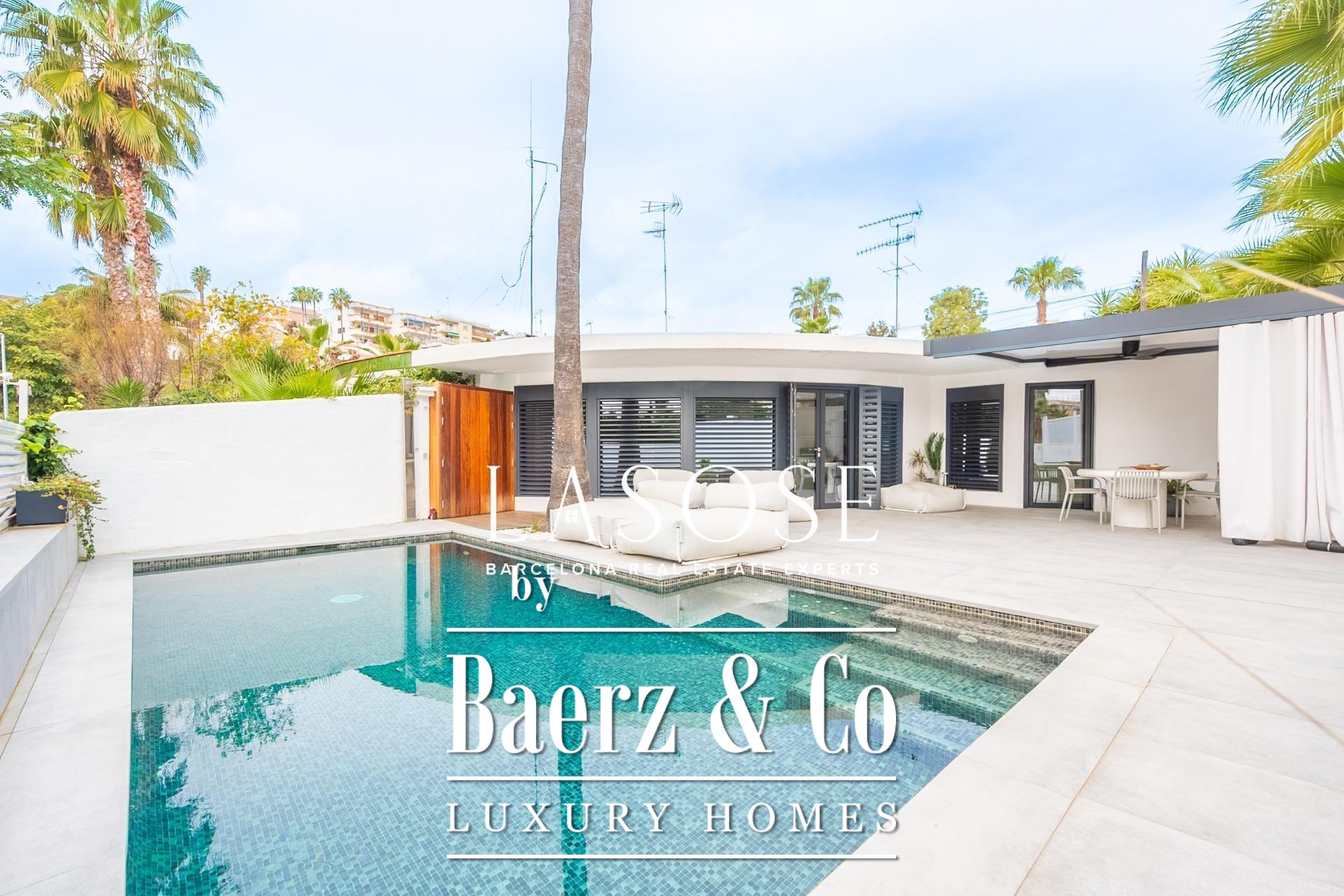 Villa Sitges Vallpineda biedt verheven mediterraan wonen in een discrete, residentiële omgeving. Deze gelijkvloerse villa van 100 m² is volledig gerenoveerd volgens strakke, eigentijdse standaarden en beschikt over twee slaapkamers en twee badkamers die naadloos aansluiten op de royale leefruimtes. De woning is gelegen op een perceel van 278 m², omringd door statige palmbomen en prachtige, open uitzichten, waar rust en harmonie tussen binnen en buiten centraal staan. Ramen van vloer tot plafond laten overvloedig daglicht binnen in de hoofdwoonkamer en eetgedeelte, die natuurlijk overlopen in het terras en het privézwembad—ideaal voor familiemomenten of rustige contemplatie.