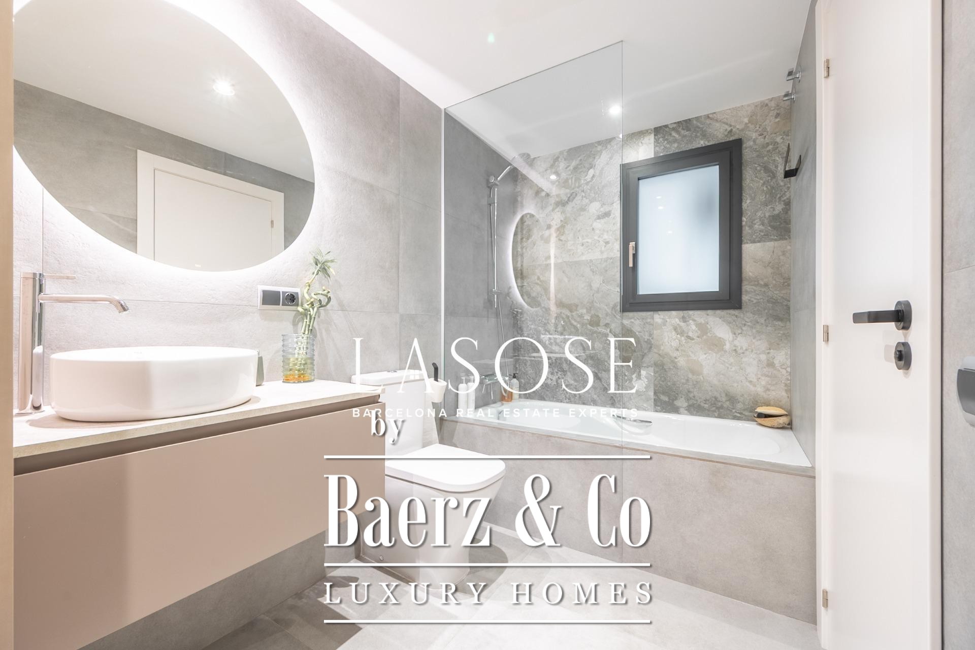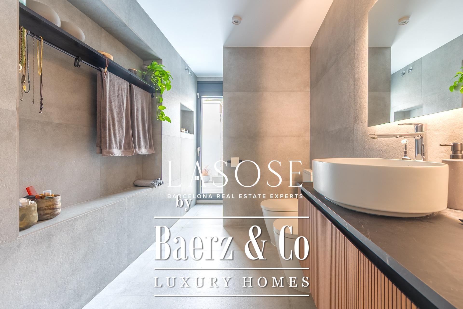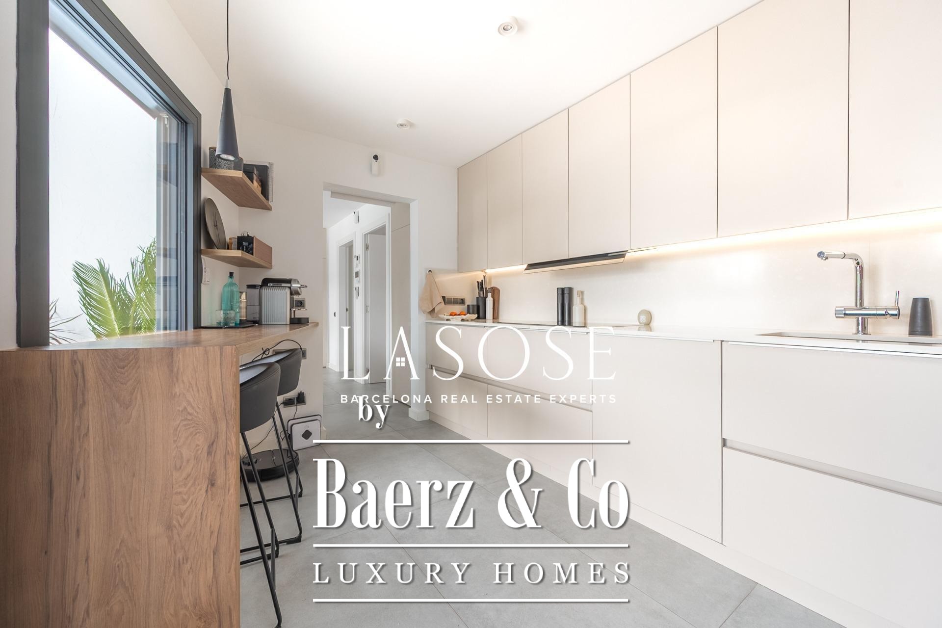 De moderne keuken, uitgerust met hoogwaardige materialen en apparatuur, vormt het kloppend hart van het huis en staat in directe verbinding met een uitnodigend overdekt terras voor moeiteloos buiten dineren. De hoofd slaapkamer beschikt over een designbadkamer en een ruime inloopkast, terwijl de tweede slaapkamer direct toegang biedt tot een volledige badkamer—met optimaal comfort en elegante privacy. Het hele jaar door is er klimaatbeheersing dankzij warmtepompen voor zowel verwarming als koeling in iedere ruimte; dubbele beglazing en verstelbare zonwering bevorderen thermische en akoestische isolatie. Alle details, van verlichting tot afwerking, tonen ingetogen tijdloze klasse.