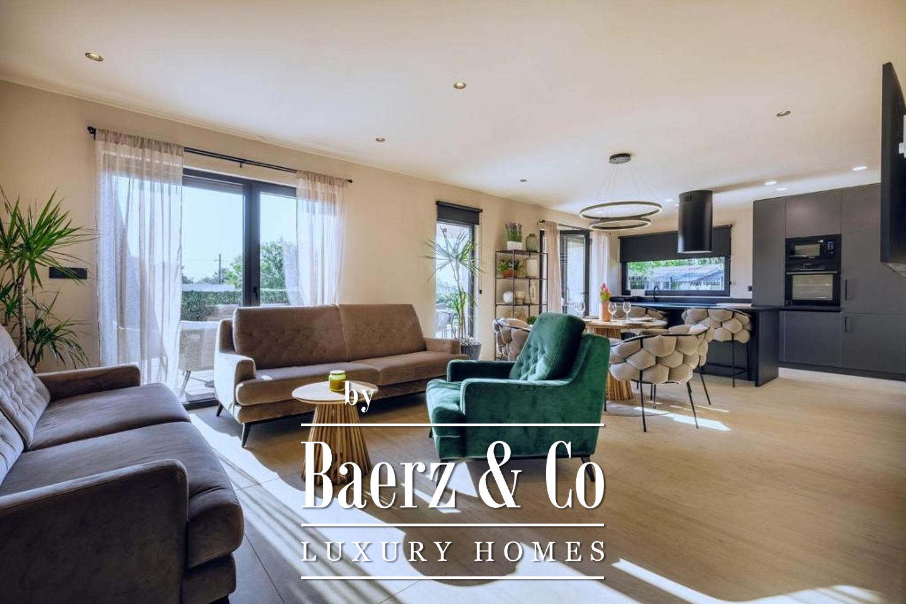 covered terrace.The landscaped yard of 540 m2 is adorned with a swimming pool surrounded by a sunbathing area, a lawn with Mediterranean plants, and private parking, creating an ideal place for relaxation and enjoyment. Special attention has been paid to the quality of construction and equipment - PVC joinery with mosquito nets and electric shutters, air conditioning and heat pump, alarm system, and video surveillance ensure maximum safety and comfort.This house is the perfect choice for those who want a new, modernly equipped home in the heart of Istria, close to all facilities such as shops, restaurants, and cafes.The price includes VAT, and the buyer does not pay real estate tax.For more information or to arrange a viewing, please contact us.
