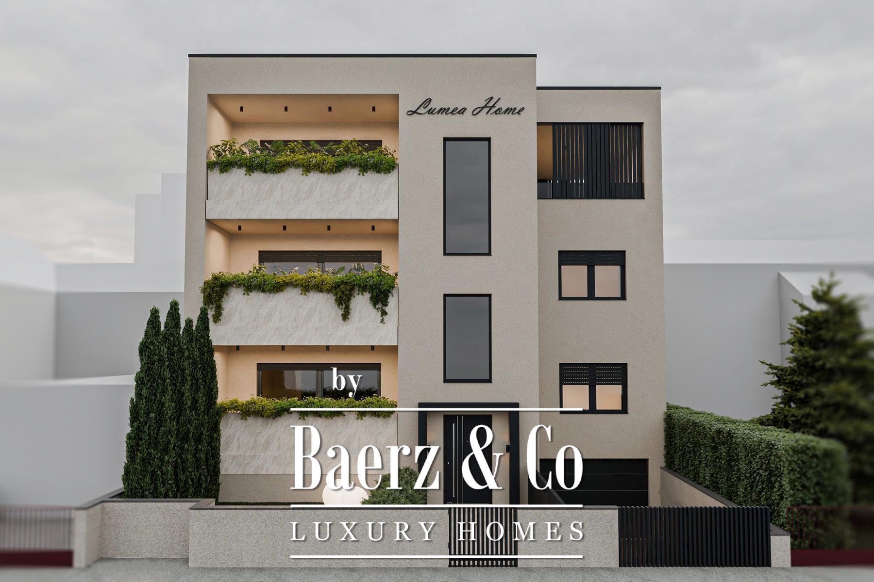Penthouse Trešnjevka - Sjever onderscheidt zich door zijn discrete ligging in een van de meest stedelijke wijken van Zagreb en biedt een zeldzame balans tussen privacy en optimale bereikbaarheid. Dit penthouse beschikt over een netto bruikbare oppervlakte van 206,05 m², verdeeld over twee verdiepingen met vijf slaapkamers en vier badkamers. Het ontwerp ademt openheid en ruimte, met een lichte woonruimte die naadloos overloopt in een open keuken en eetgedeelte, uitmondend in een royale loggia en een overdekt terras.