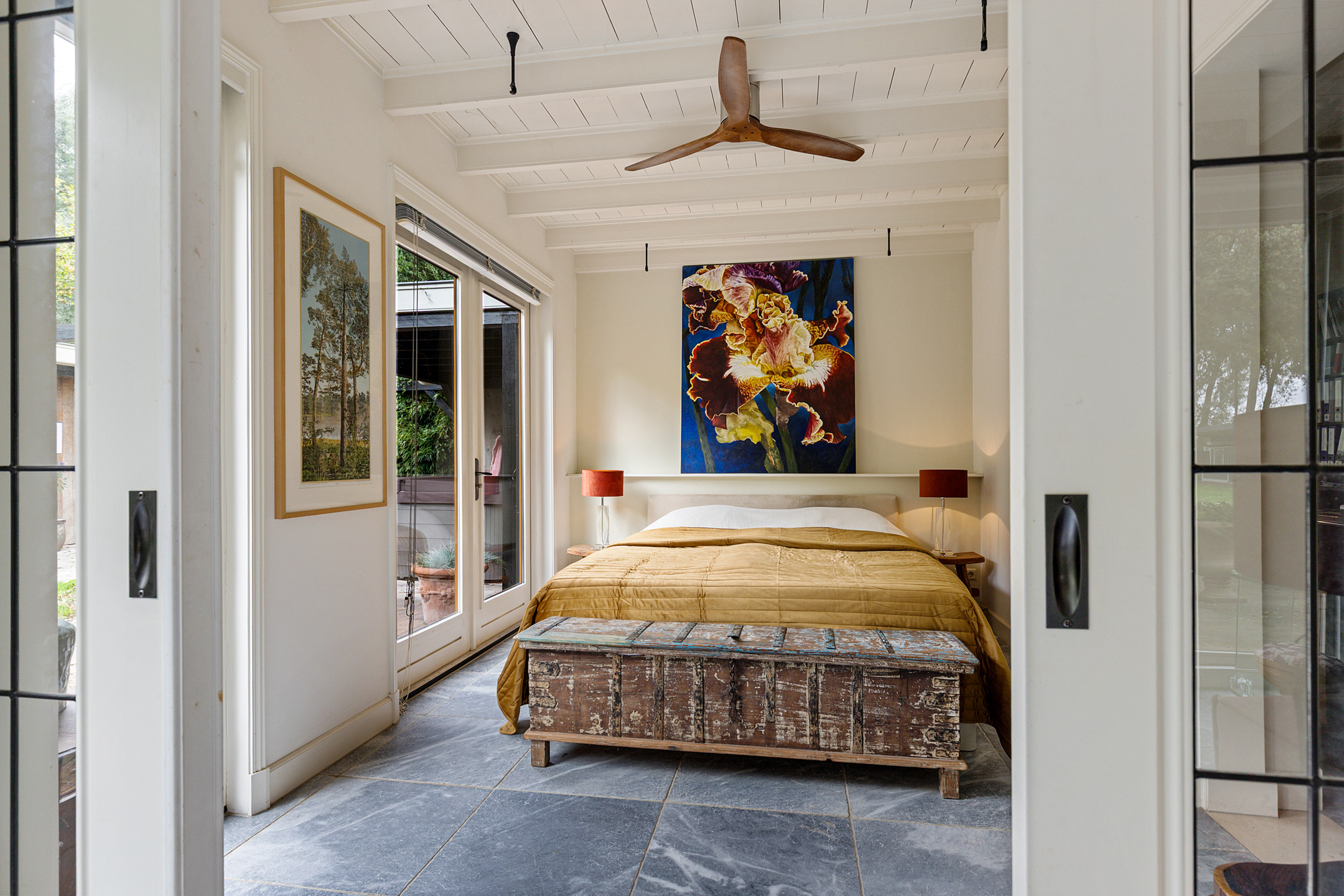 Achter in de tuin, grenzend aan de vijver en met de mogelijkheid voor een eigen oprit, is een modern vrijstaand bijhuis gebouwd met totale privacy ten opzichte van het dijkhuis. Deze zelfstandige, hotel-chique woonruimte beschikt over open keuken, living, badkamer en in de loft een slaapkamer en atelier/werkkamer. Perfect voor dubbele bewoning, werken aan huis of mantelzorg.